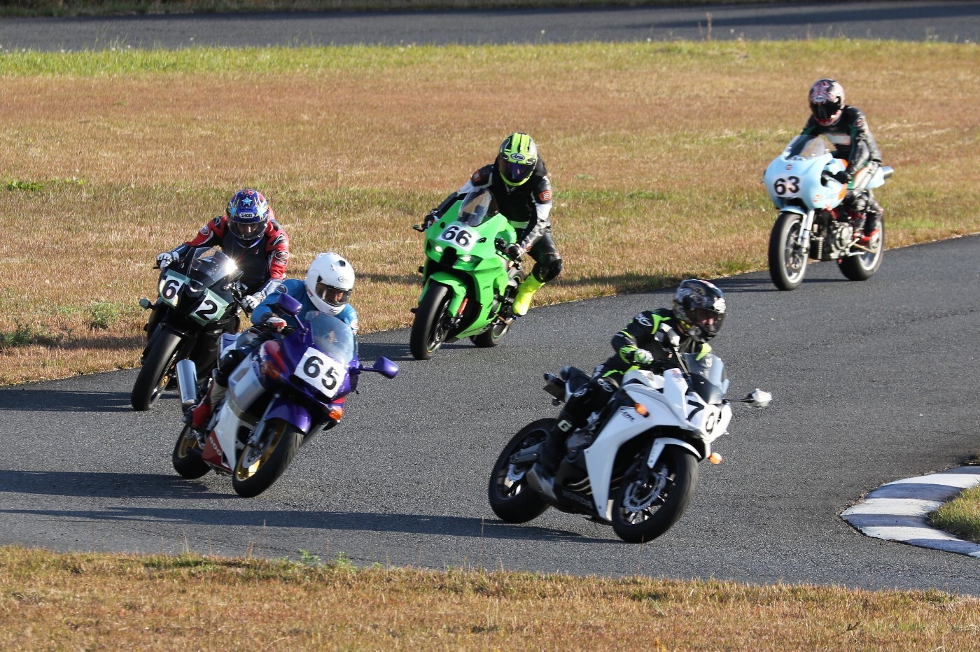 5番手に中村ZX10RR、6番手に大江パニガーレV2、7番手に胡890DukeR、8番手に用田R7、9番手に寺内CBR650Fと続く。