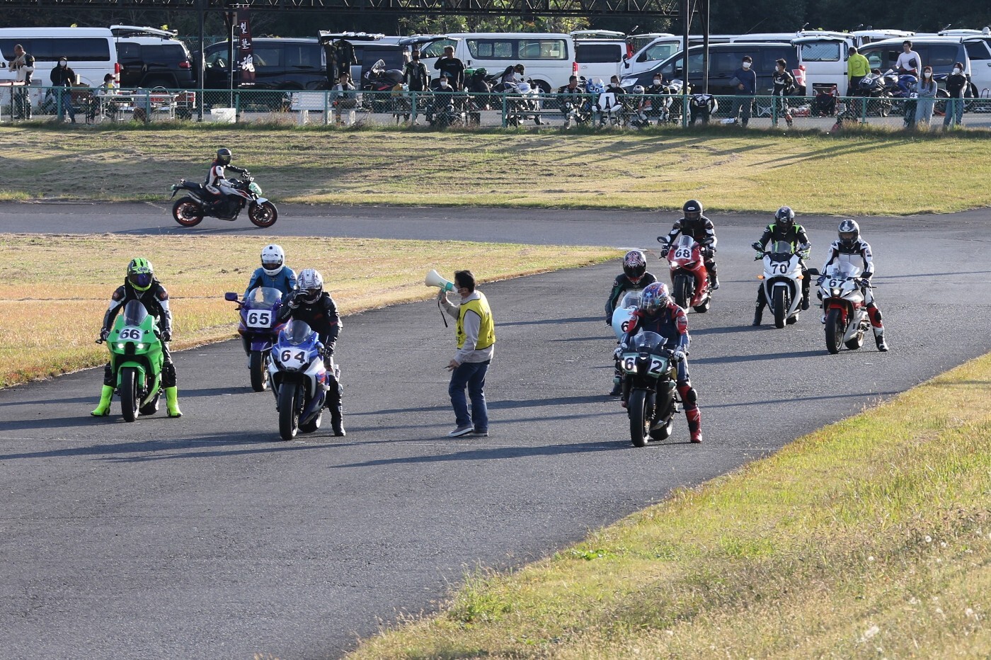 エントリーユーザーも多く出走するK-RUN-GP Dクラス。フリー走行を経てグリッドに整列。久しぶりのK-RUN-GPとなったため、今季から参戦しているライダーにとっては「初レース」となるケースも多い。