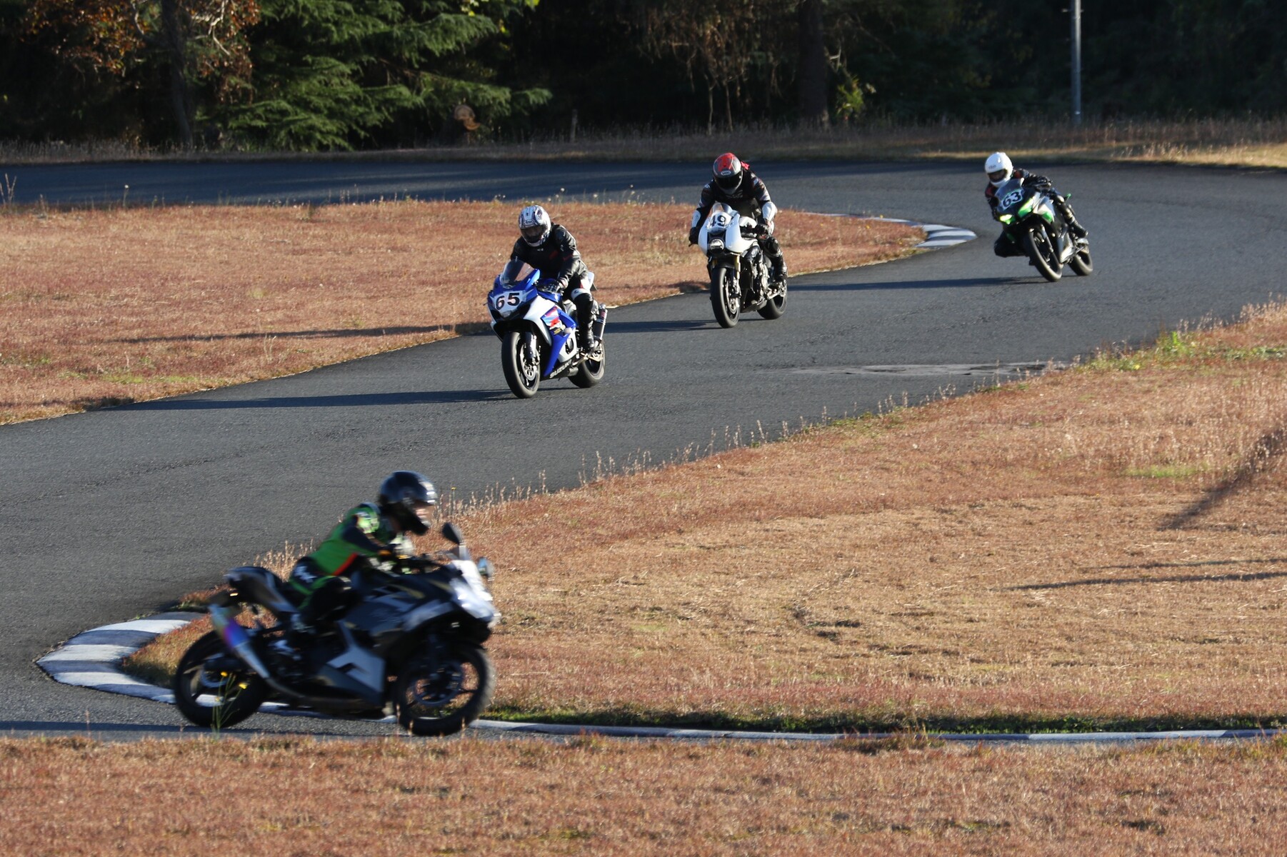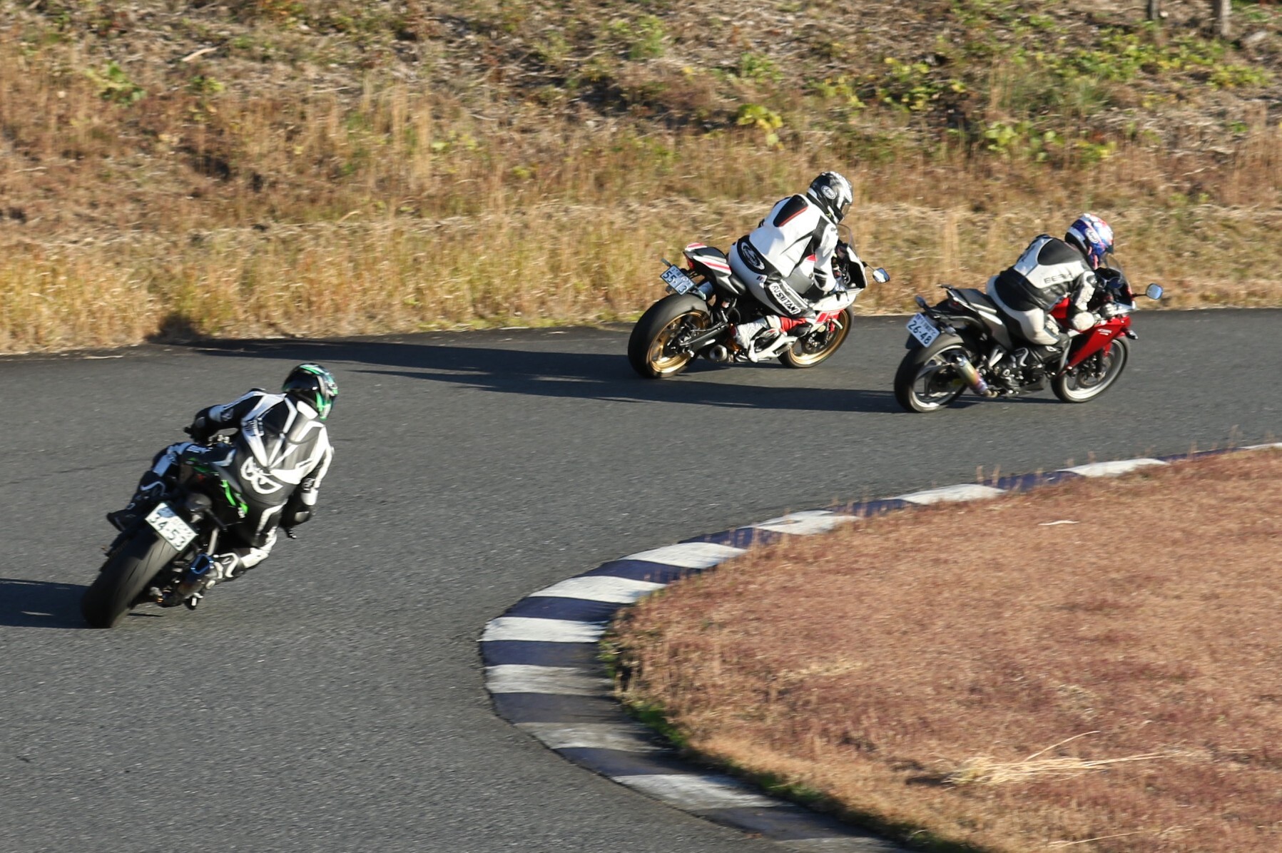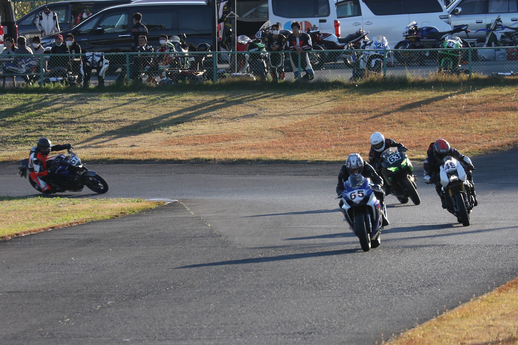 6番手に齋藤ZX10R、7番手にはスタートで出遅れた佐藤CBR250R、8番手に初参加の後藤Ninja400と続く。