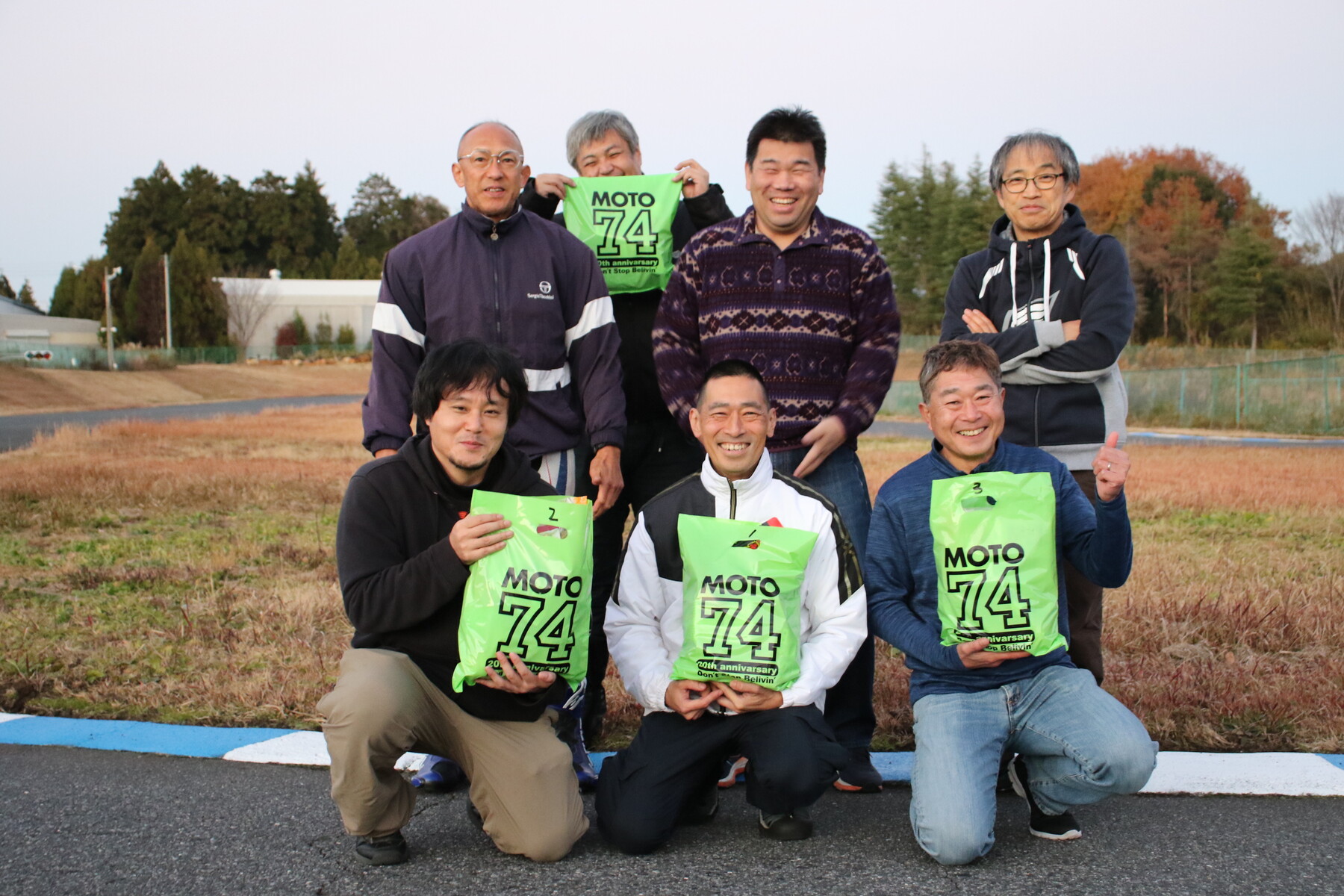 ニューペイントが施された最終コーナーにて。入賞メンバー。おめでとう!