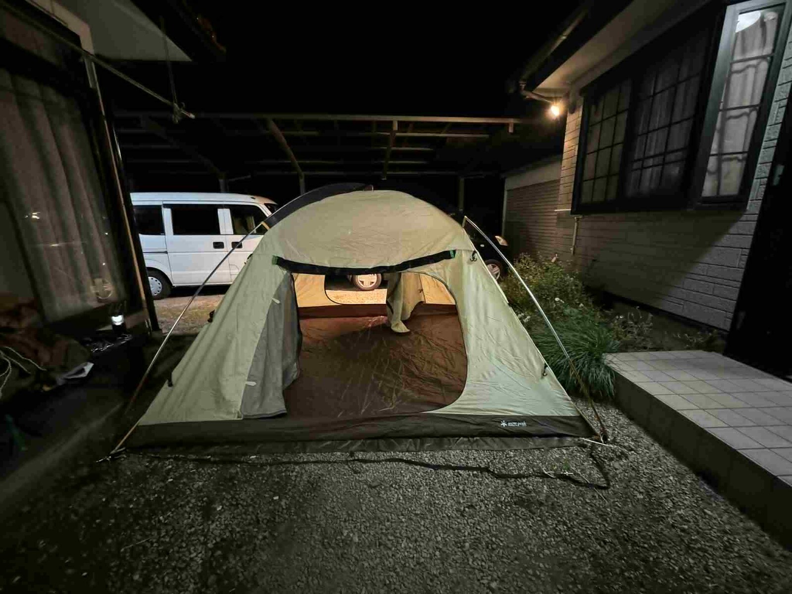「仕事から帰宅後テントを組み立ててみました、ちょっとだけカビ臭いけど破れも無く使えそうでした」