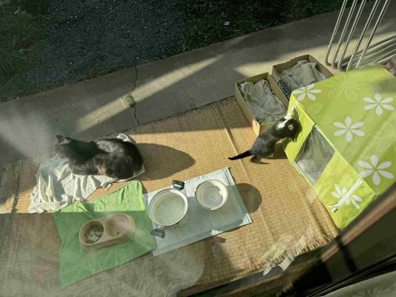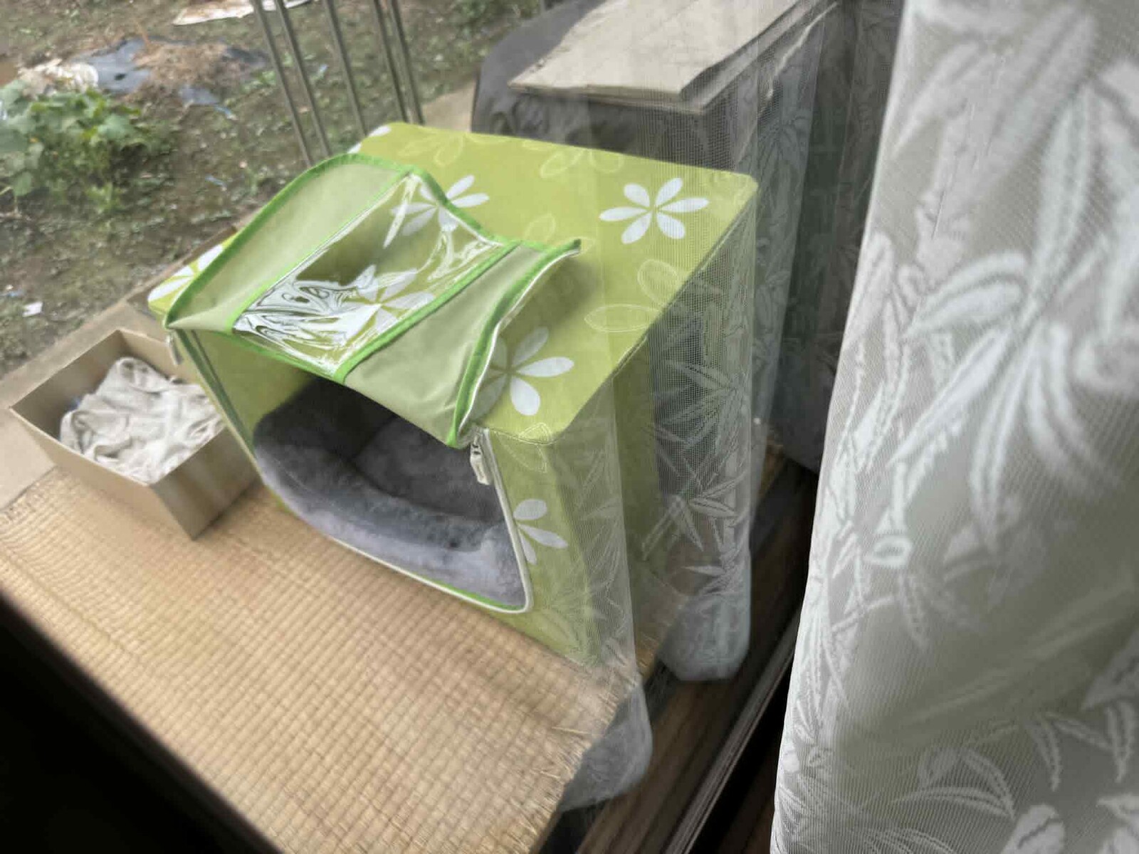 「猫ハウスはサンキで安売りしていた物で代用しました」