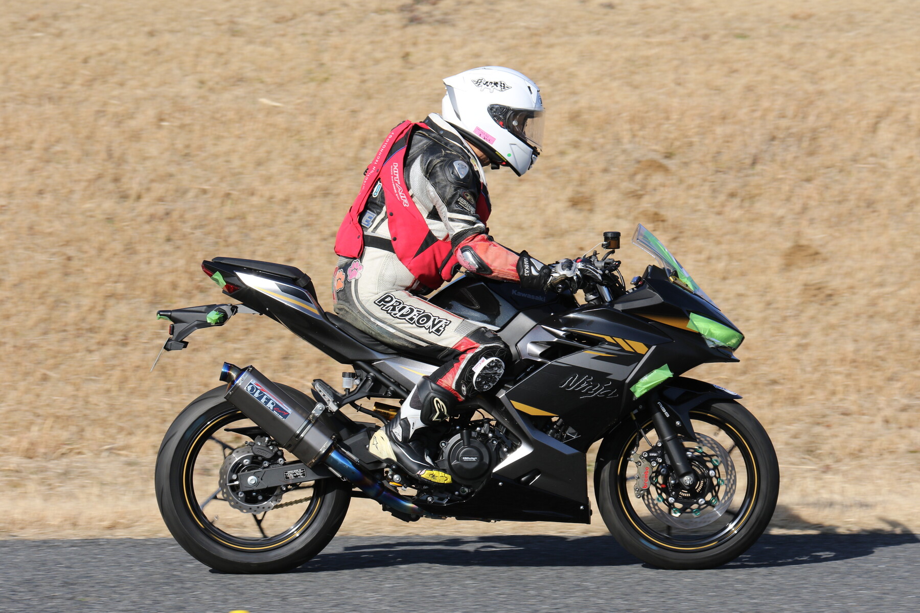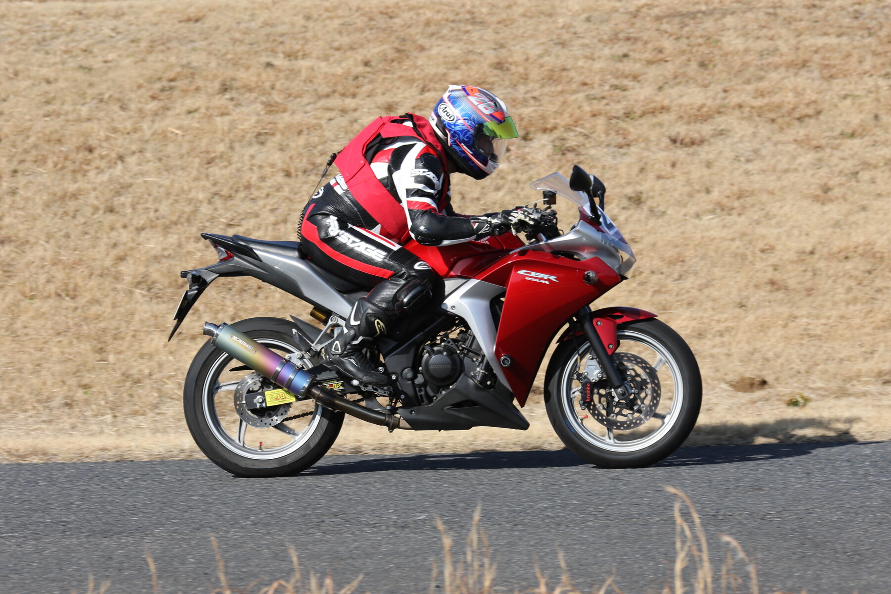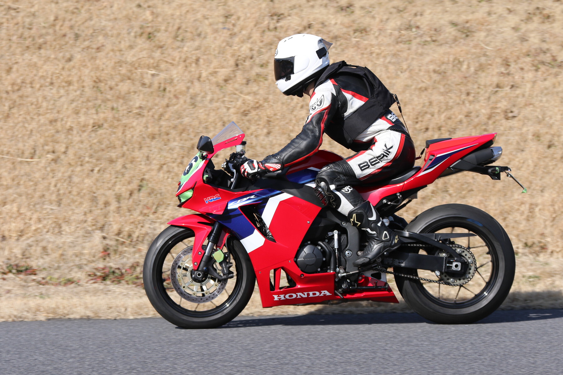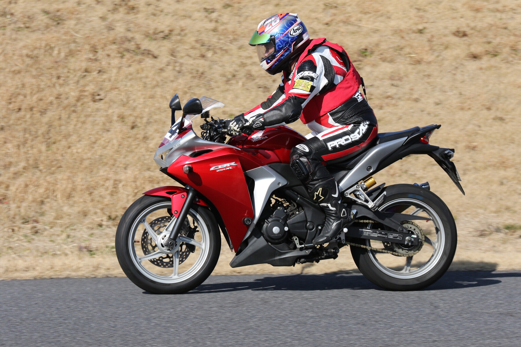 走行写真としては動きの少ないものだが、ライダー本人の頭の中はCBR250RR(MC22)ほどの回転数で回っており、すでにレブリミット寸前まで達している。