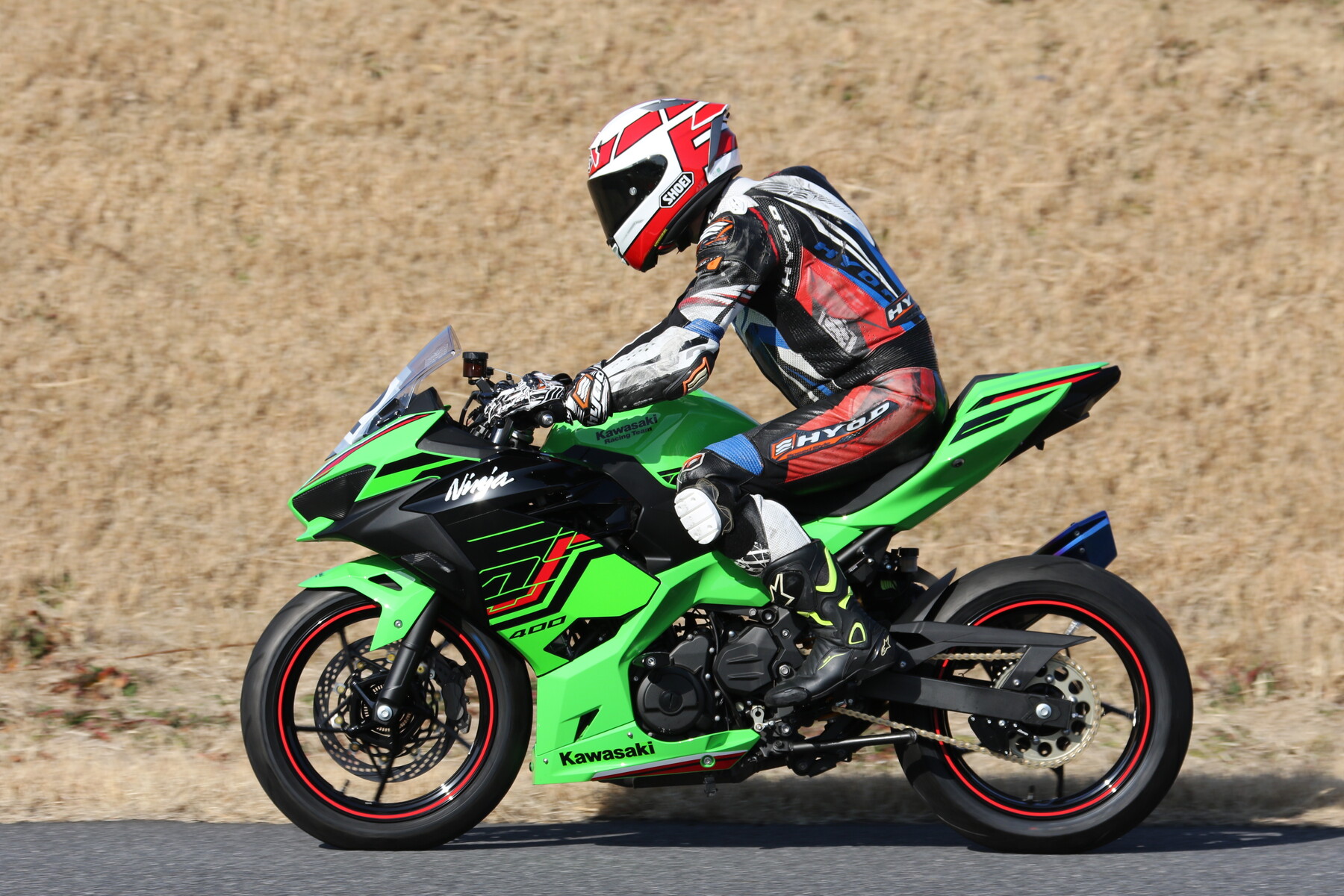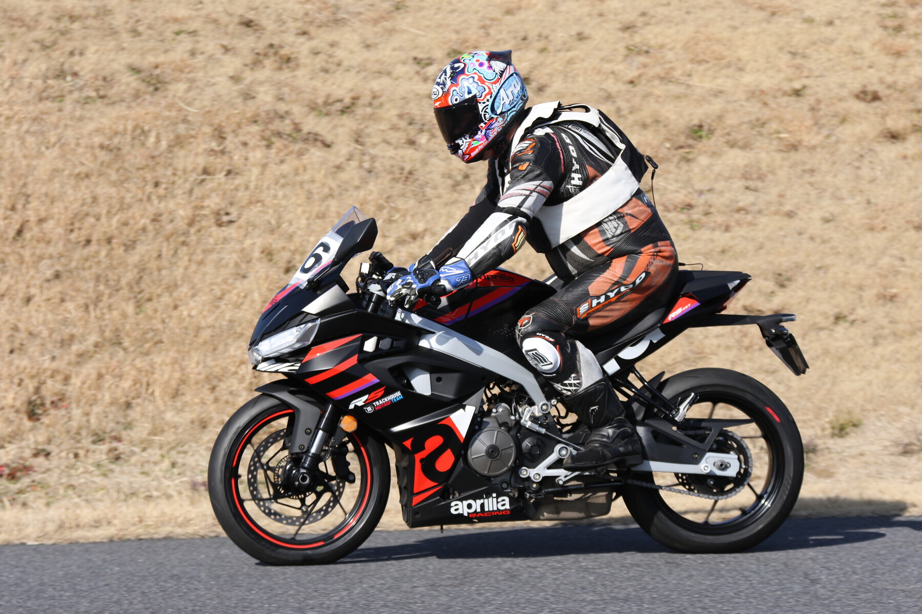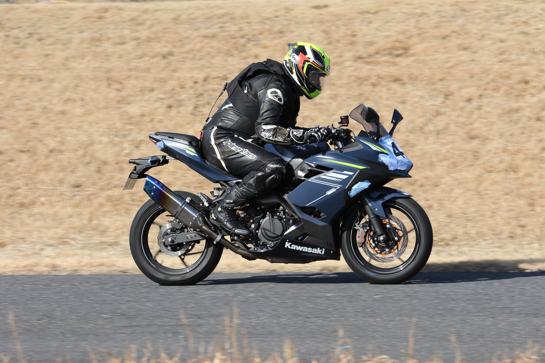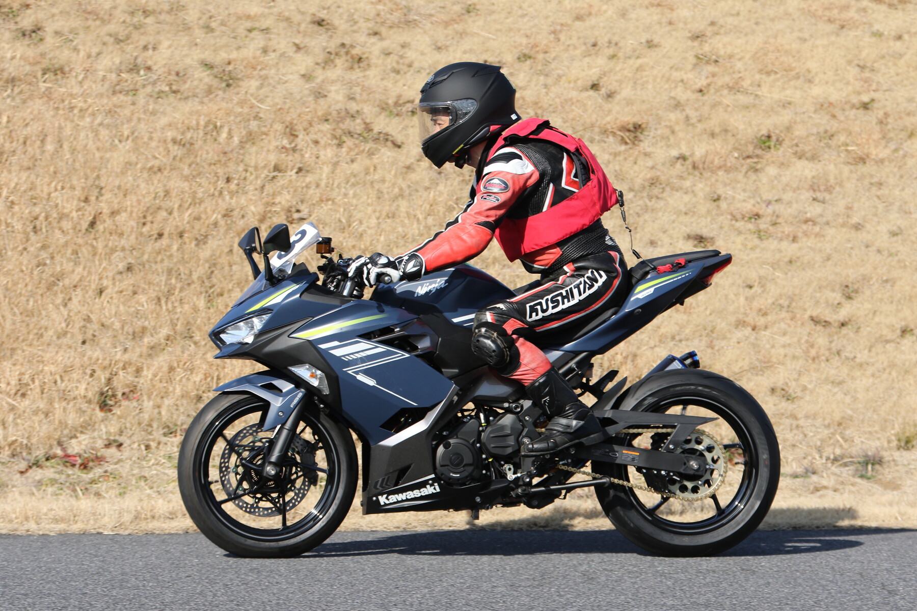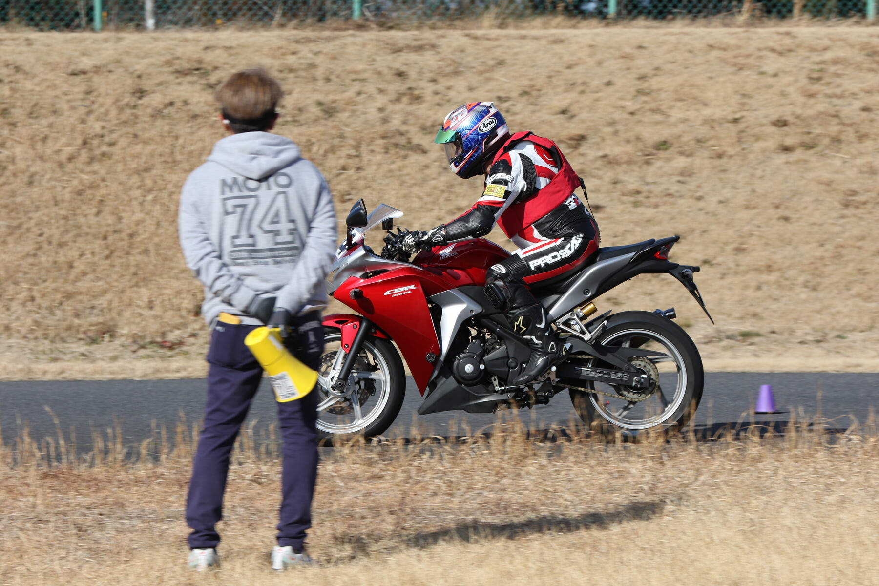 走行写真としては動きの少ないものだが、ライダー本人の頭の中はCBR250RR(MC22)ほどの回転数で回っており、すでにレブリミット寸前まで達している。