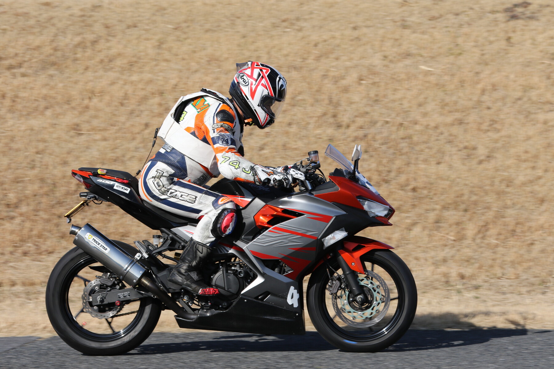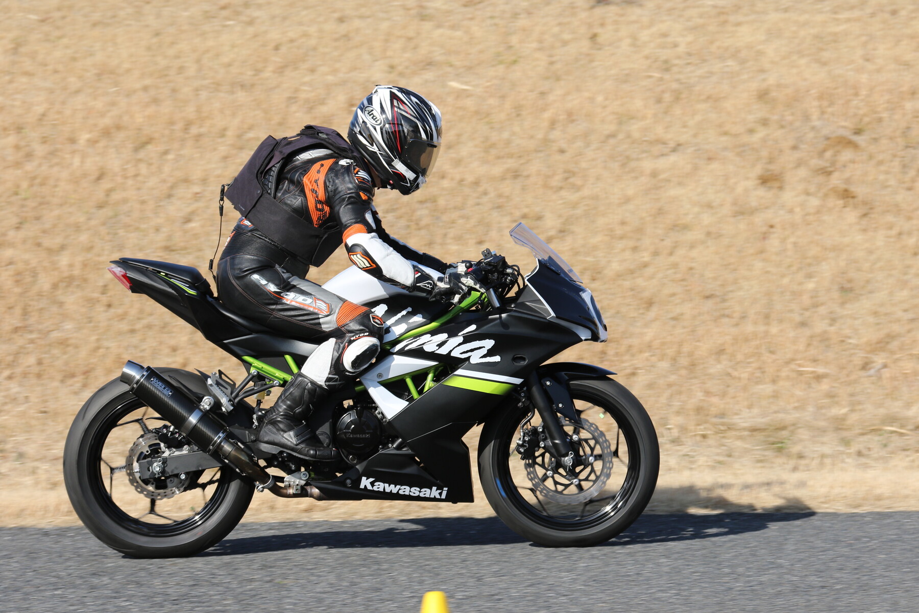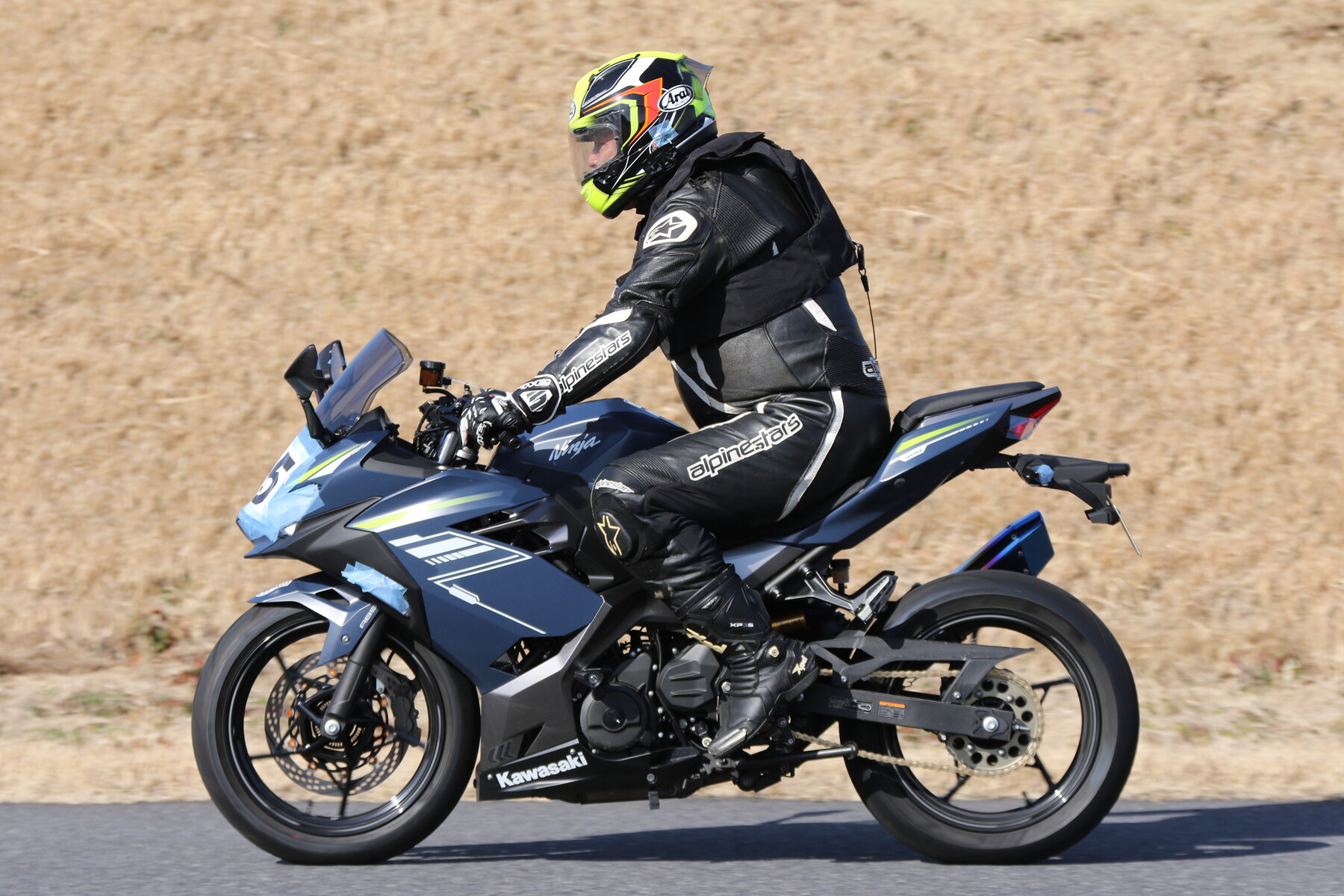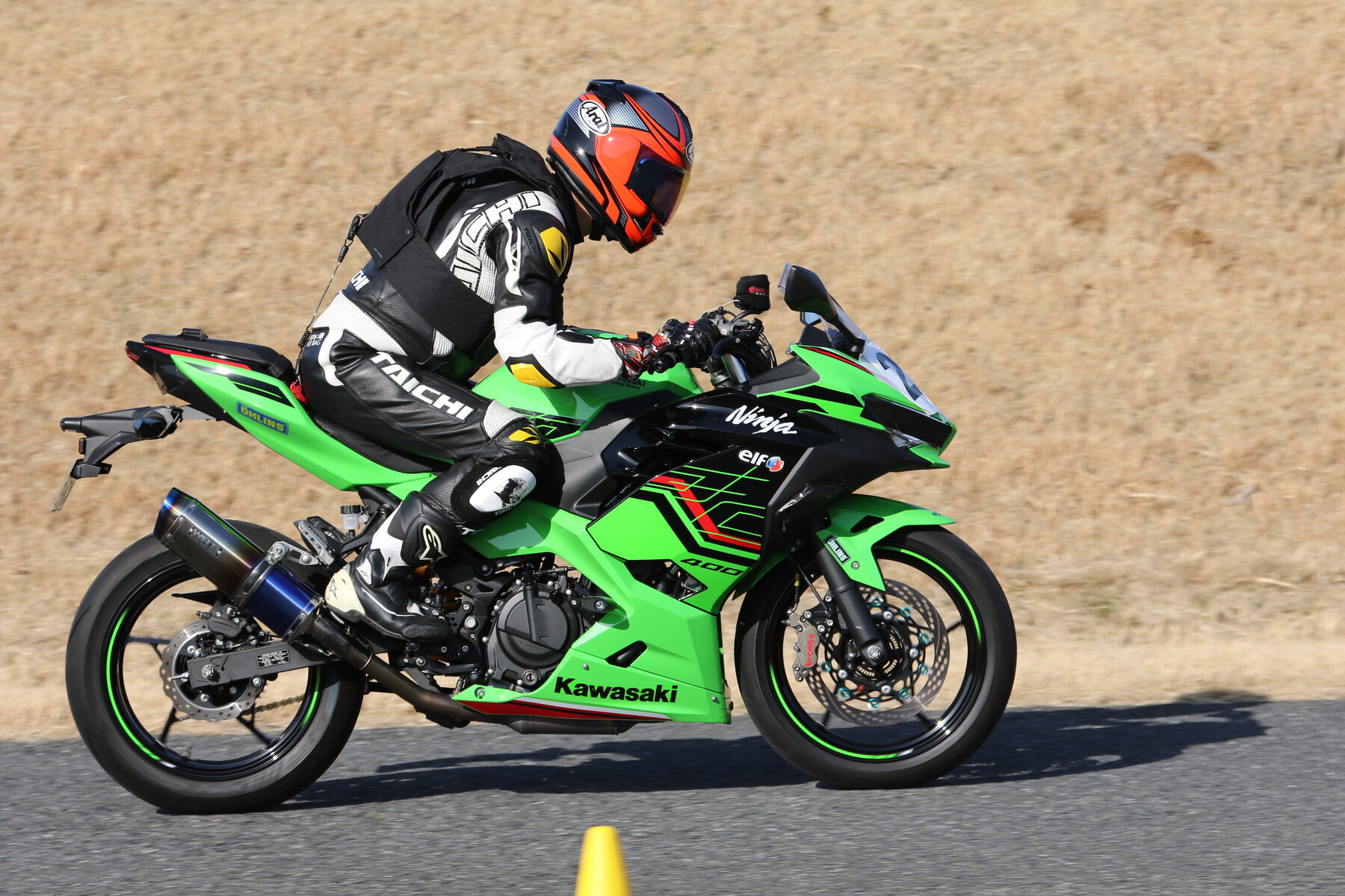 走行写真としては動きの少ないものだが、ライダー本人の頭の中はCBR250RR(MC22)ほどの回転数で回っており、すでにレブリミット寸前まで達している。