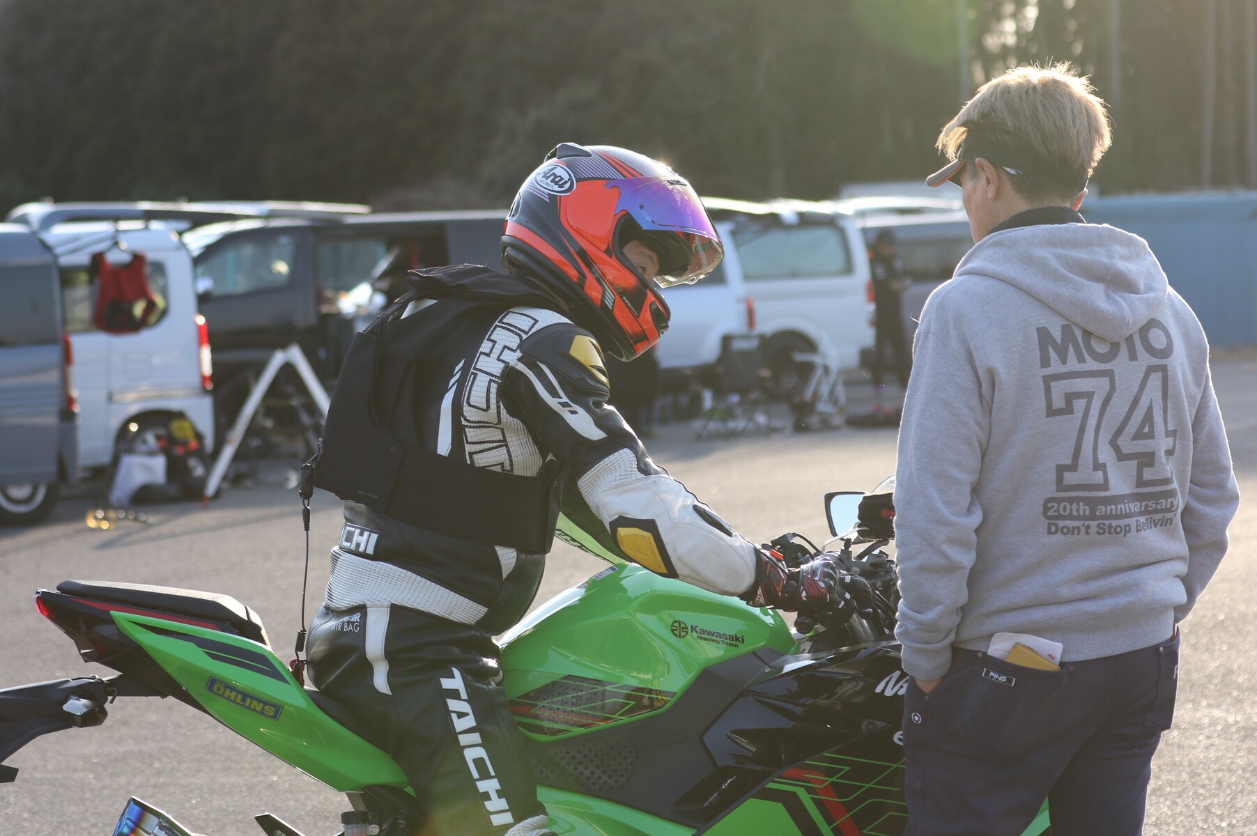 塾長が納得いくまで走ってセッティングを繰り返し、オーナー様にとってもっとも乗りやすいバイクに仕上げます。そんな「本気のセットアップ」が特徴の梨塾ガレージテストメニュー。ぜひ体感して下さい。