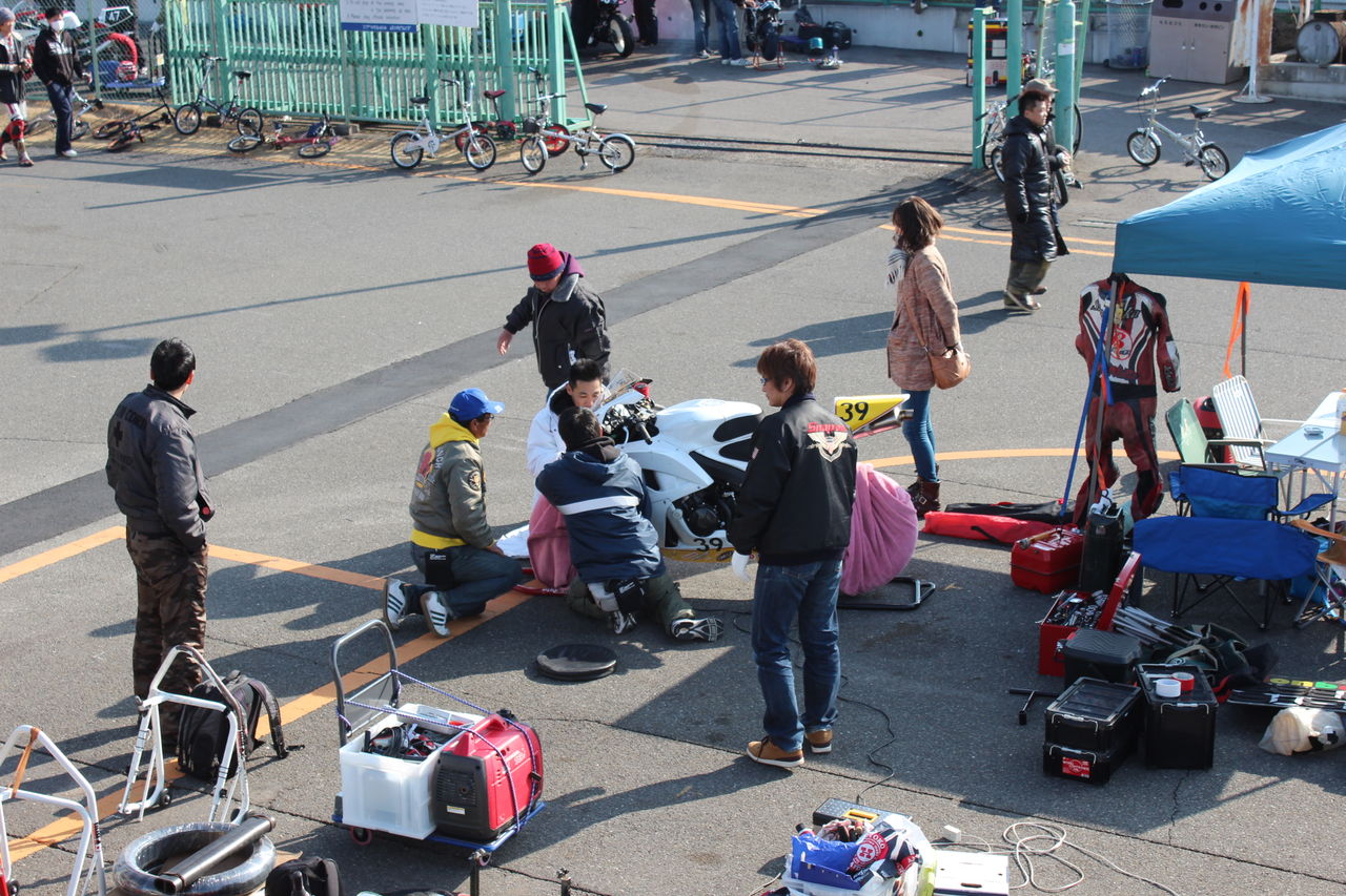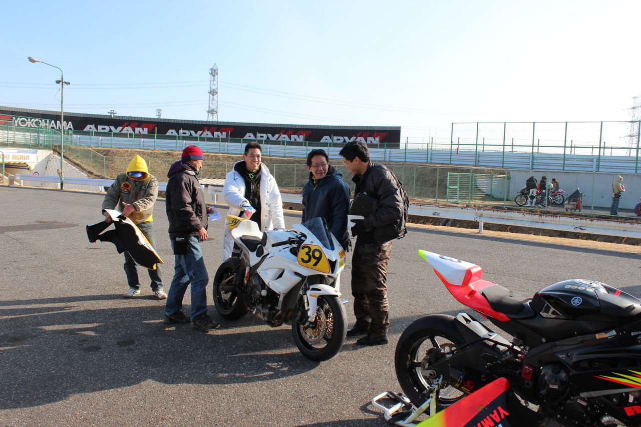 その中に混じってこの人も普通に筑波へ。昨夜二時に四日市を旅立っての遠征。愛機CBR600RRのOHも済んで、翌日にはトミンで慣らし走行、そのまま帰四という変わらずのハード日程。