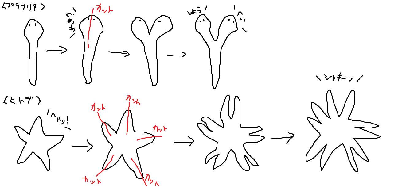 ヒトデを2体用意して両方の腕を1本ずつ切って切断面をくっつけたい