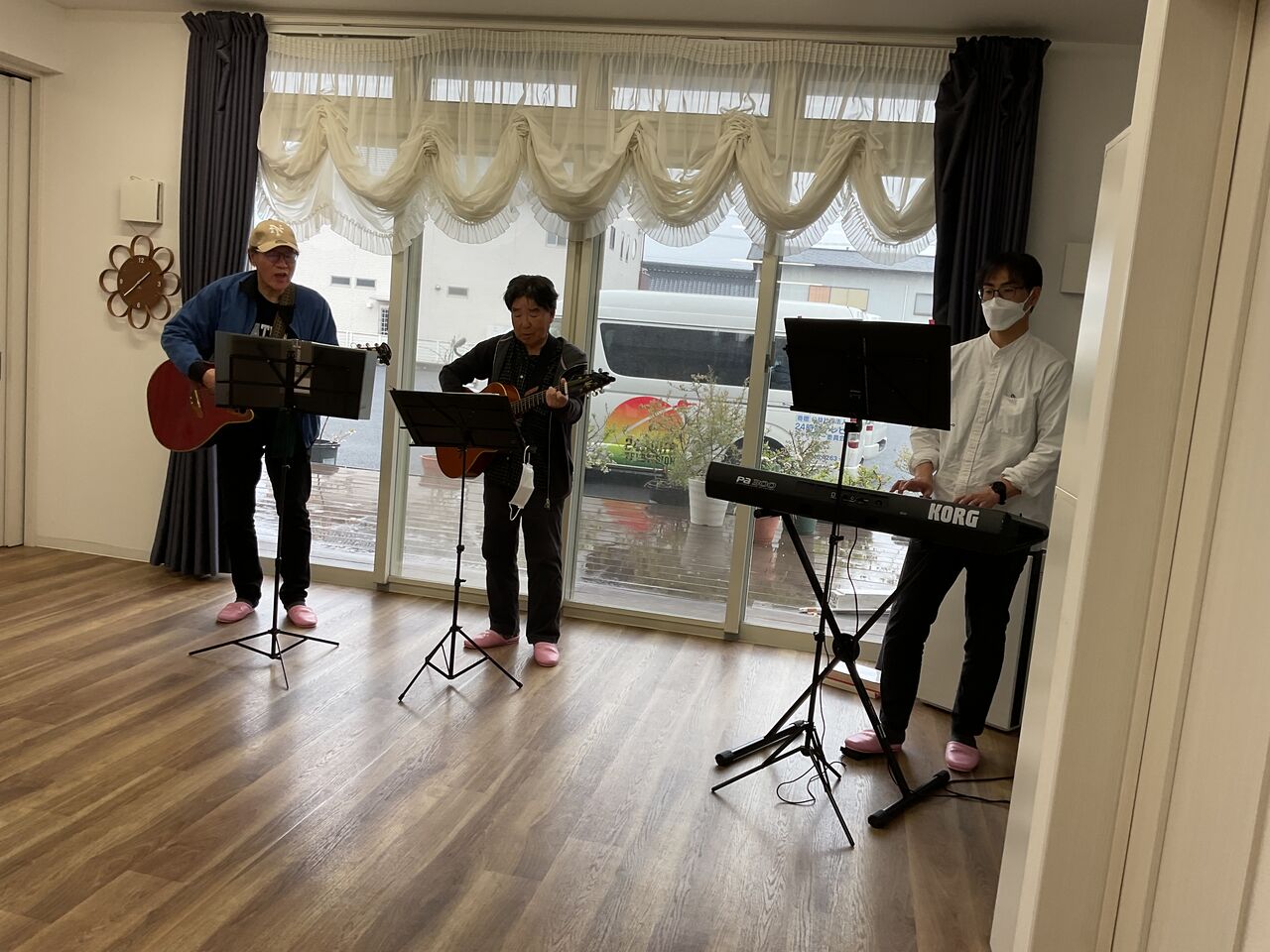 今回は、3人組の男性の方たちがきてくださり、ギターやキーボードの演奏をしていただきました