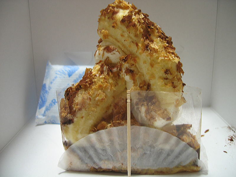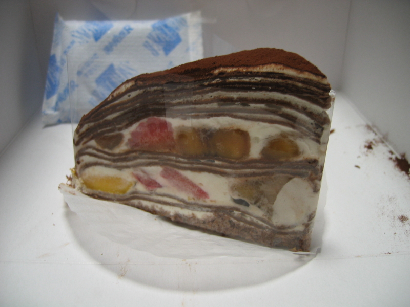 真ん中の写真:クリームの中に苺とマンゴーが入ってるんよ。このマンゴー、凄くじゅくしてて甘くて美味!!クリームもしつこくなくてこれも美味!!