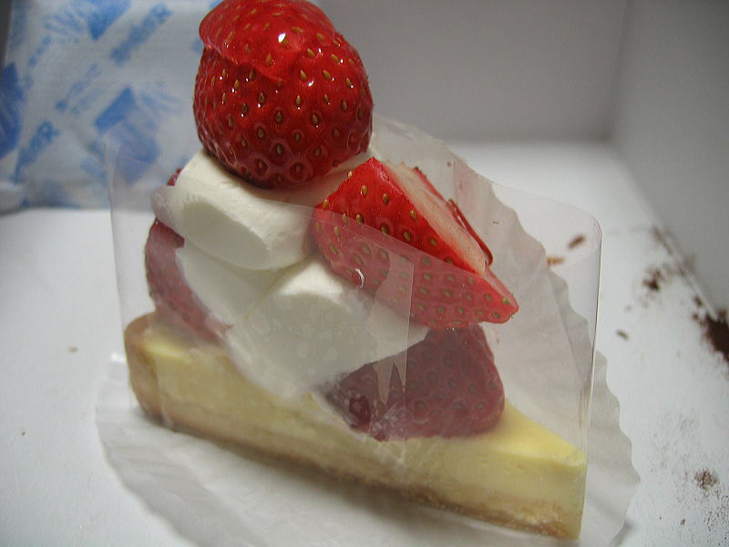 左の写真:苺スイーツは台がチーズ・プレーンとか色々あって後サイズもS・Lとありましたよ。これはSの方です。そして苺、みずみずしくて美味しすぎ〜!!