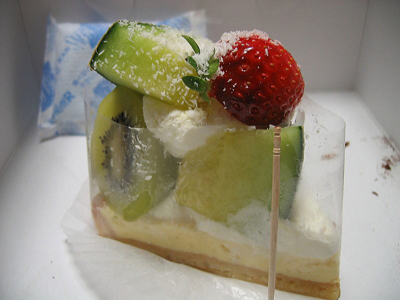右の写真:いろいろタルト。中には苺にメロンにキーウィが入ってます。どれも大きくて食べ応えたっぷり。そのうえ美味しい(><)