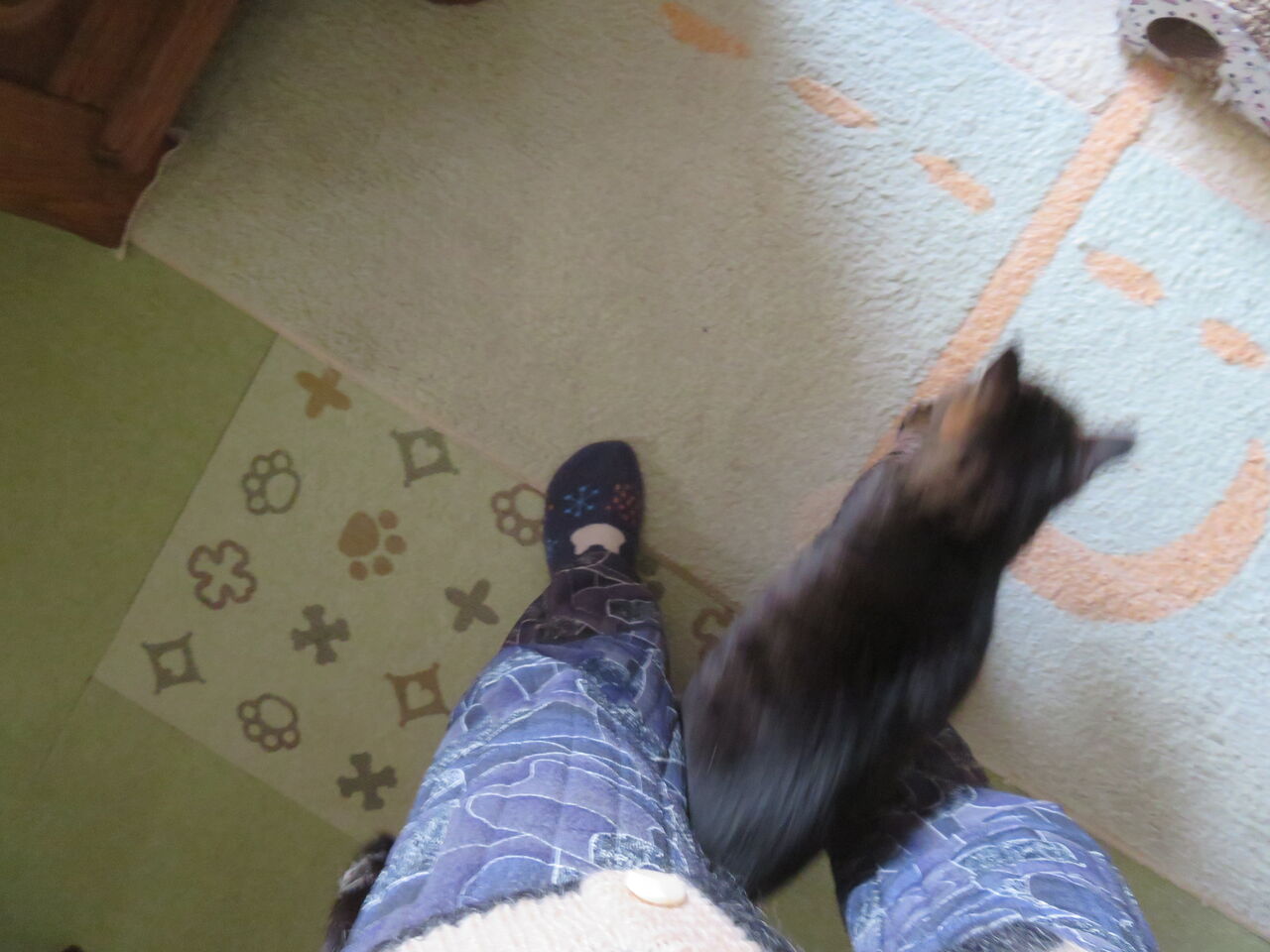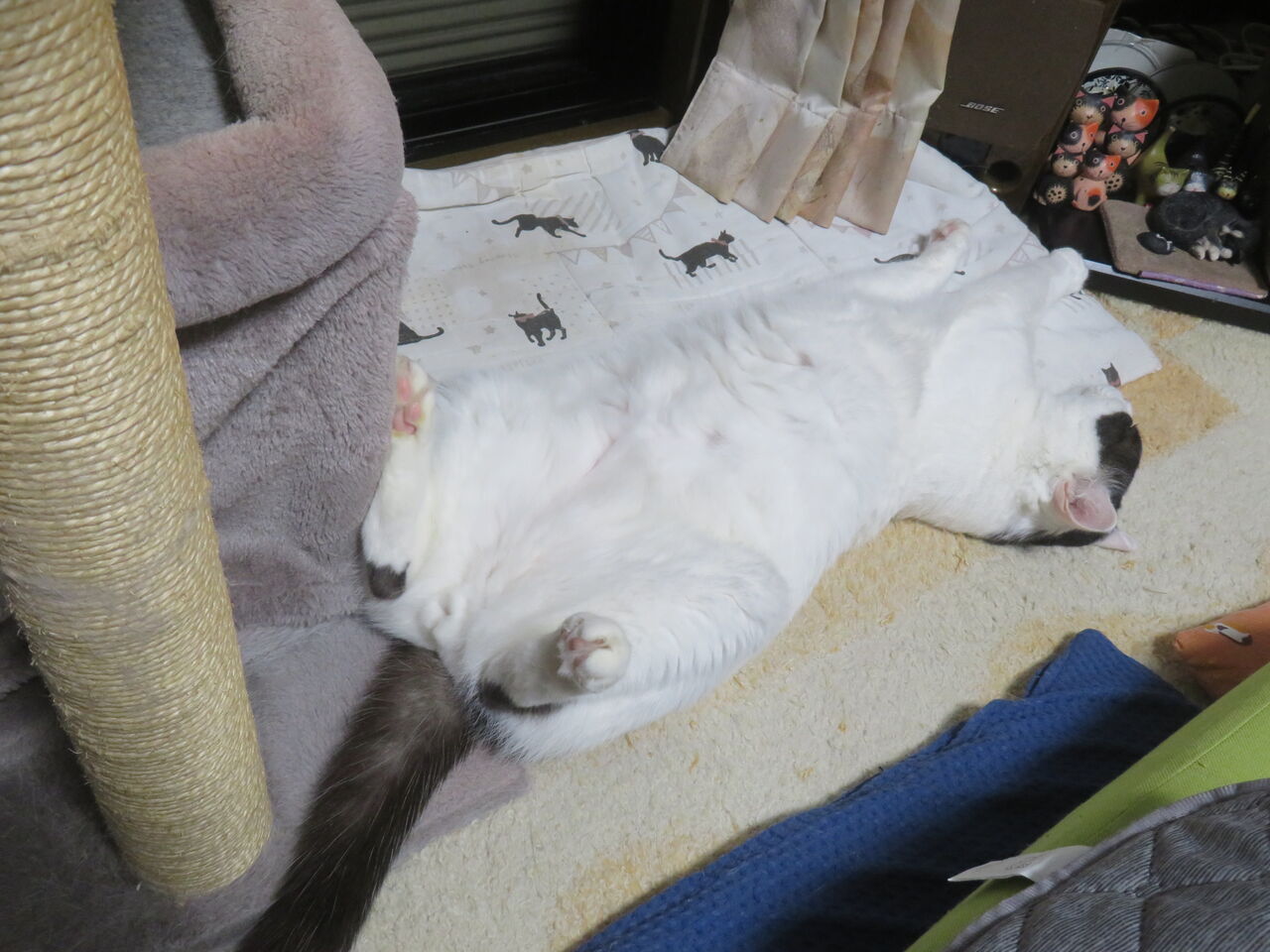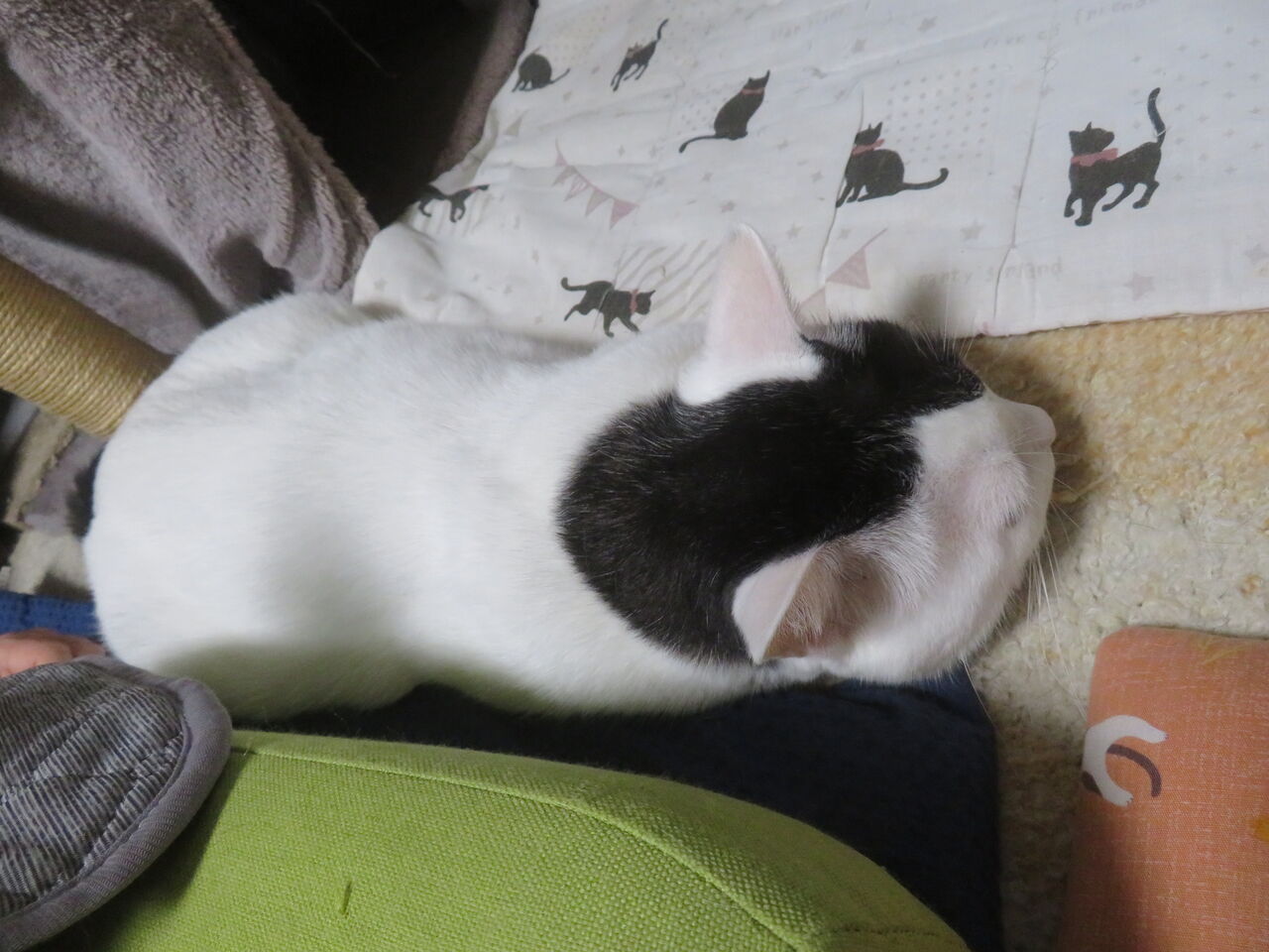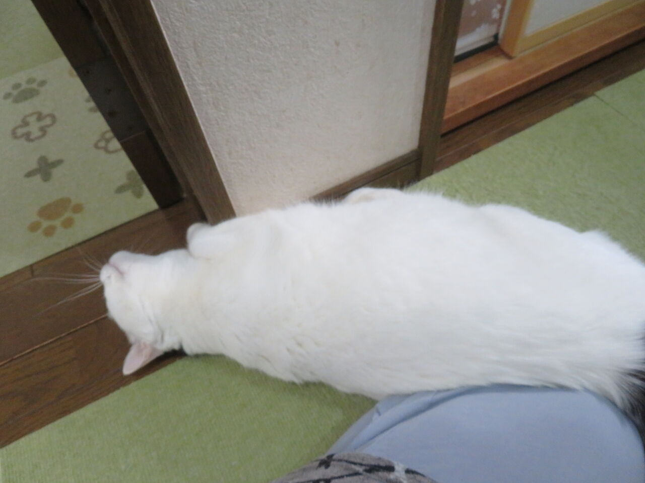 膝の上に居る”ななみ”の事が気になったようですが、その後も足元で眠ねむでした