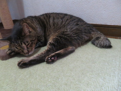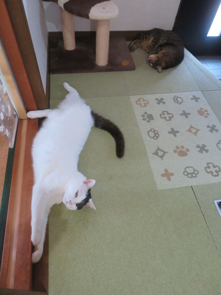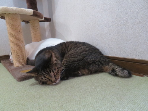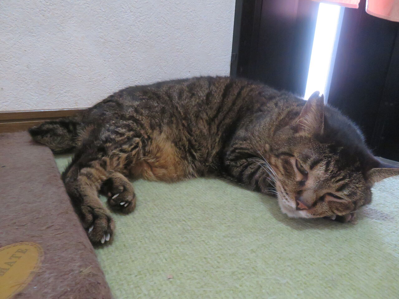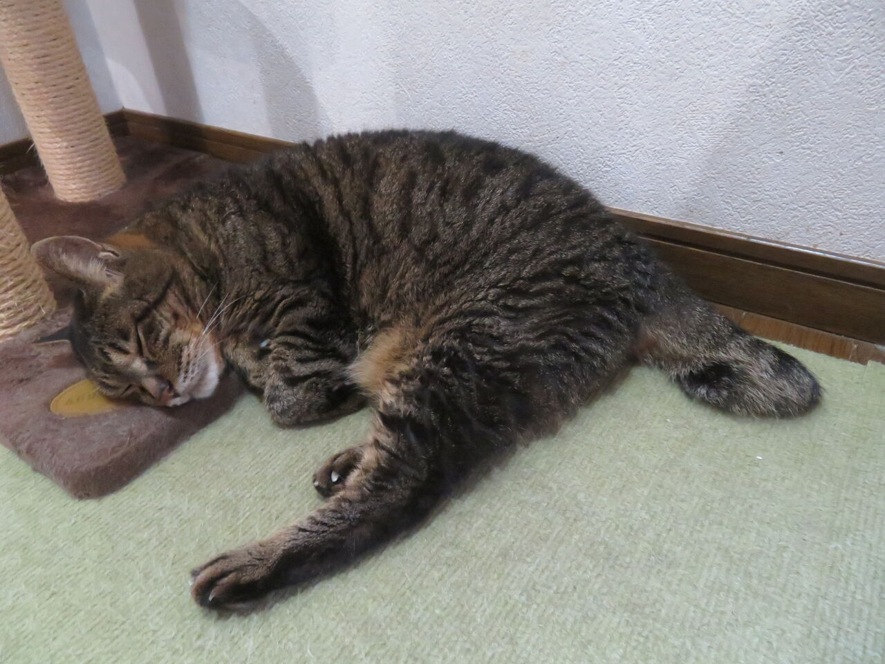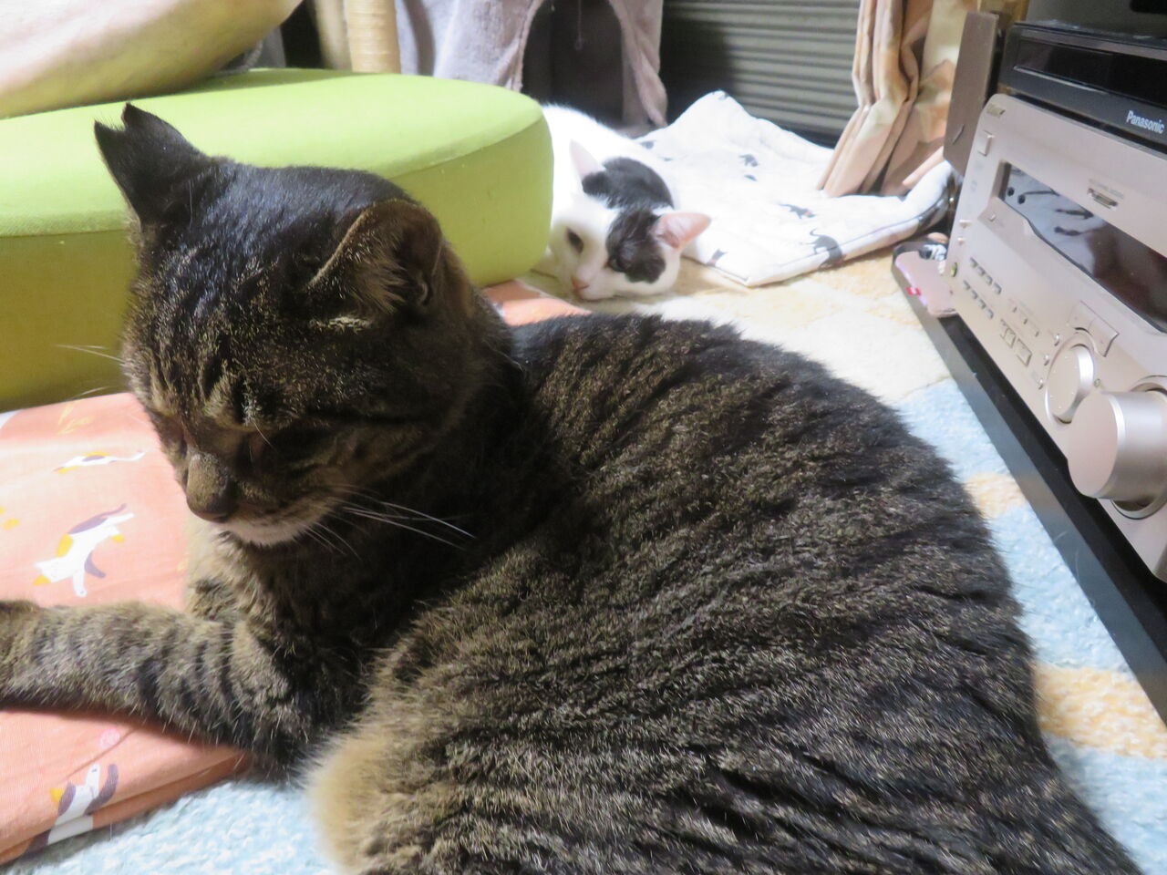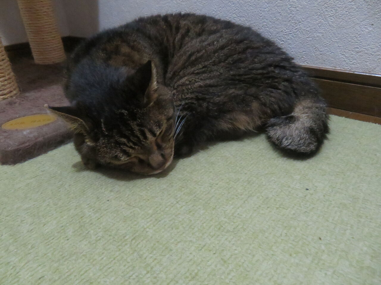 膝の上に居る”ななみ”の事が気になったようですが、その後も足元で眠ねむでした