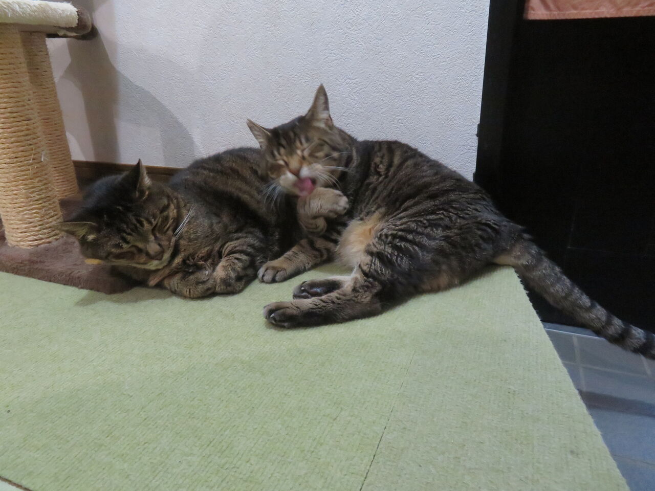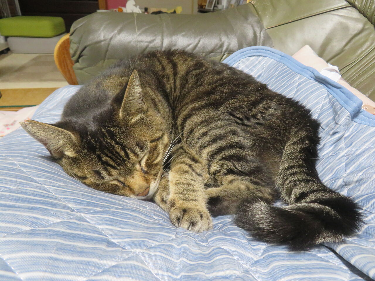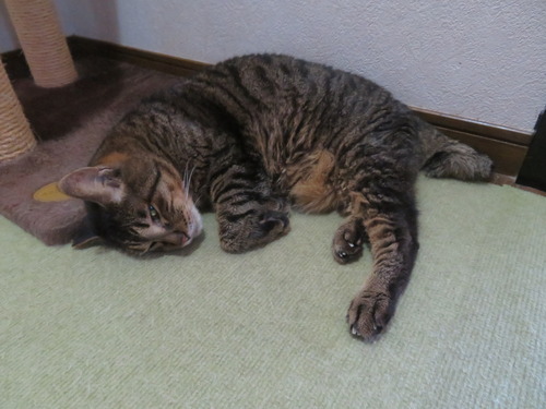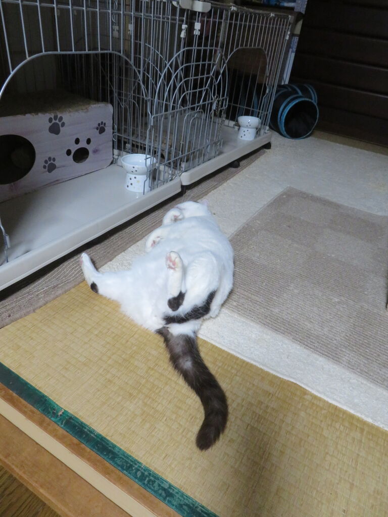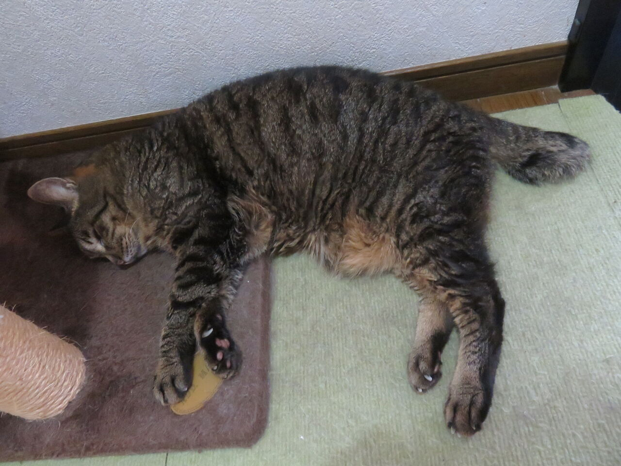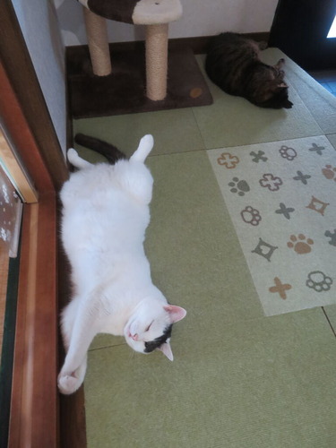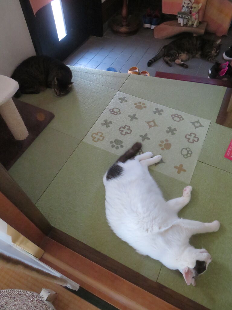 膝の上に居る”ななみ”の事が気になったようですが、その後も足元で眠ねむでした