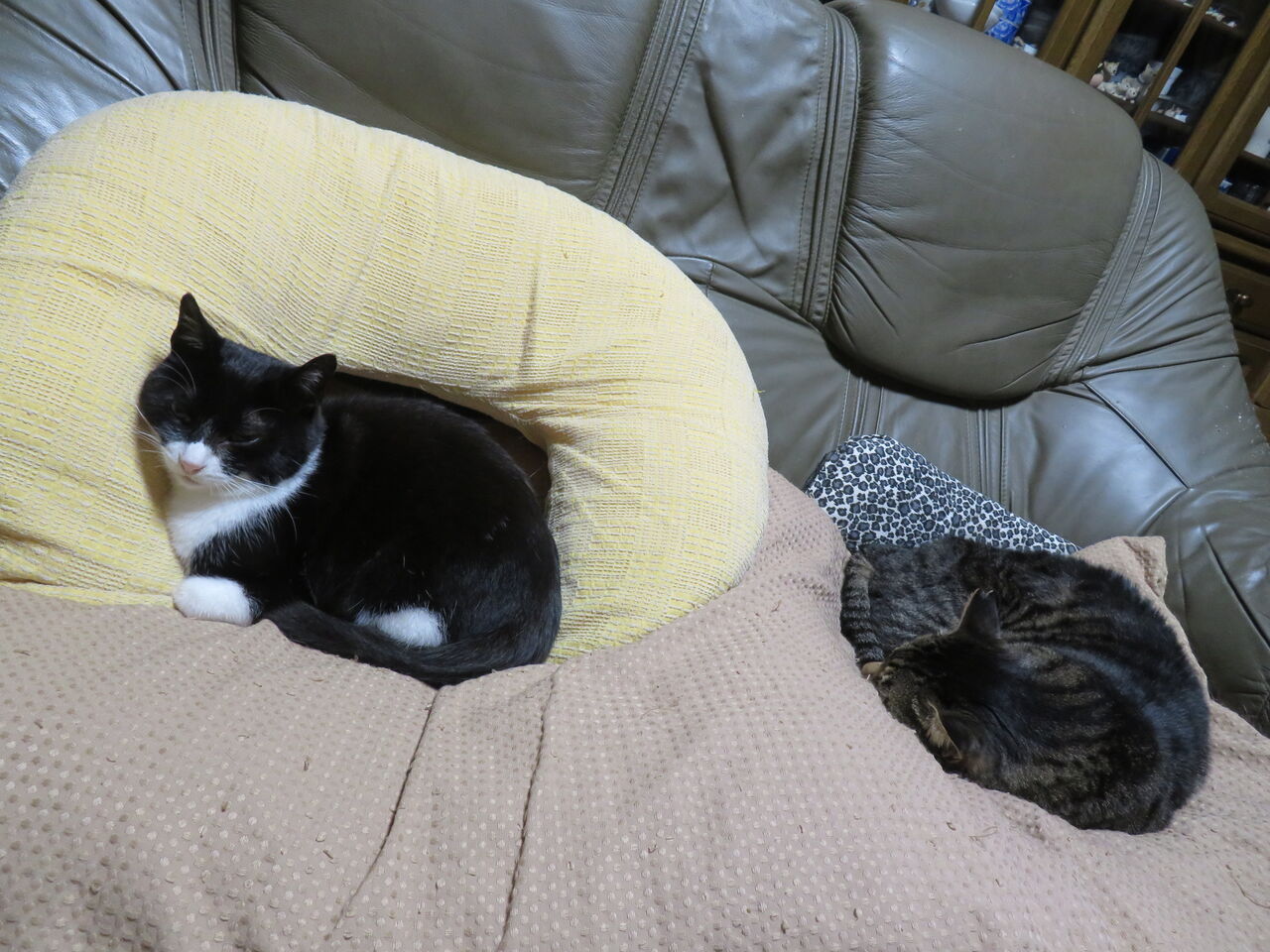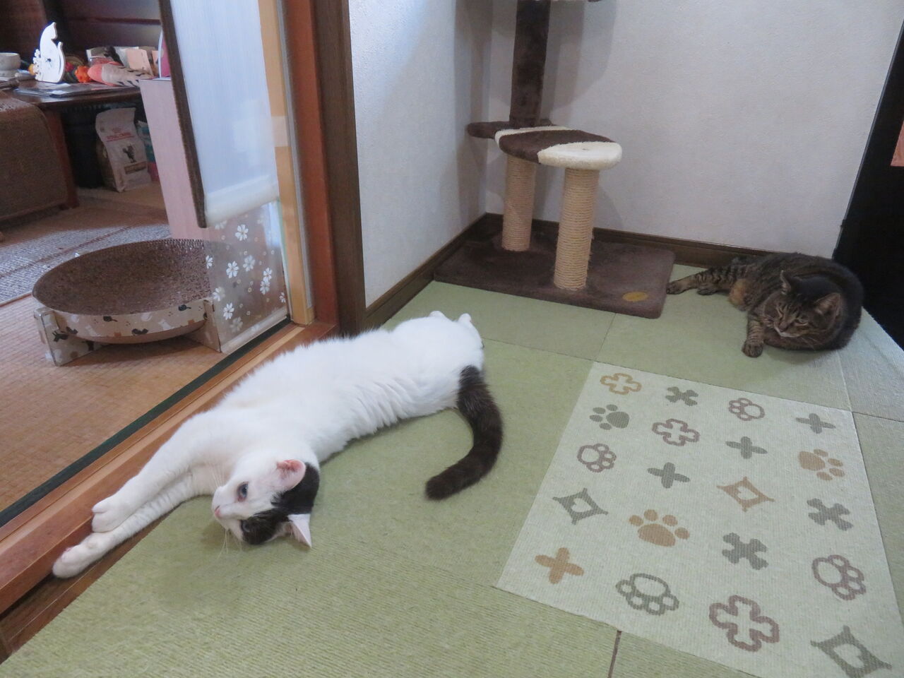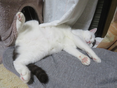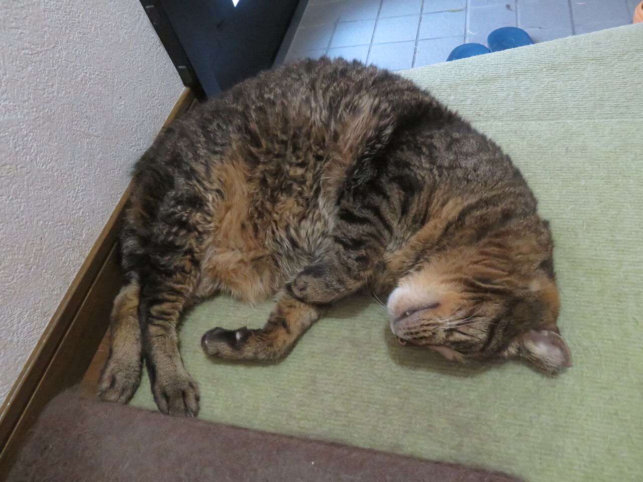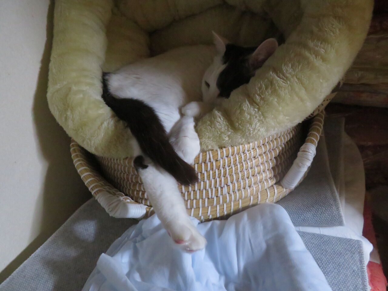 膝の上に居る”ななみ”の事が気になったようですが、その後も足元で眠ねむでした