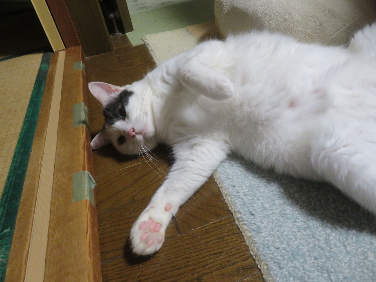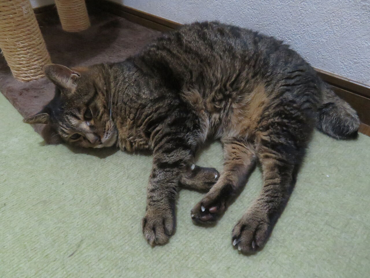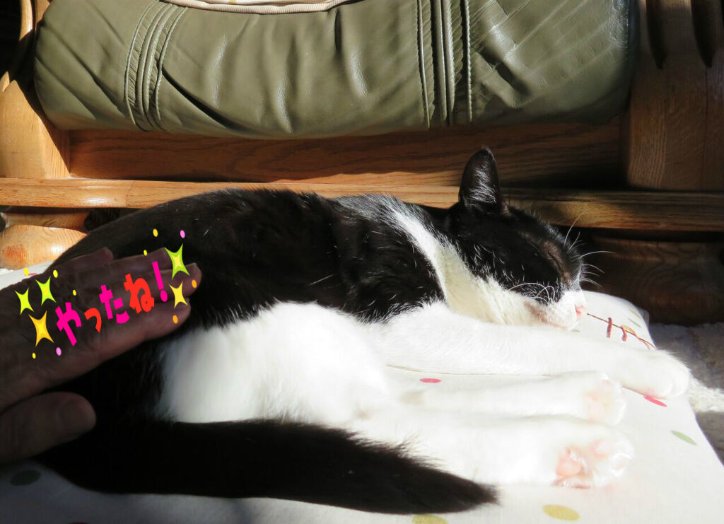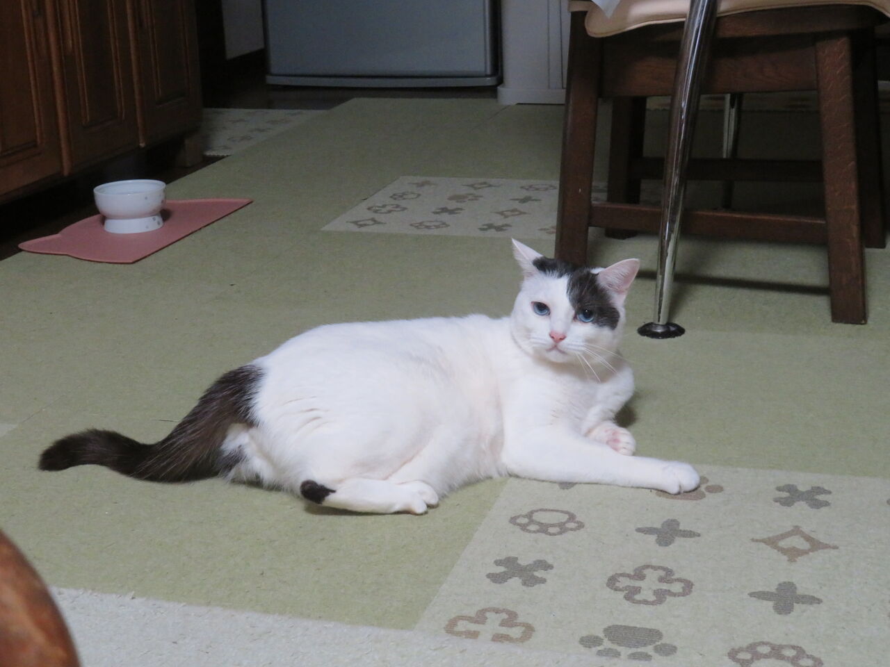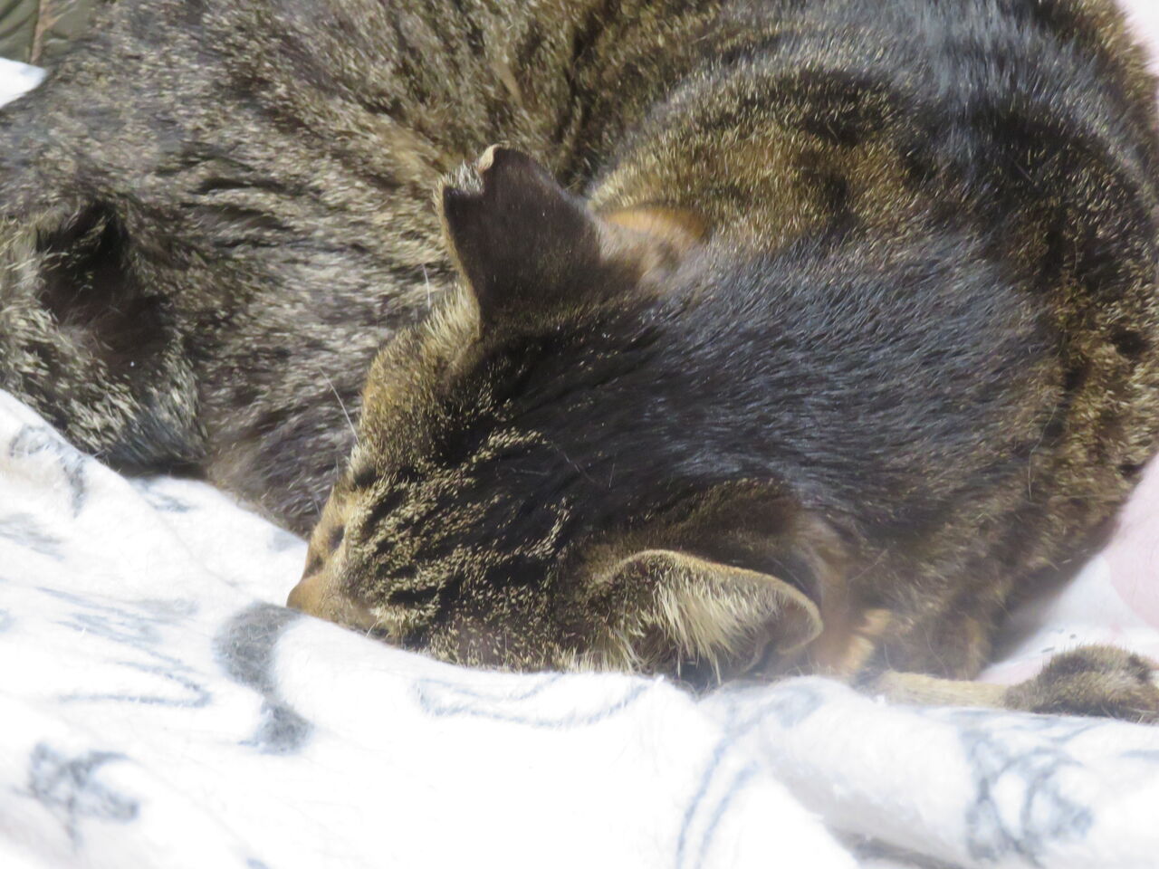 膝の上に居る”ななみ”の事が気になったようですが、その後も足元で眠ねむでした