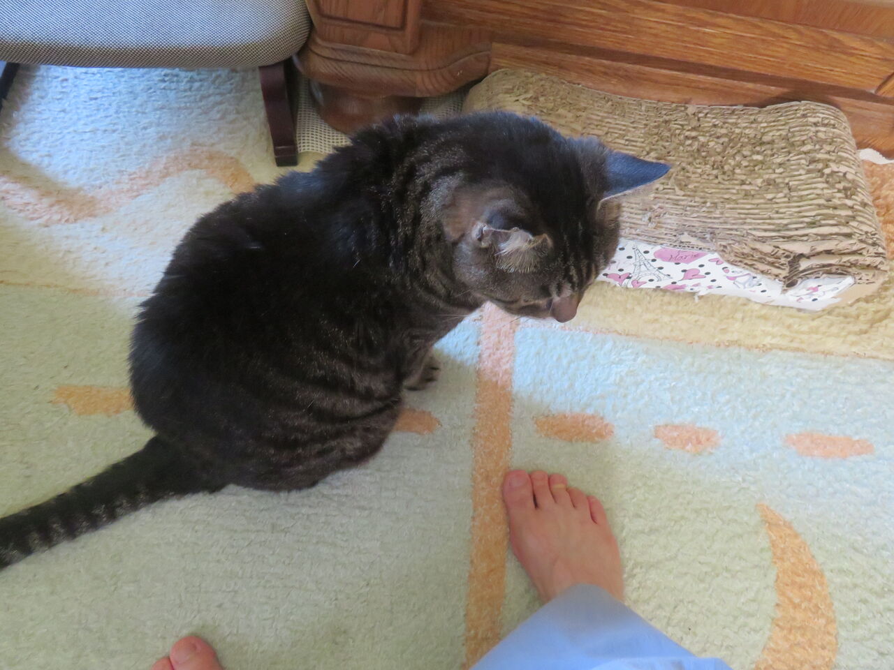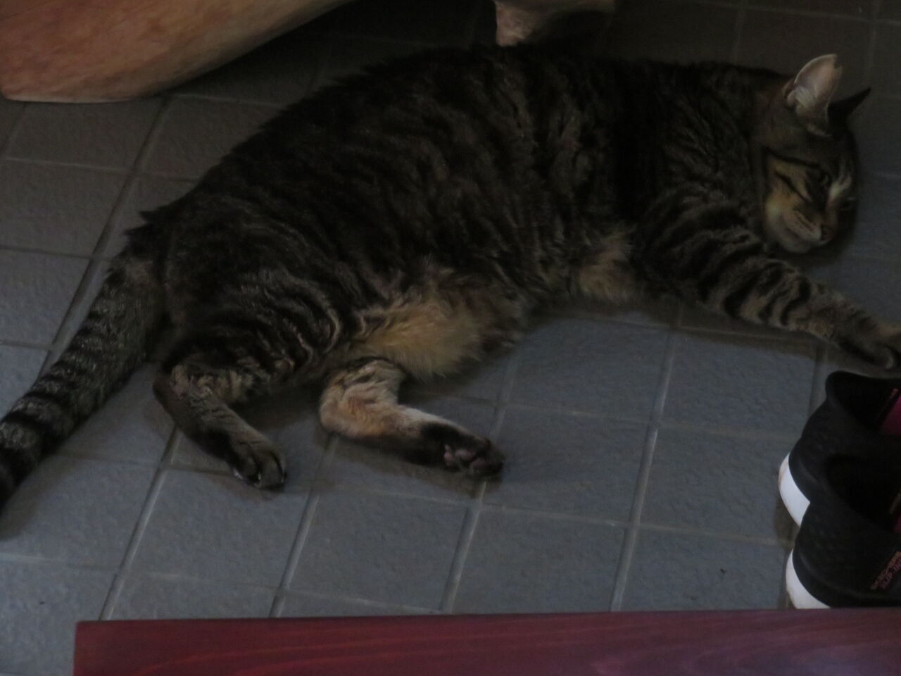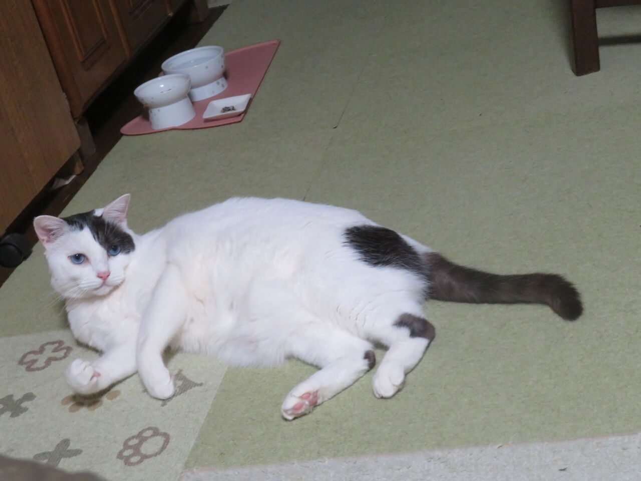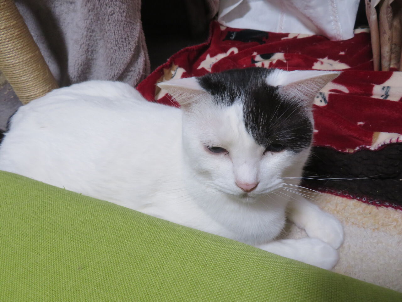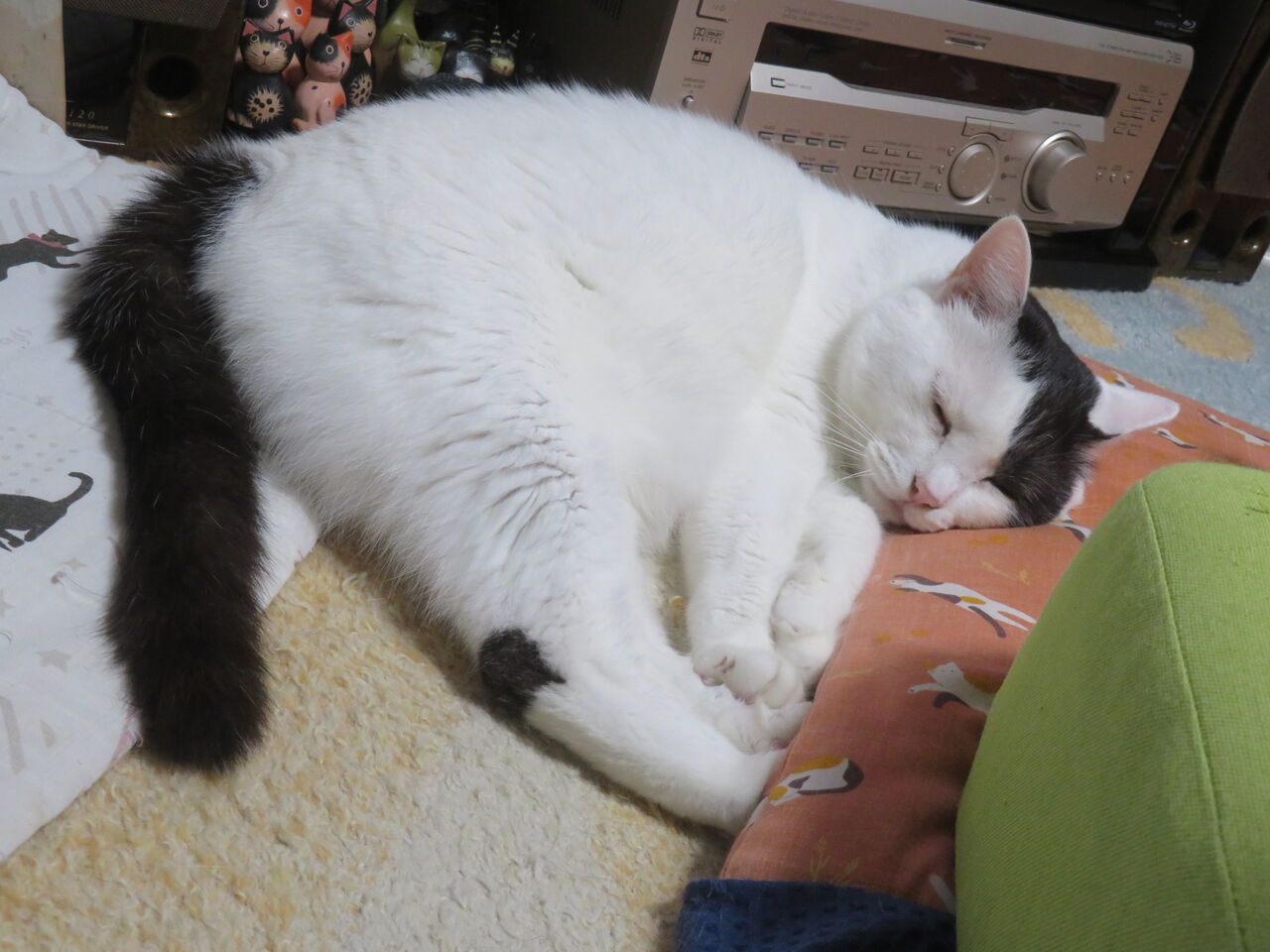 膝の上に居る”ななみ”の事が気になったようですが、その後も足元で眠ねむでした