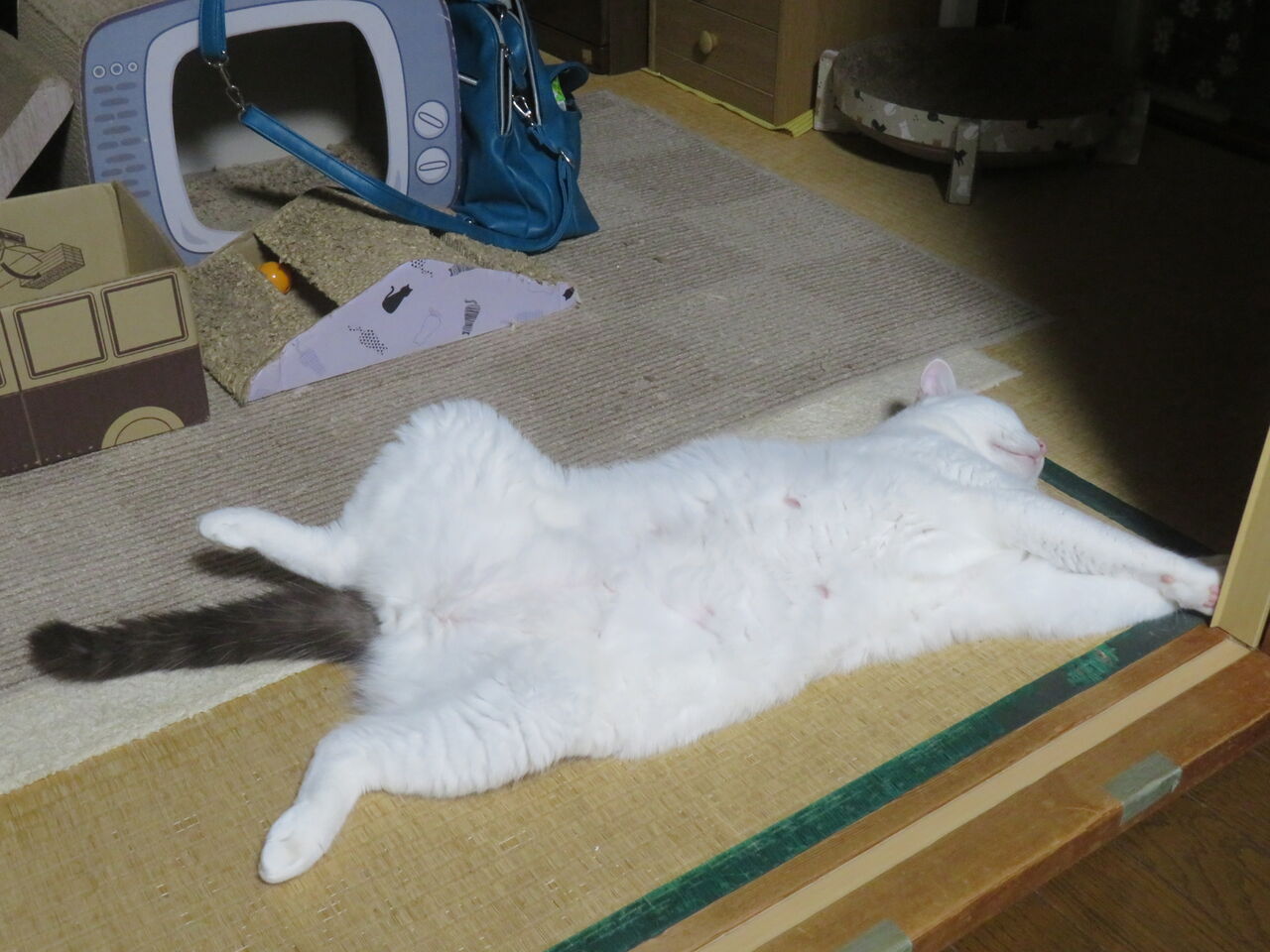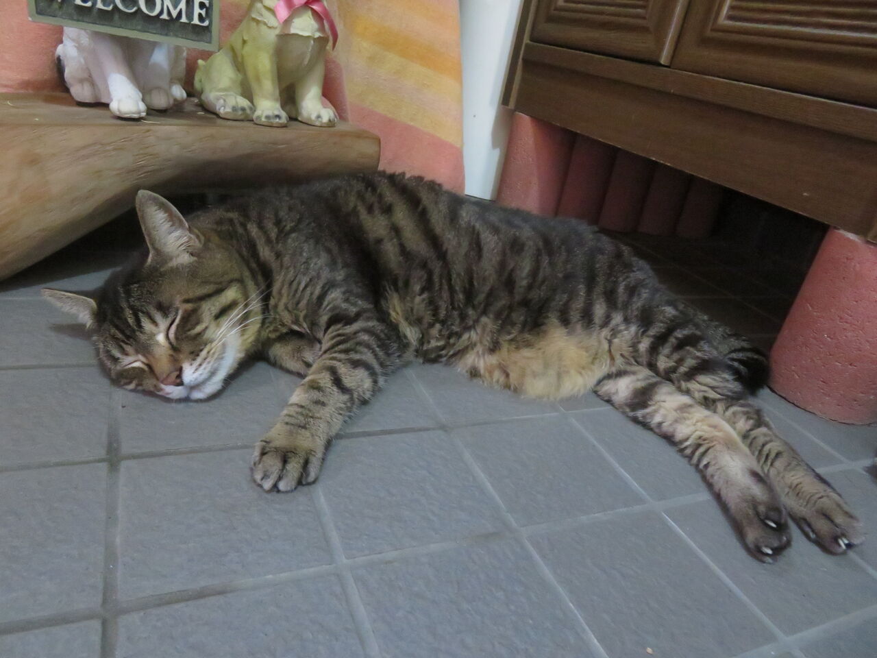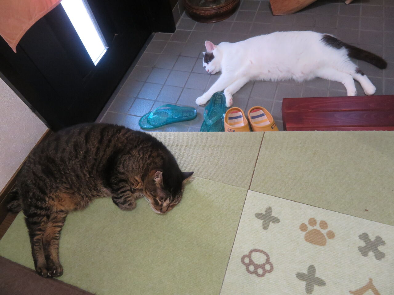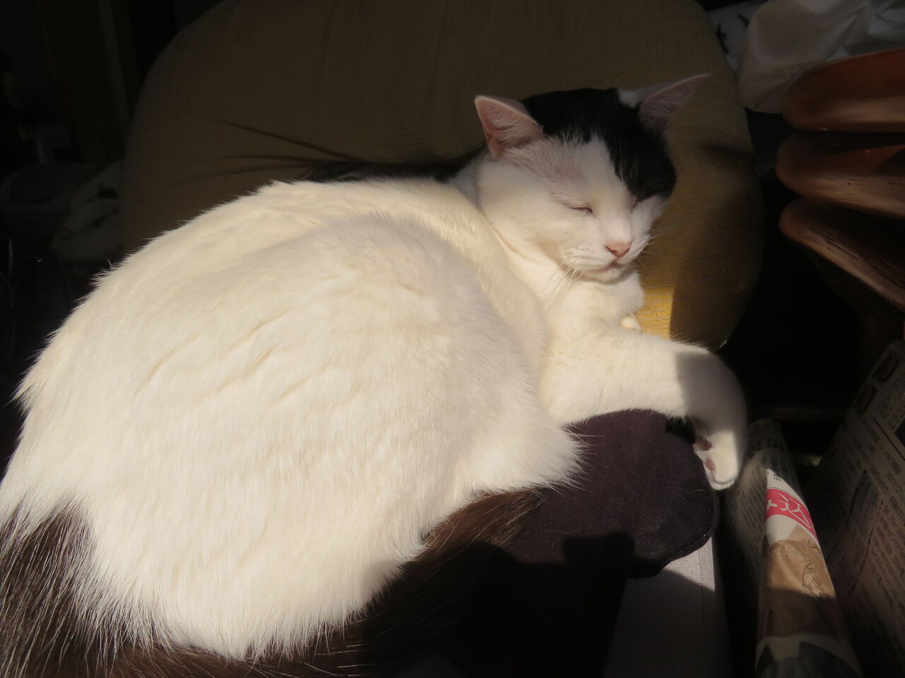 膝の上に居る”ななみ”の事が気になったようですが、その後も足元で眠ねむでした