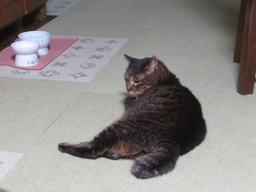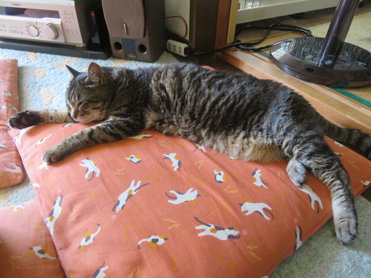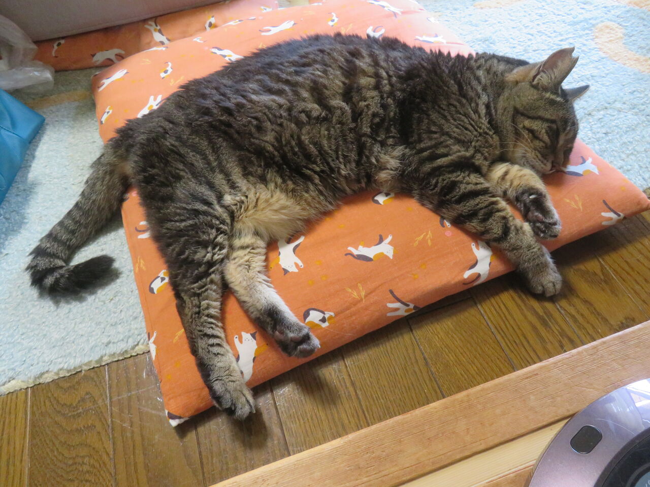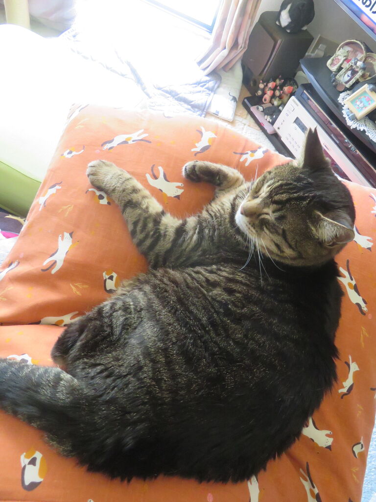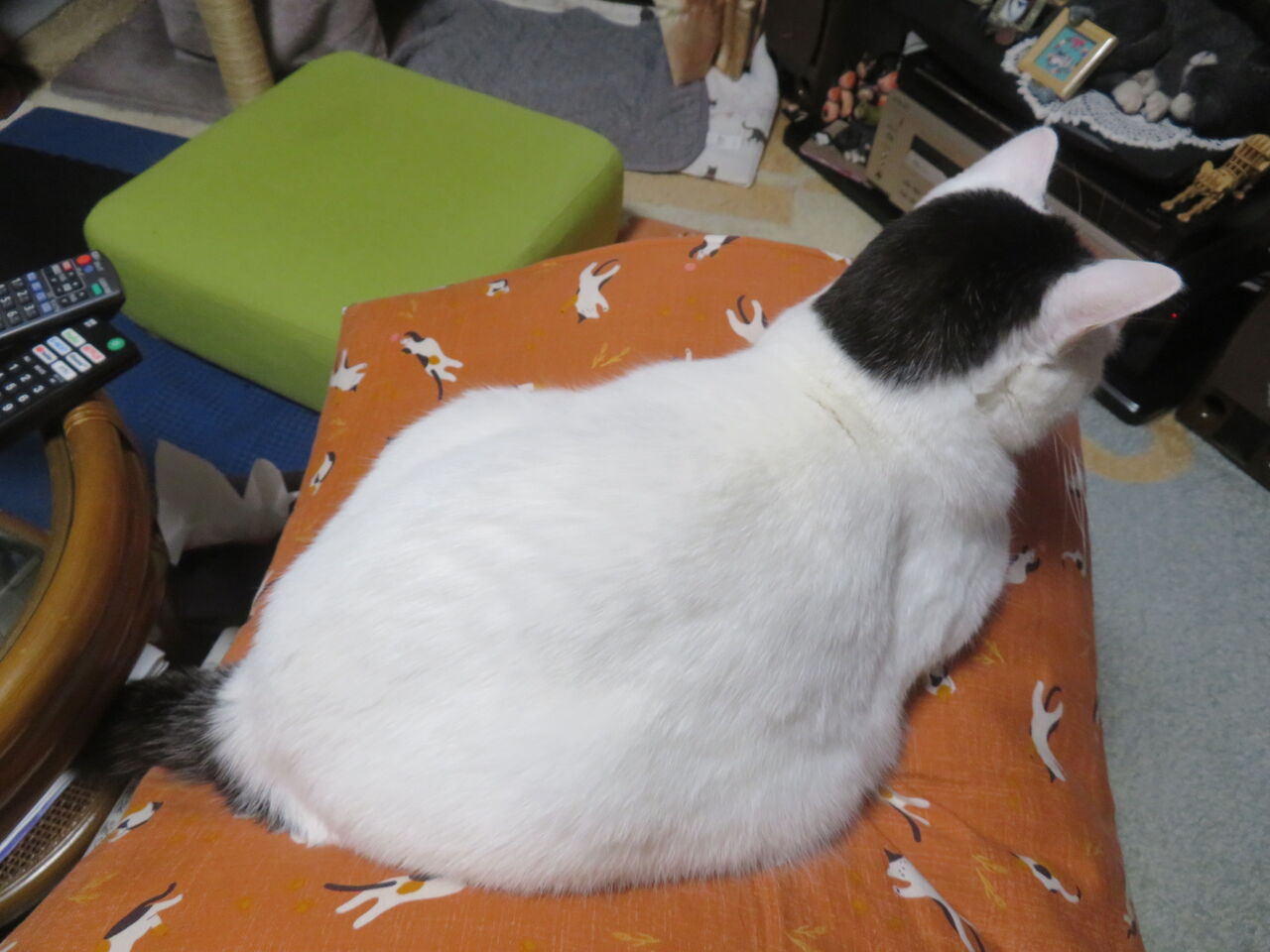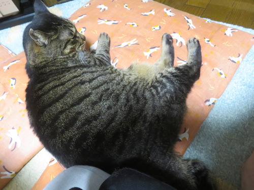 高マットに座ると、”かい”が傍に来たので座布団を膝の上に乗せると、その上に”かい”が乗って来てマッタリです