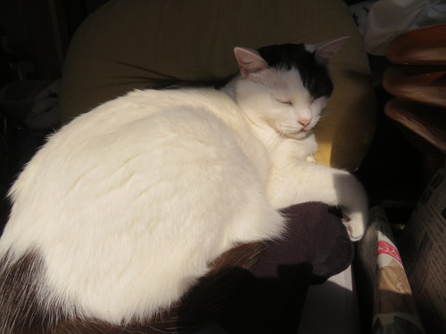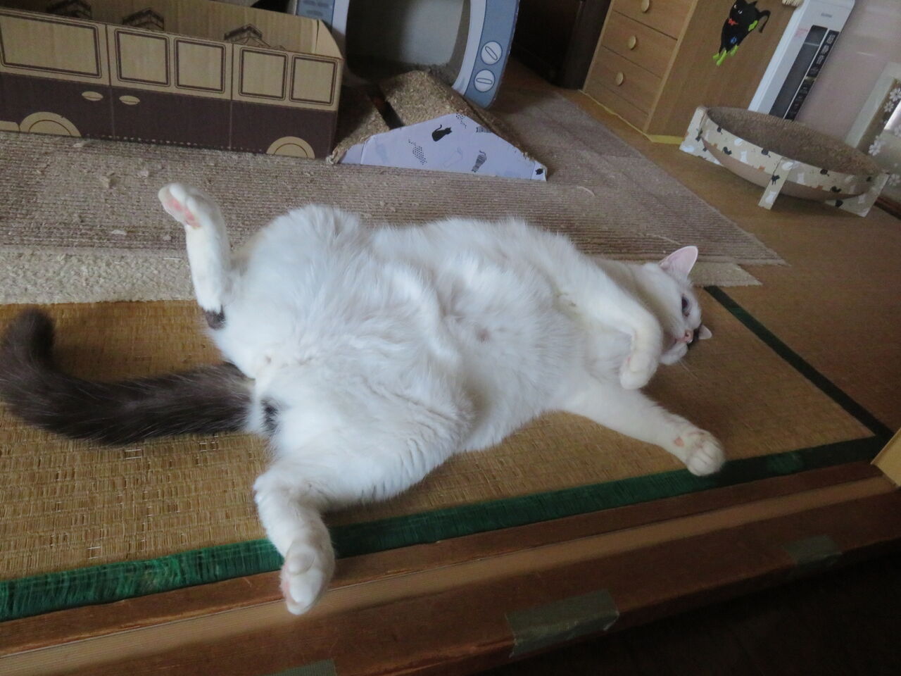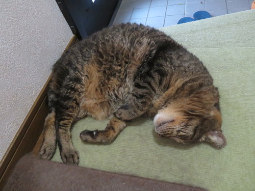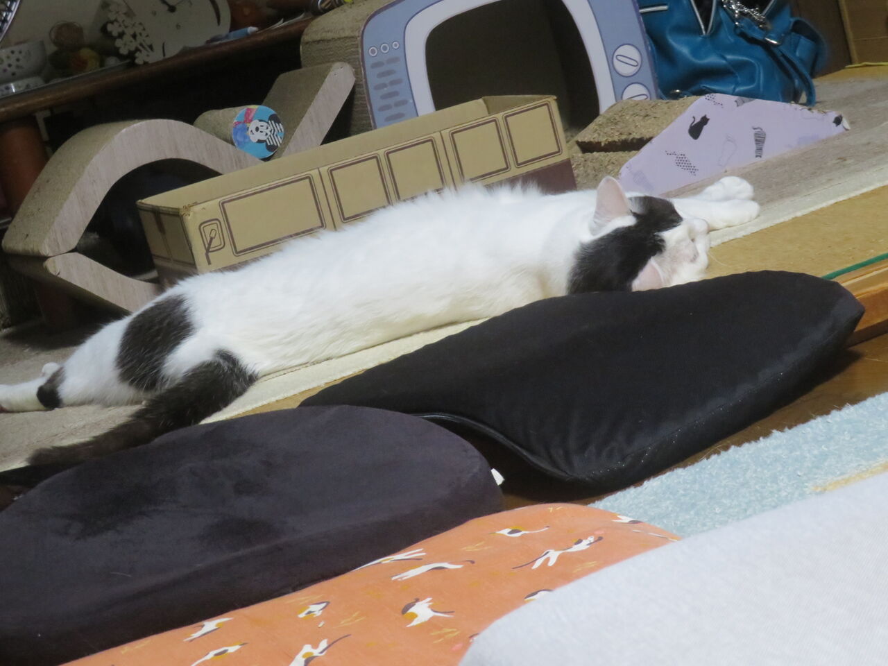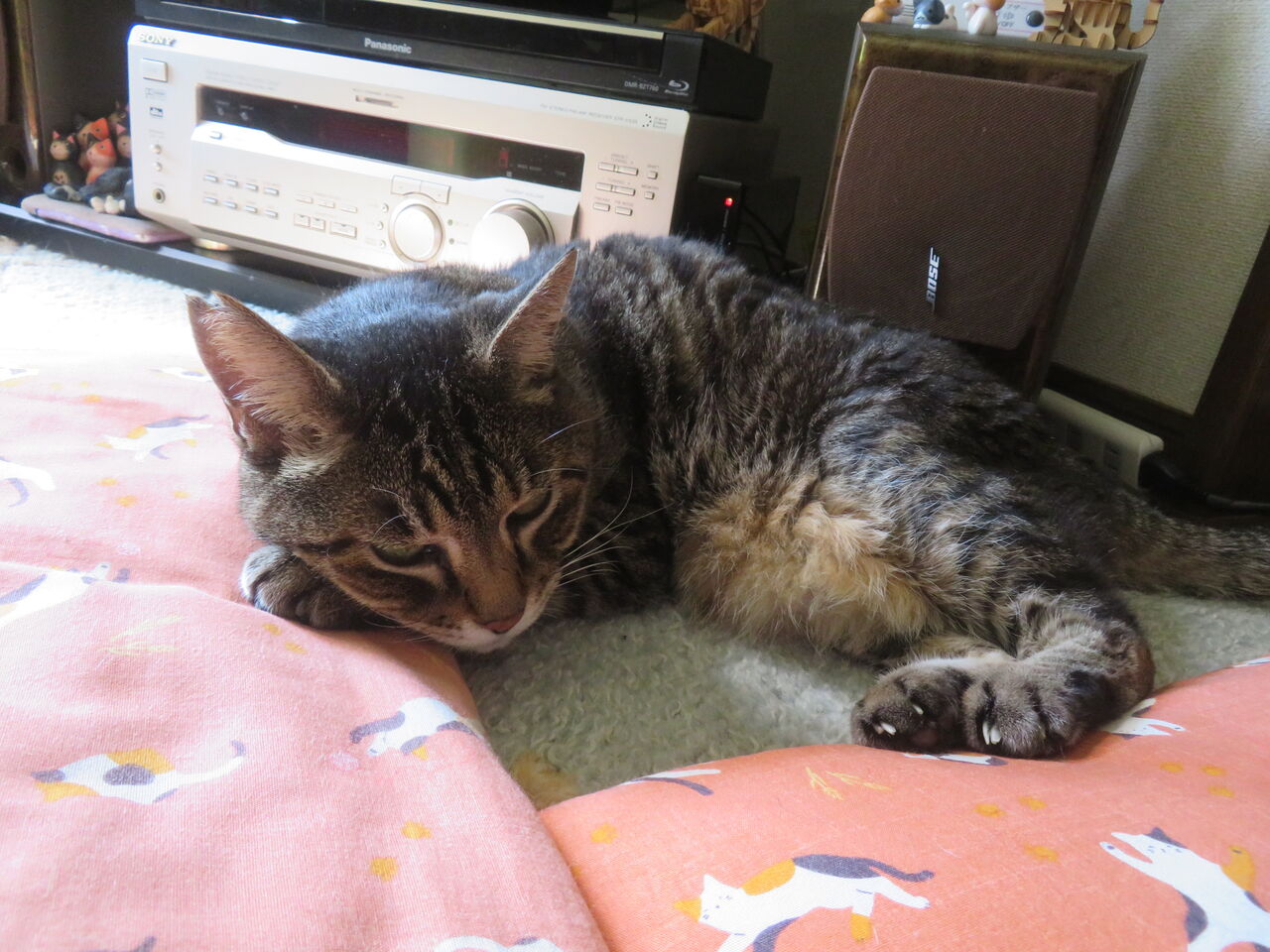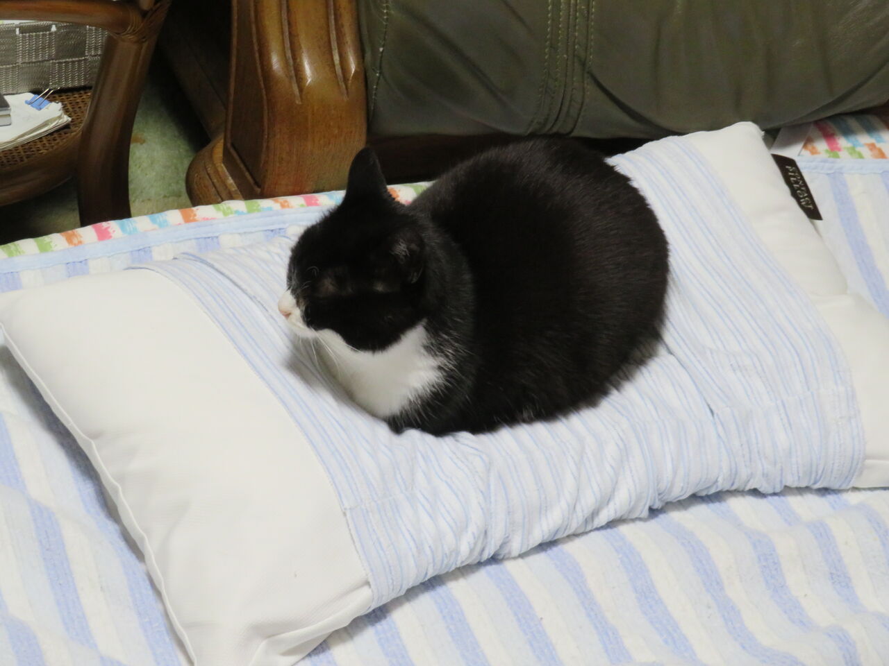 高マットに座ると、”かい”が傍に来たので座布団を膝の上に乗せると、その上に”かい”が乗って来てマッタリです