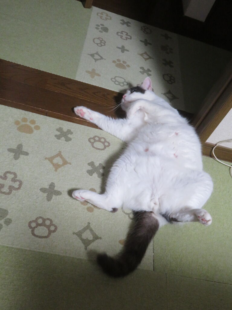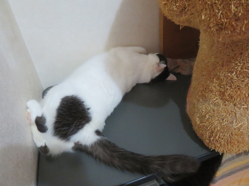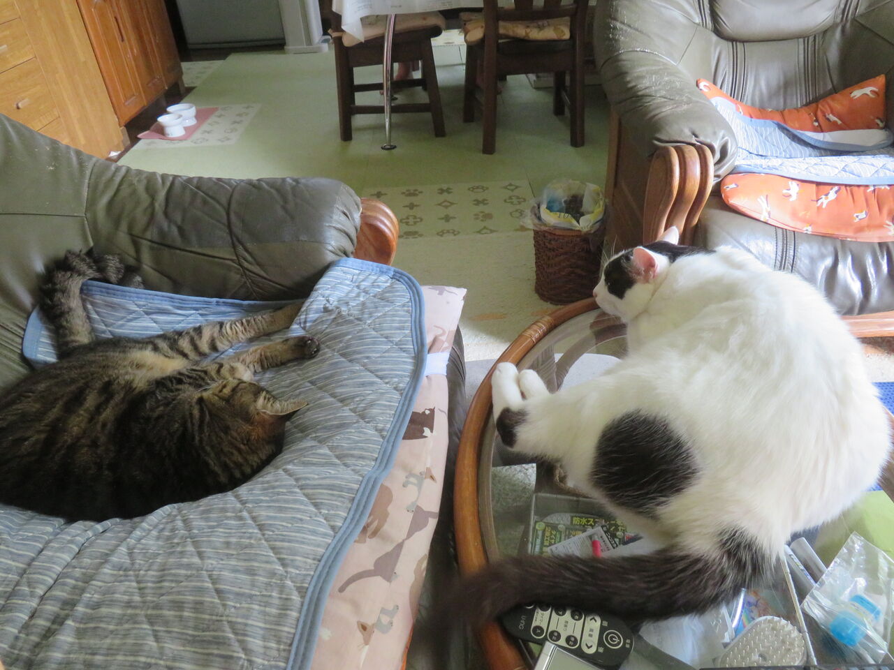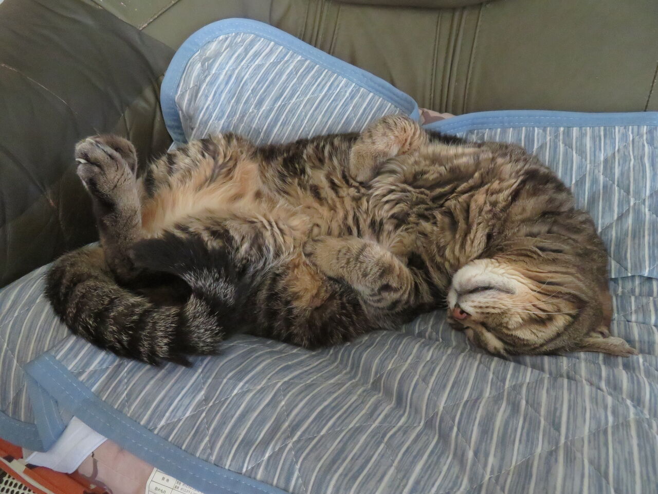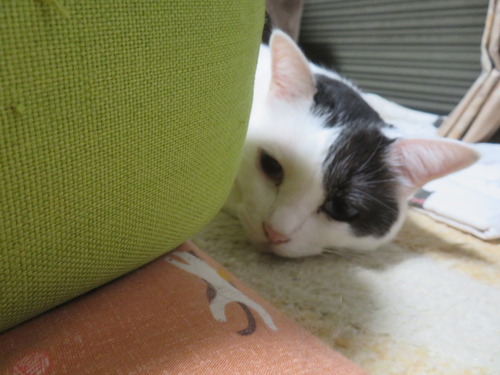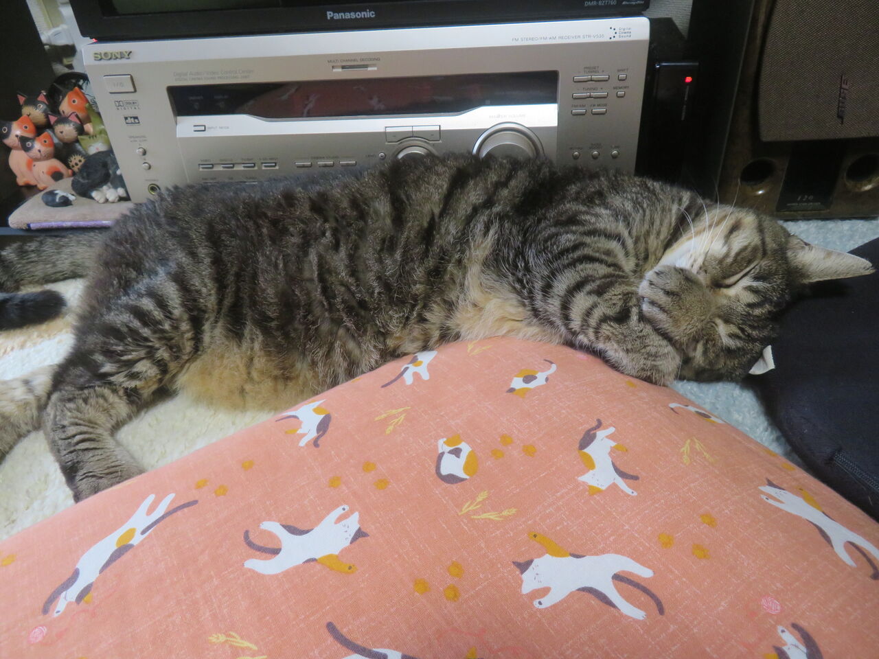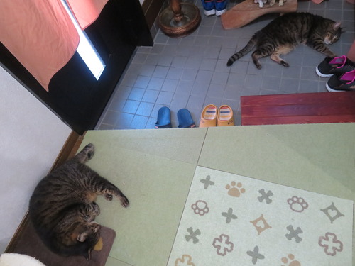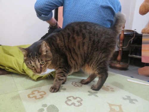 高マットに座ると、”かい”が傍に来たので座布団を膝の上に乗せると、その上に”かい”が乗って来てマッタリです