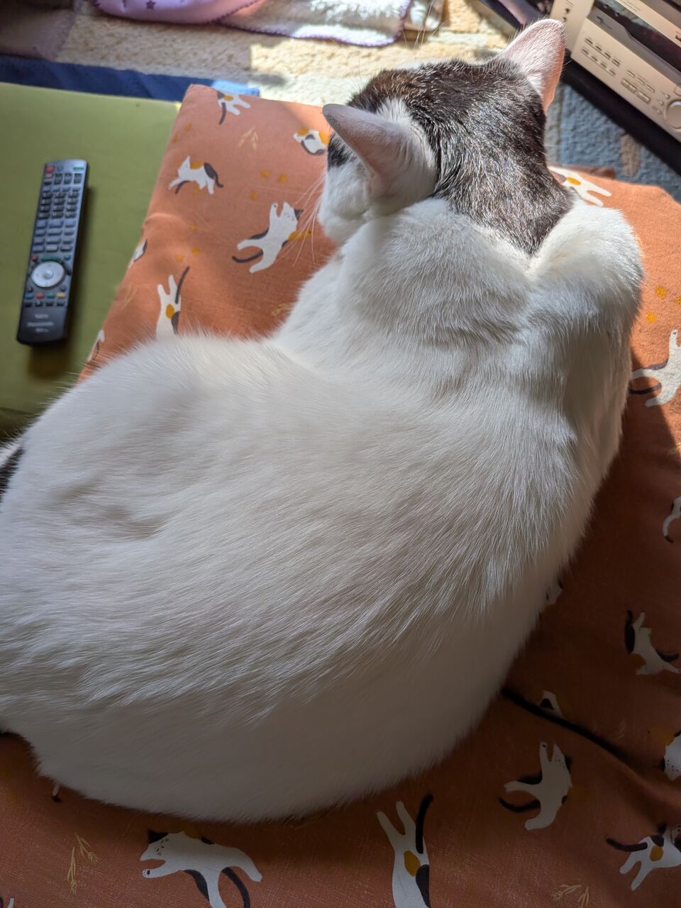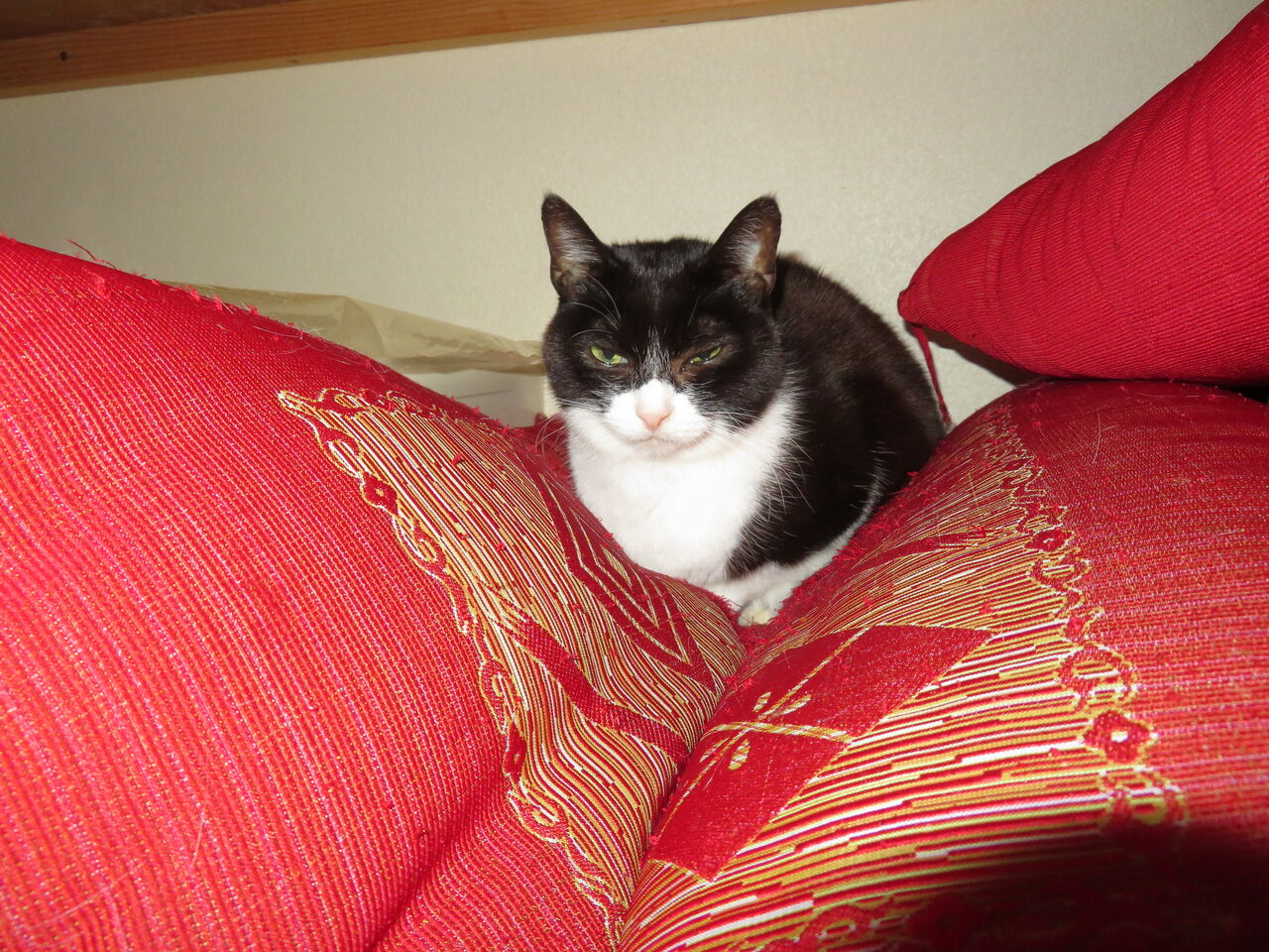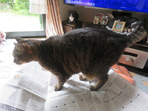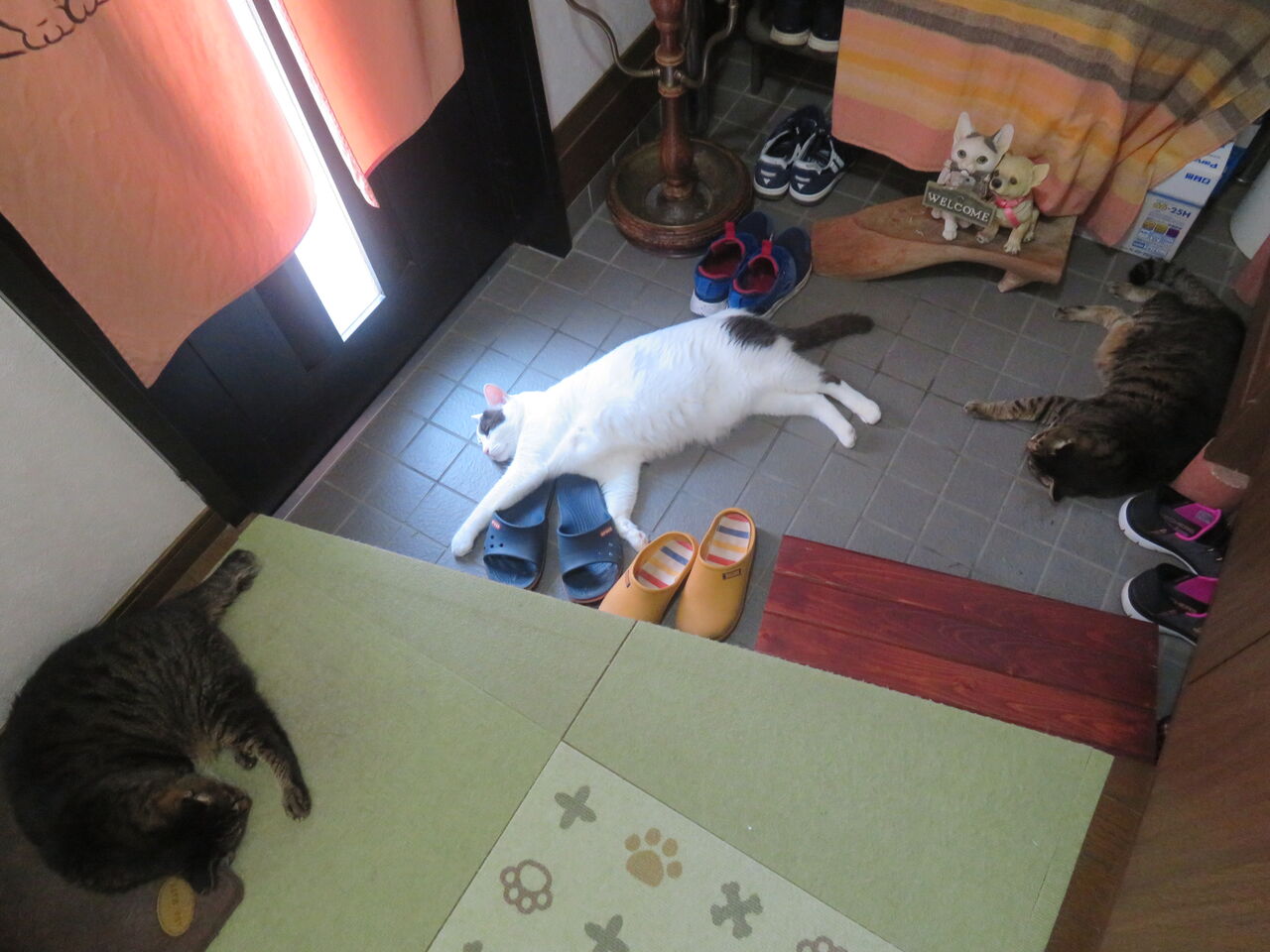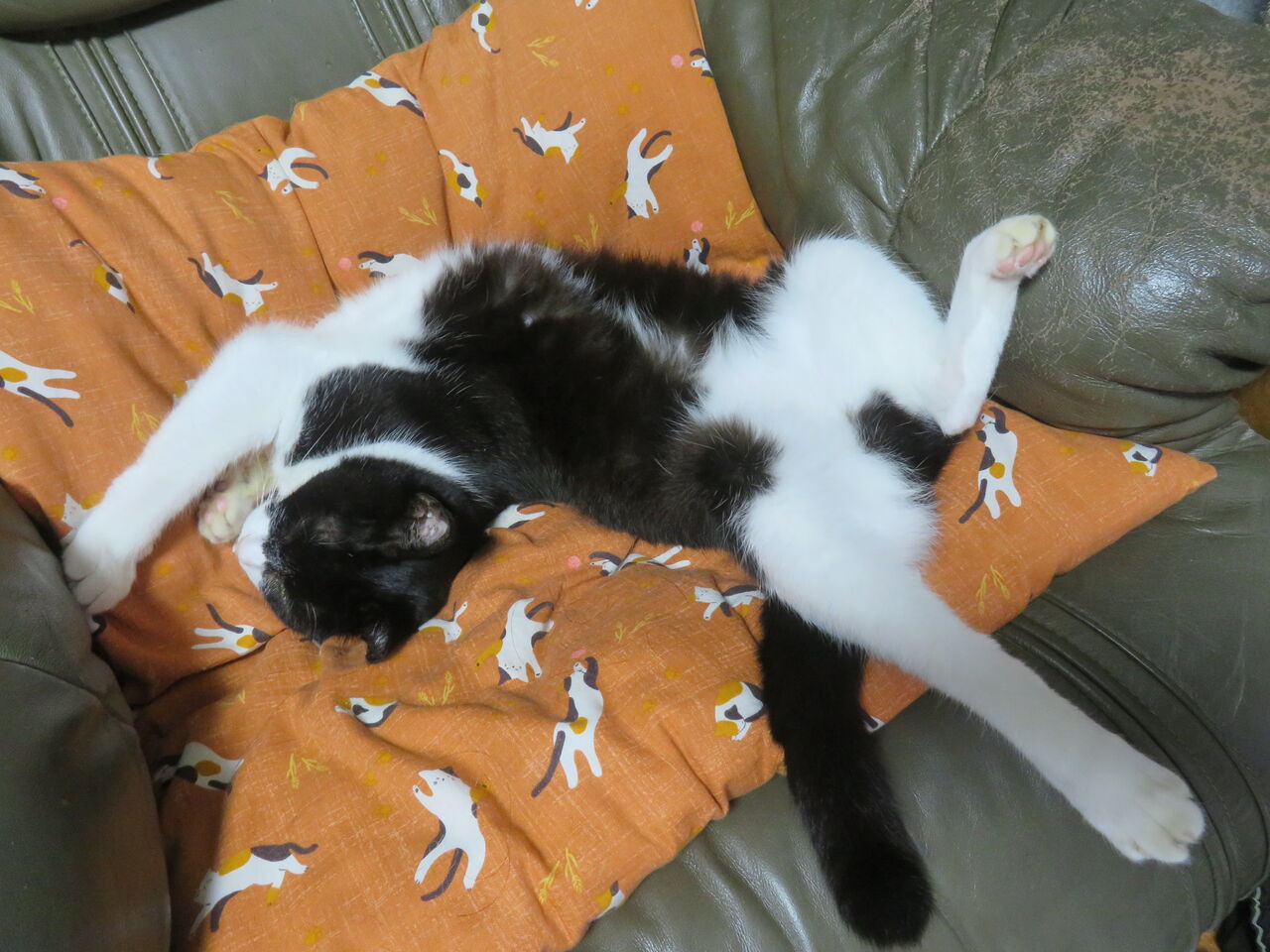 高マットに座ると、”かい”が傍に来たので座布団を膝の上に乗せると、その上に”かい”が乗って来てマッタリです