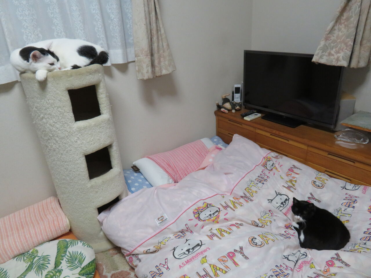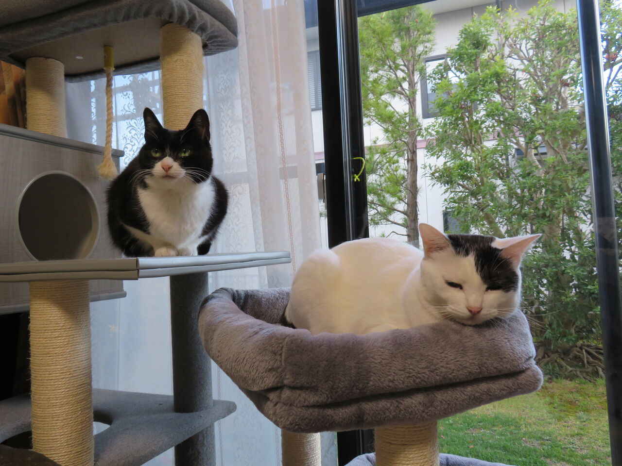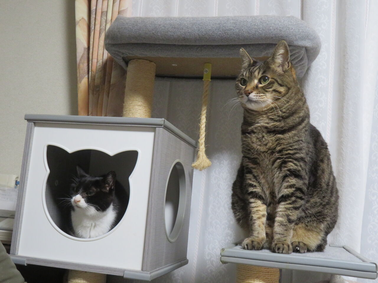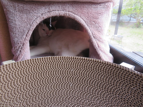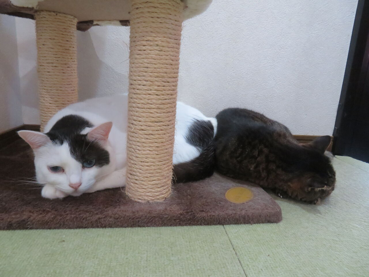 タワー下のボックスの中で寝たりと、こんな感じで過ごせています