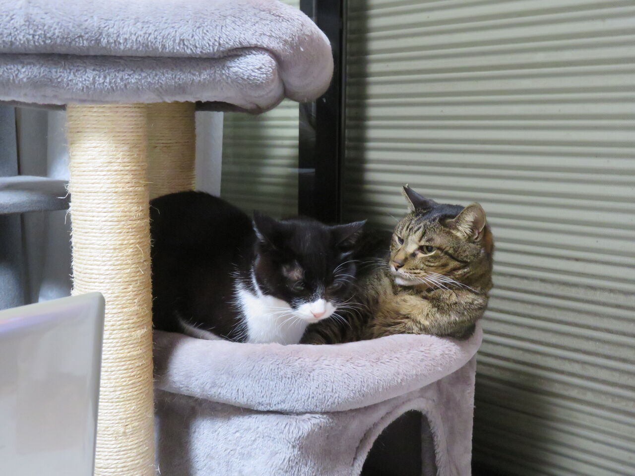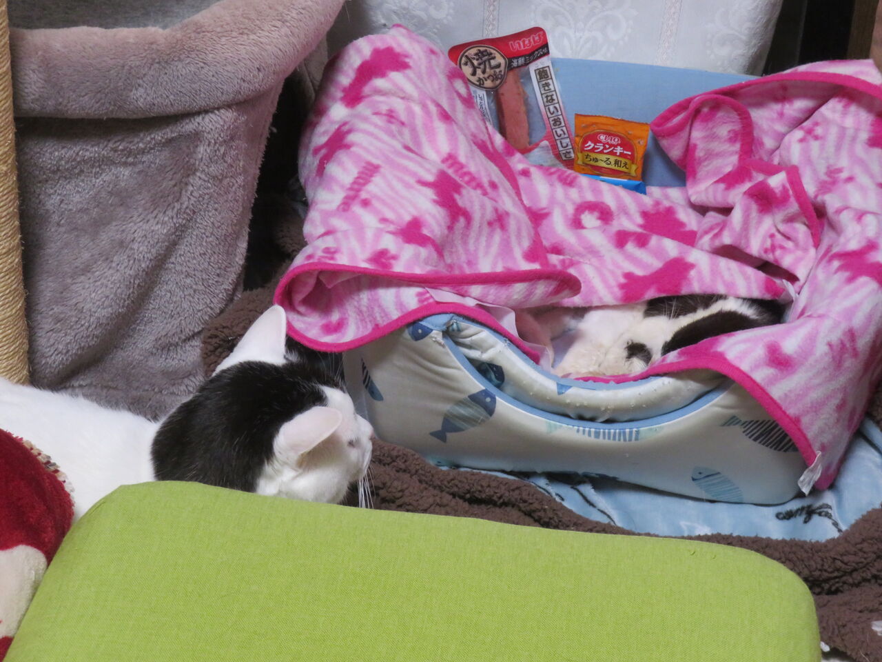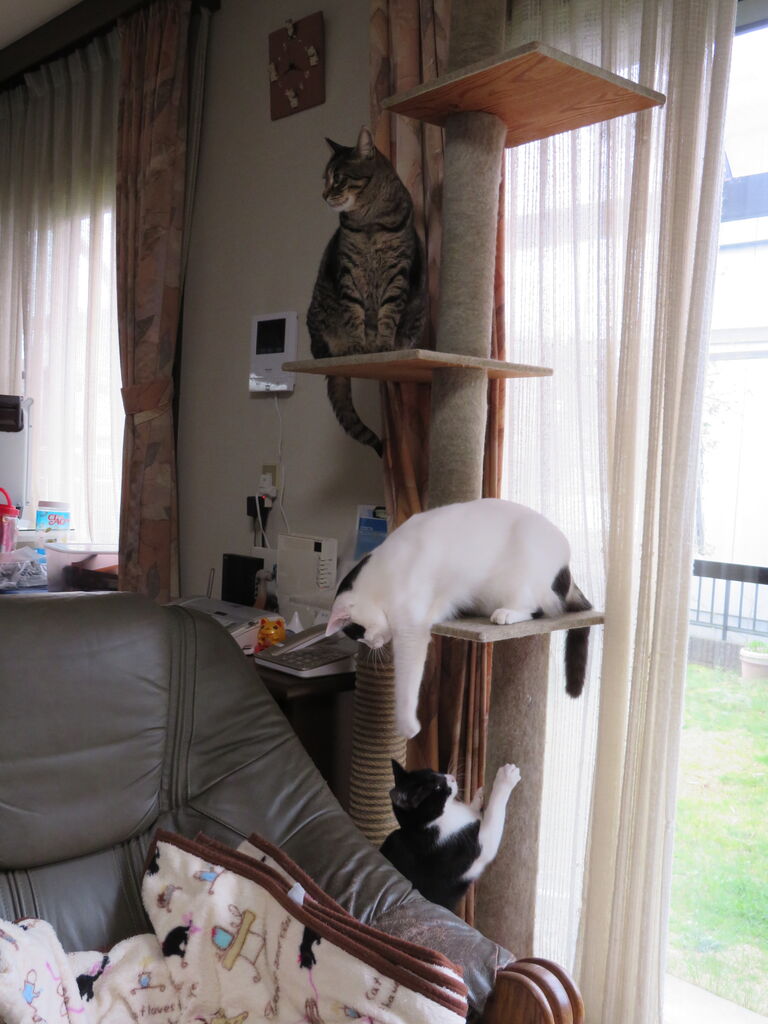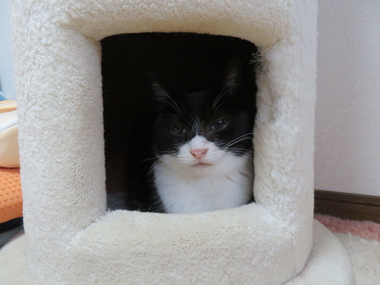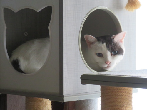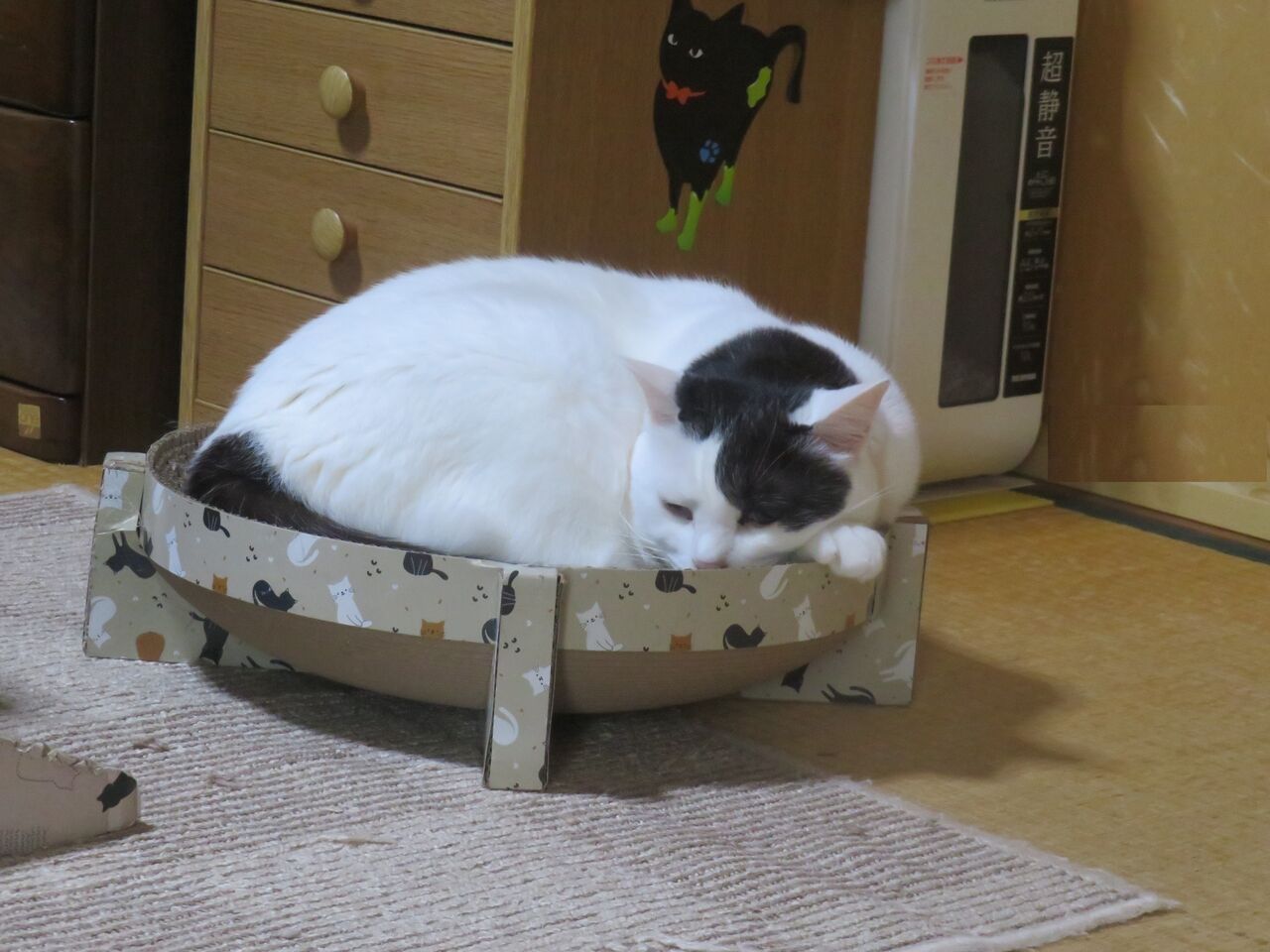 タワー下のボックスの中で寝たりと、こんな感じで過ごせています