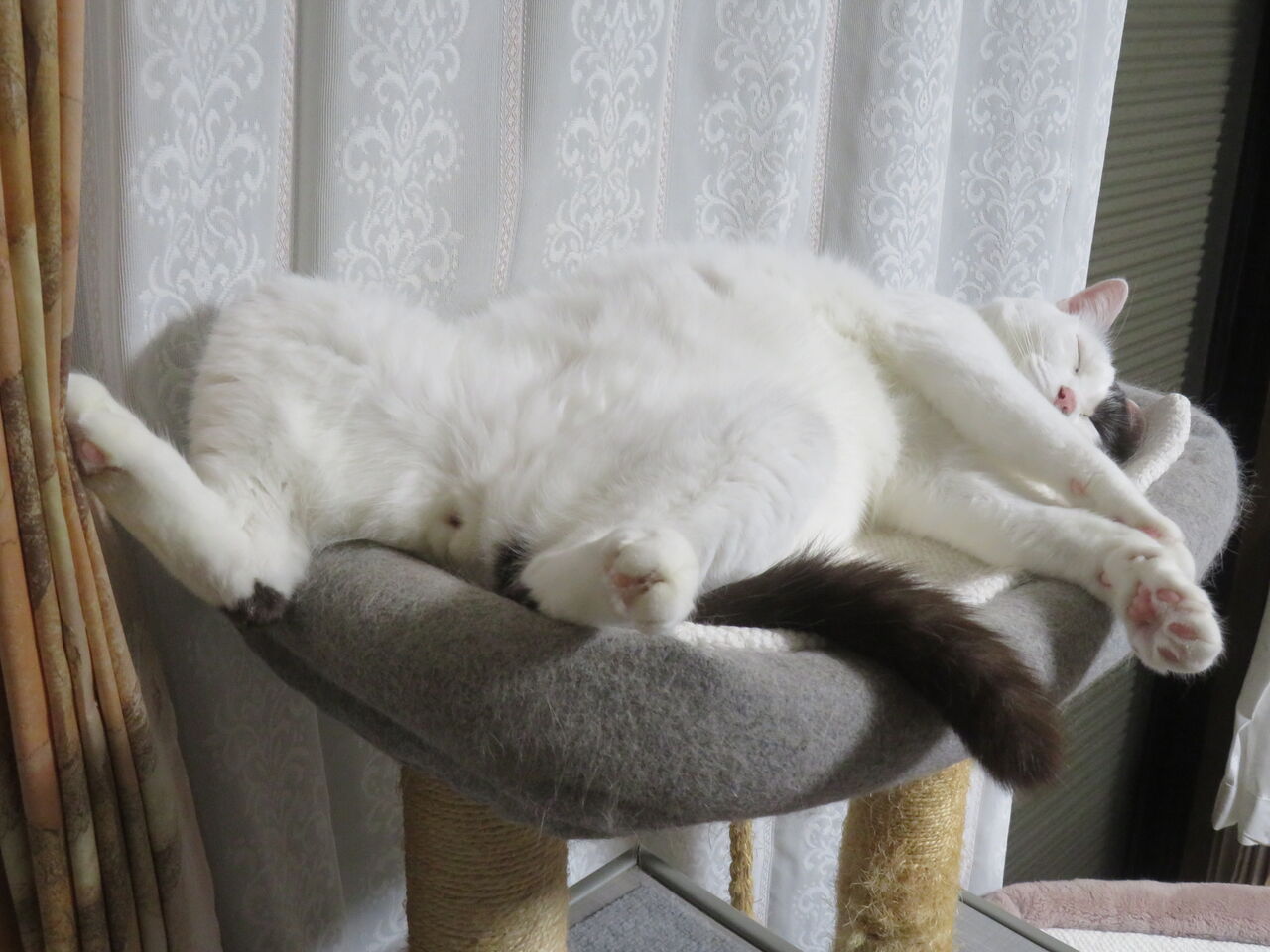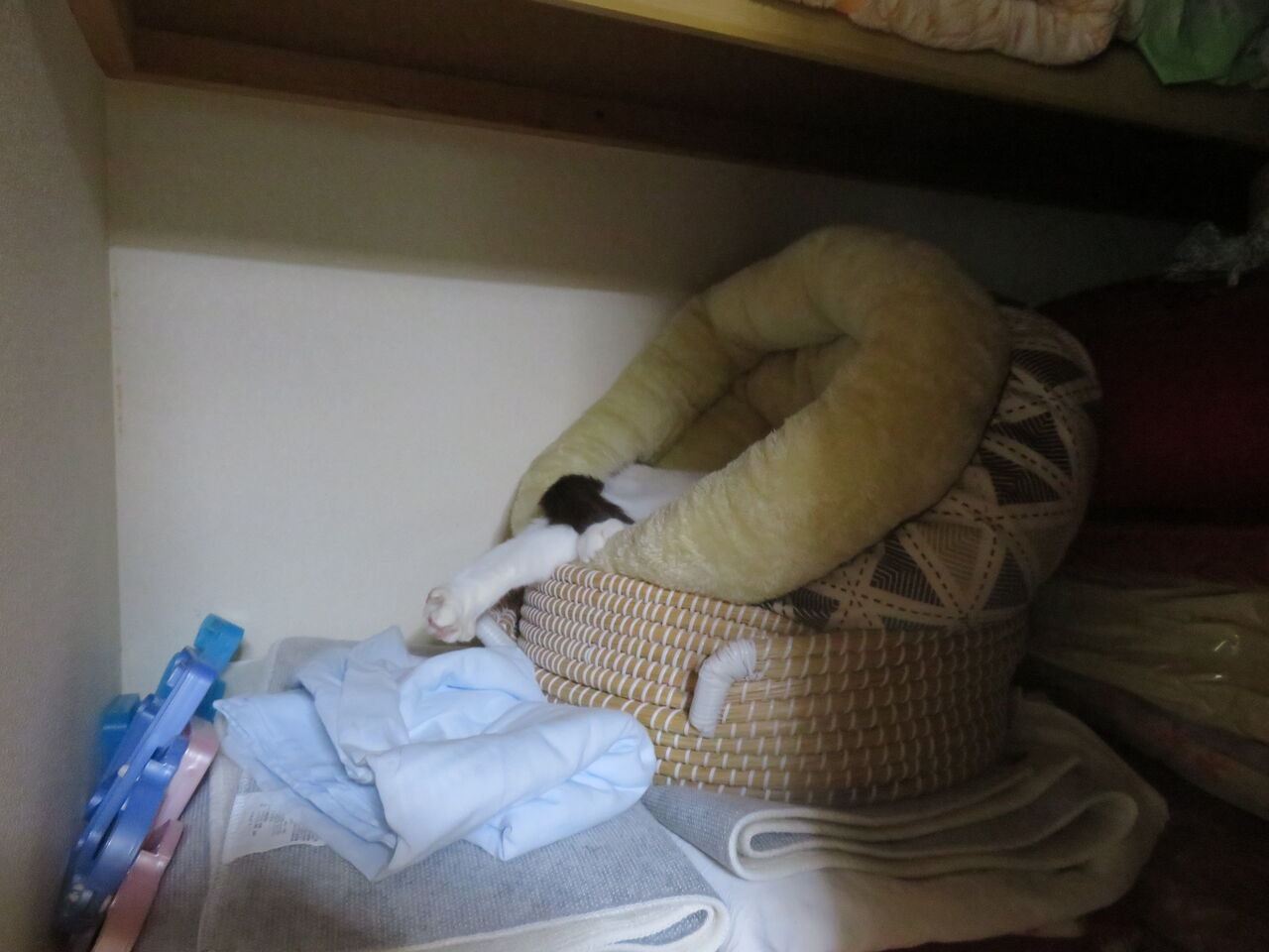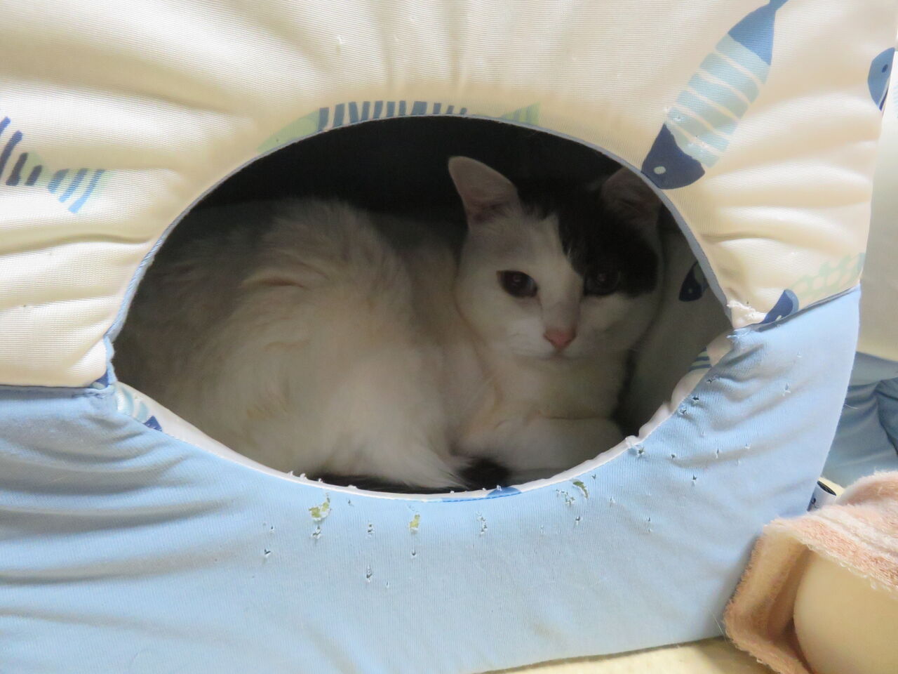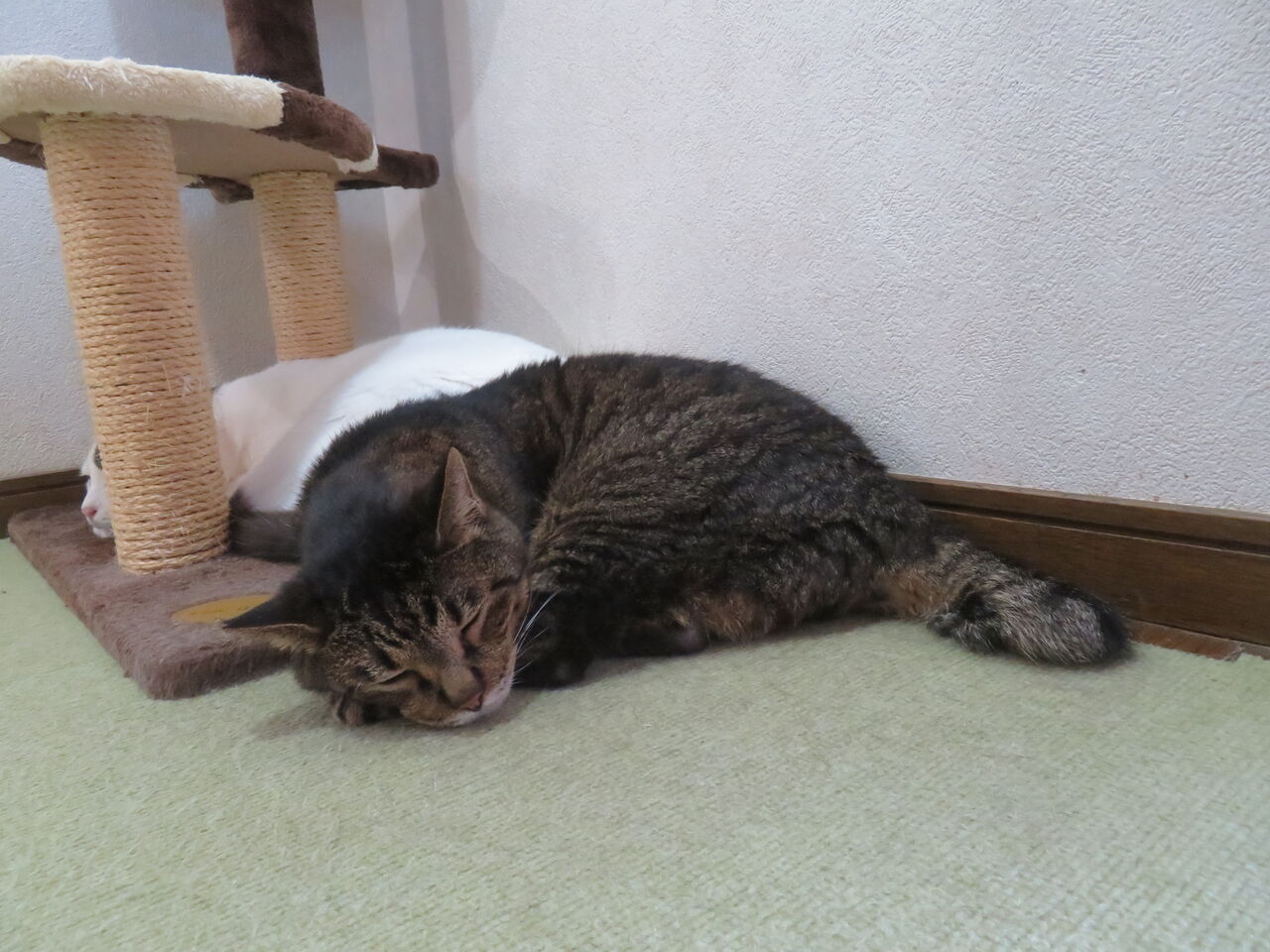 タワー下のボックスの中で寝たりと、こんな感じで過ごせています