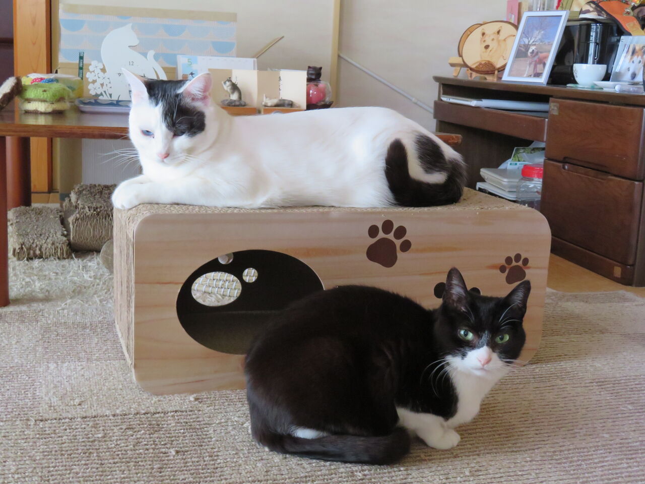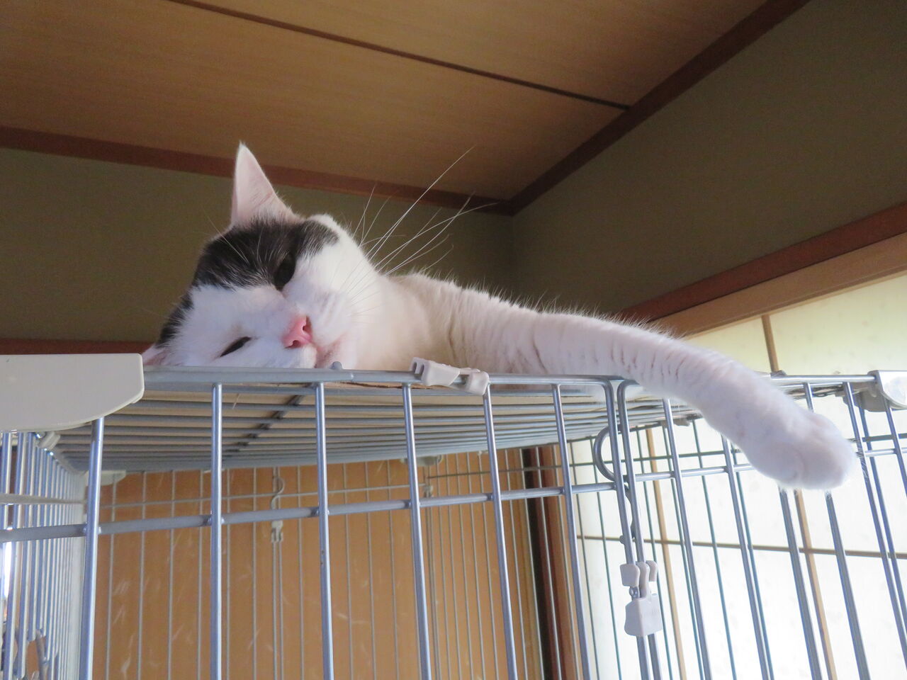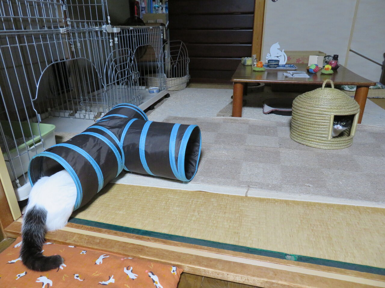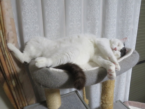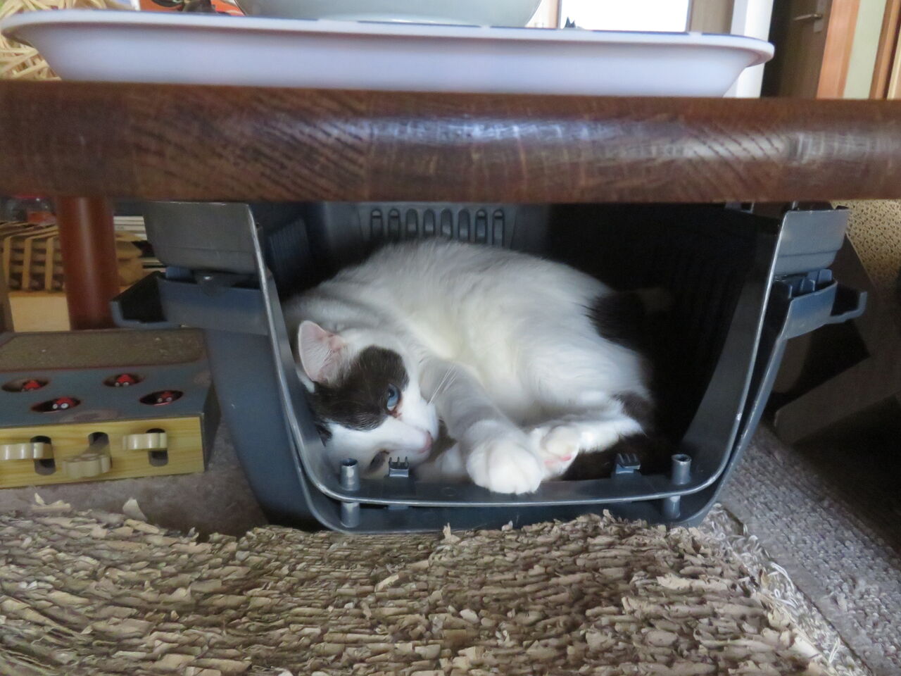 タワー下のボックスの中で寝たりと、こんな感じで過ごせています
