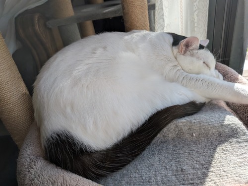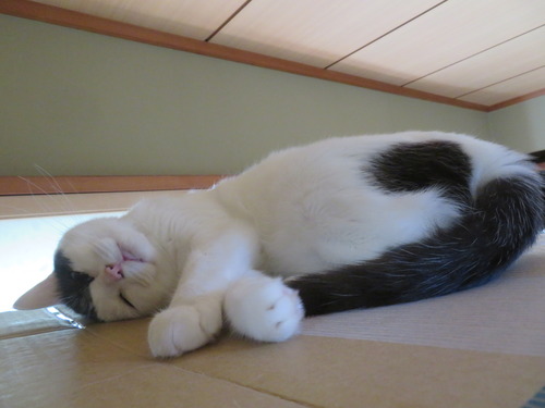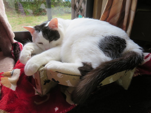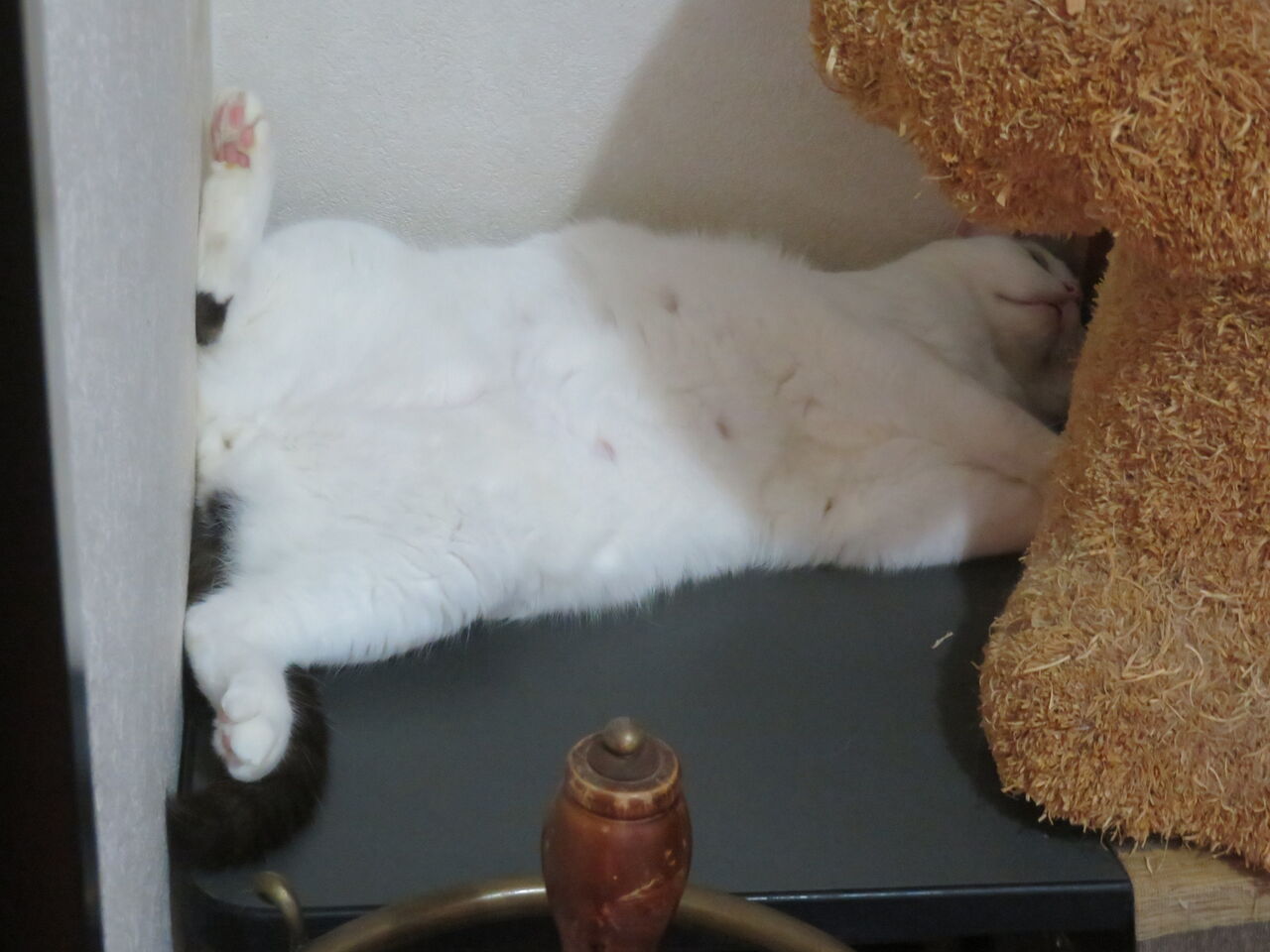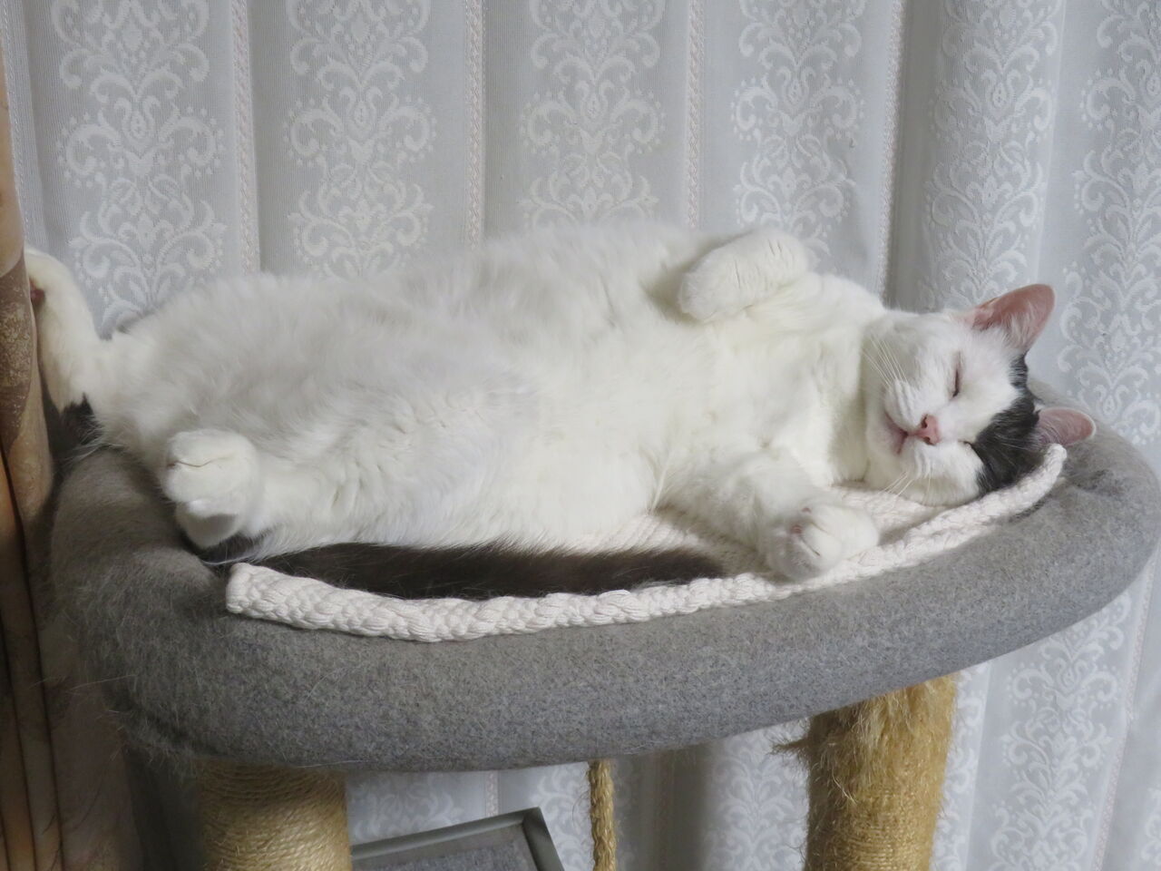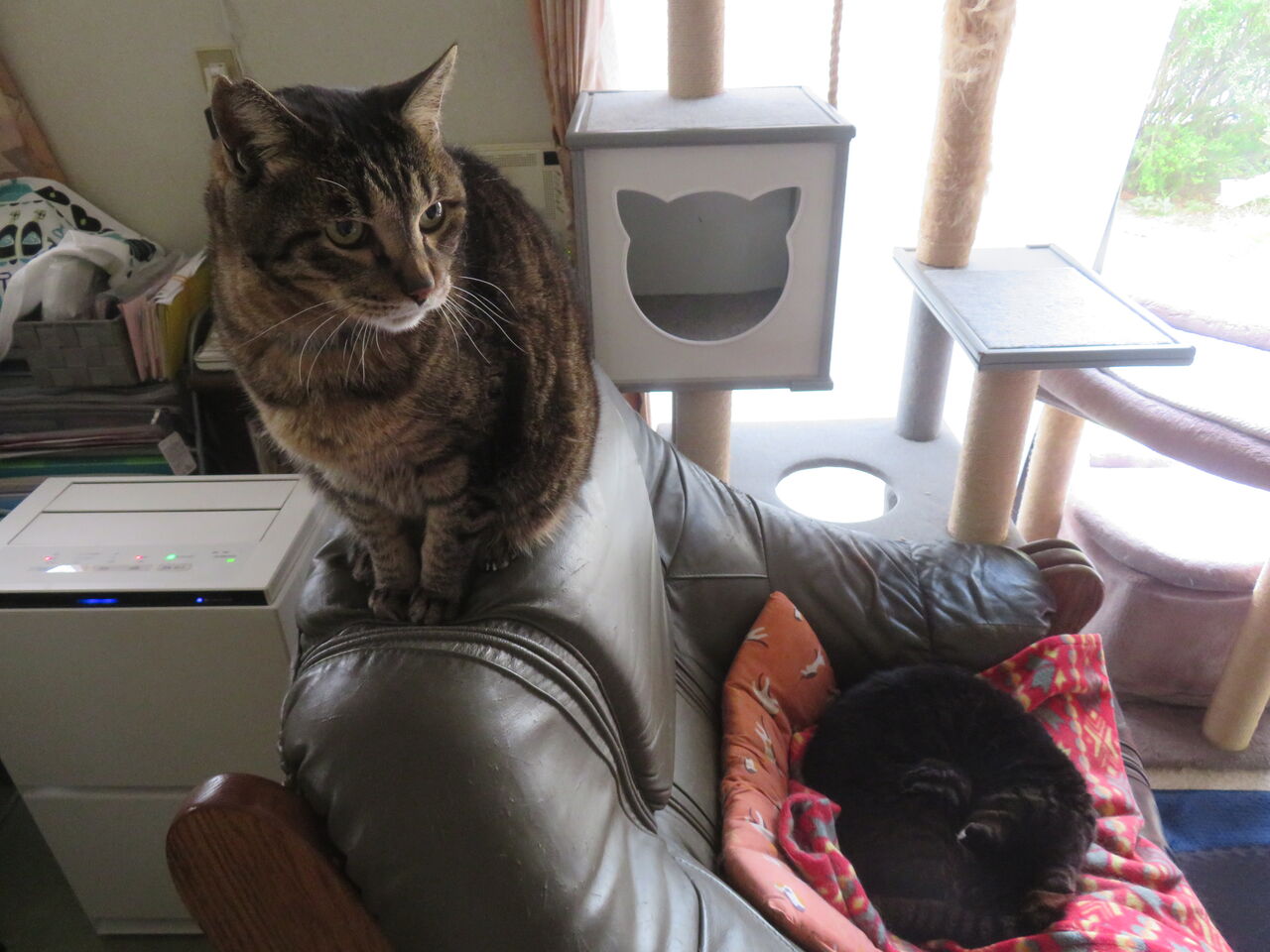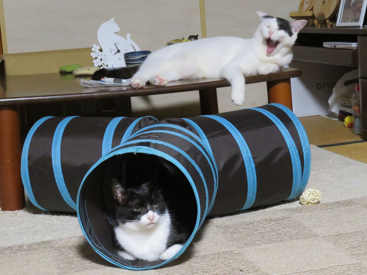 タワー下のボックスの中で寝たりと、こんな感じで過ごせています