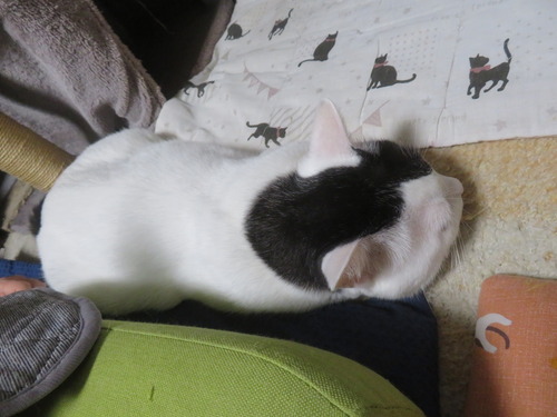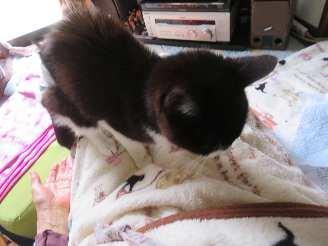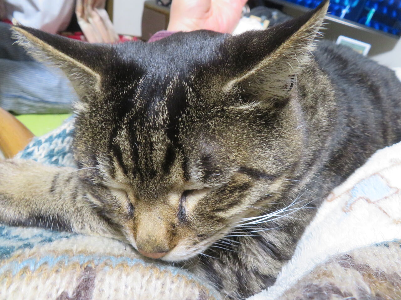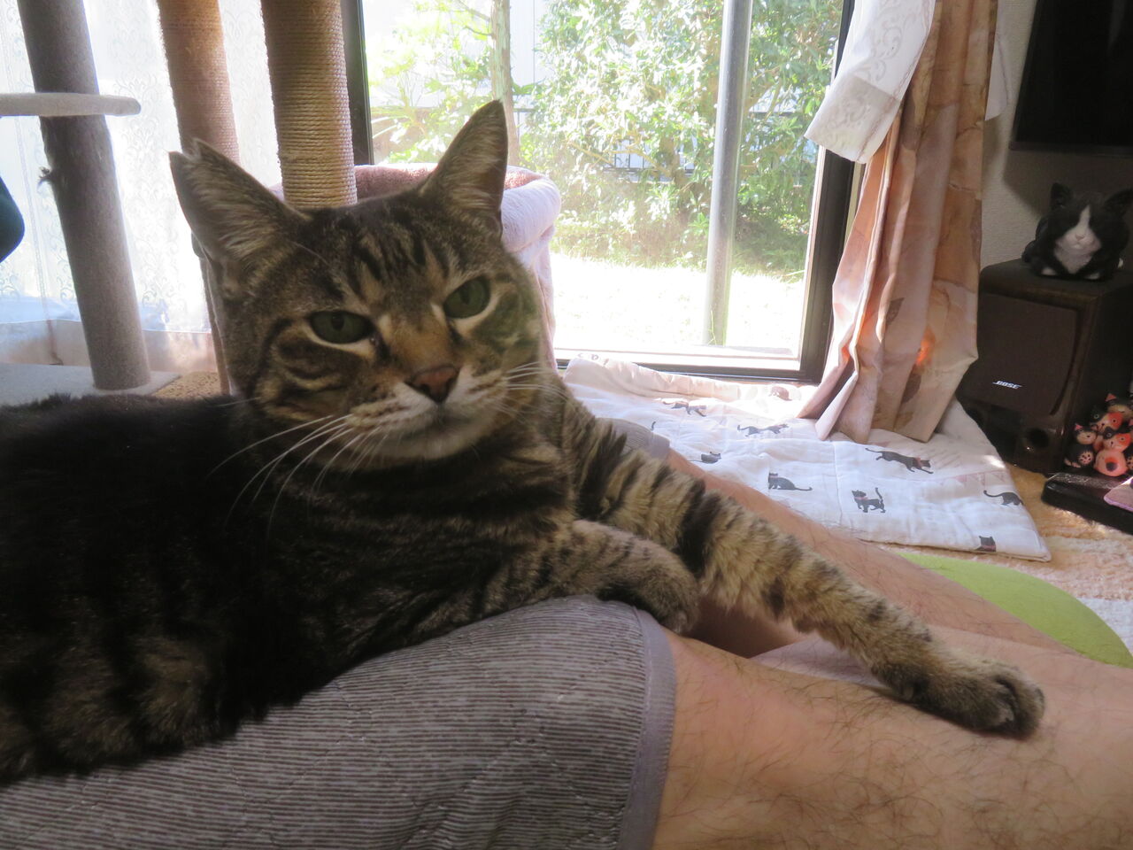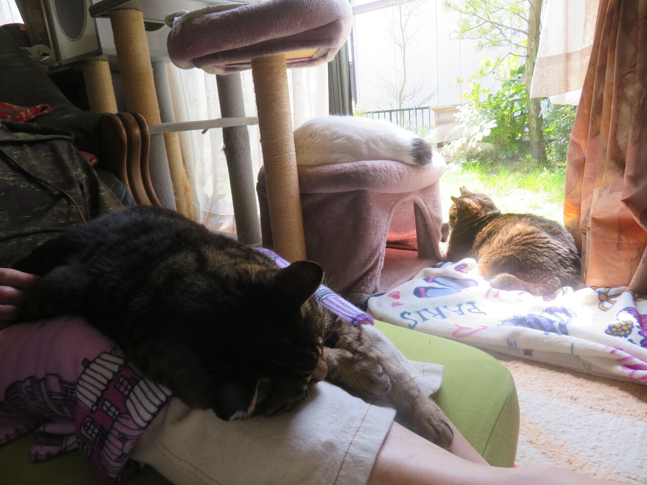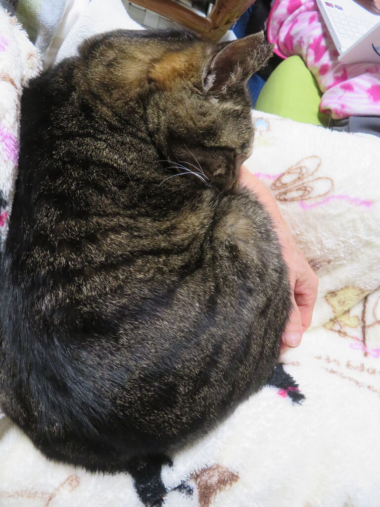 少し前にお母ちゃんの傍に来たので膝の上に乗せてみると、いつもなら少し居て下りてしまうのですが、この時は1時間位は居てくれたかな
