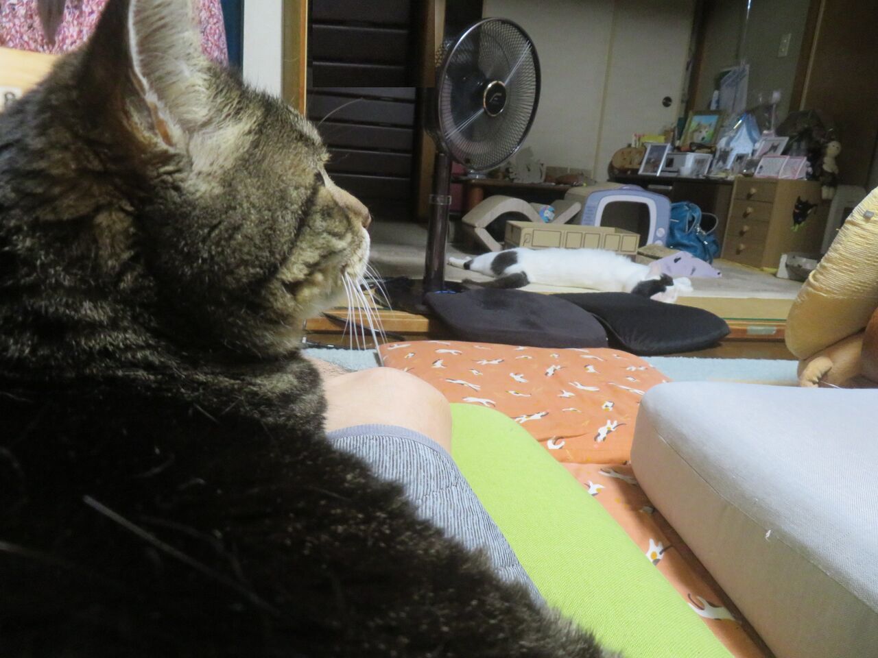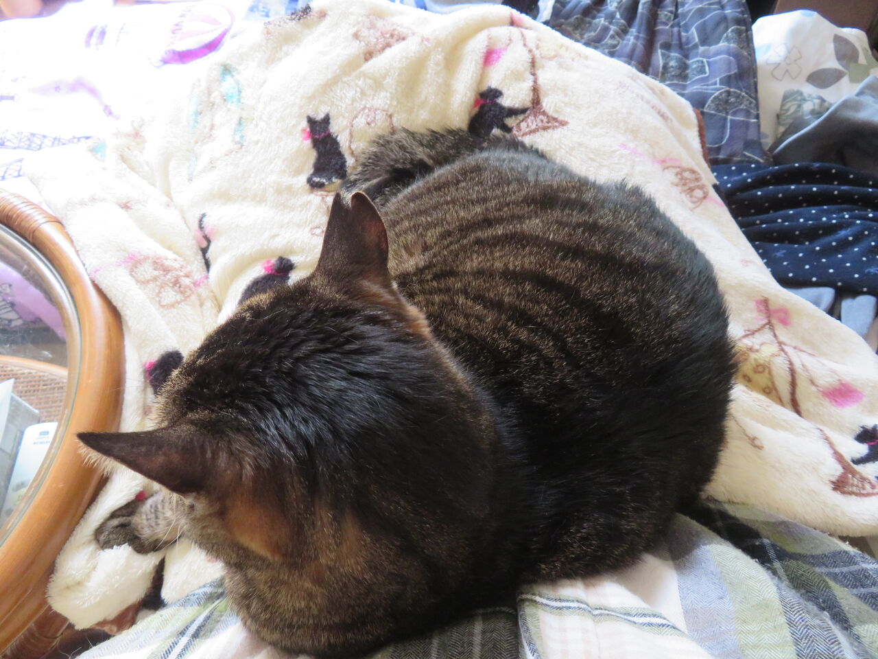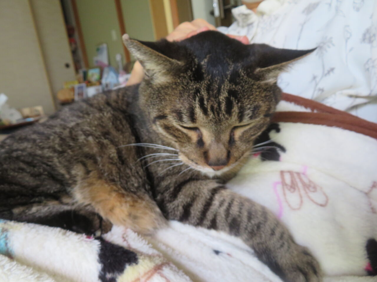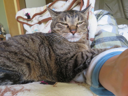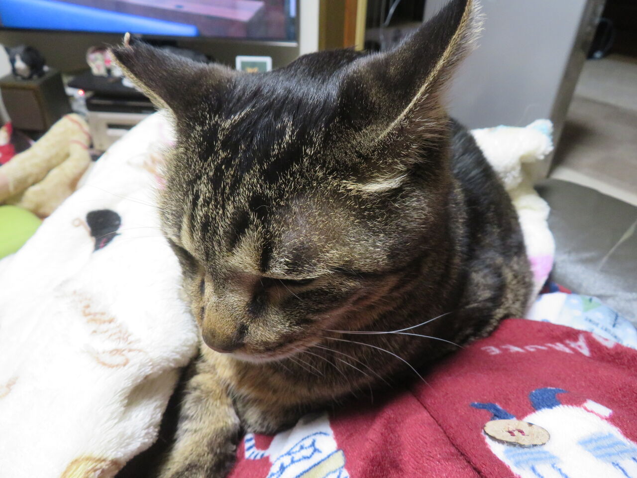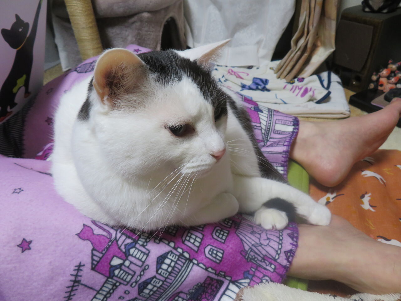 少し前にお母ちゃんの傍に来たので膝の上に乗せてみると、いつもなら少し居て下りてしまうのですが、この時は1時間位は居てくれたかな