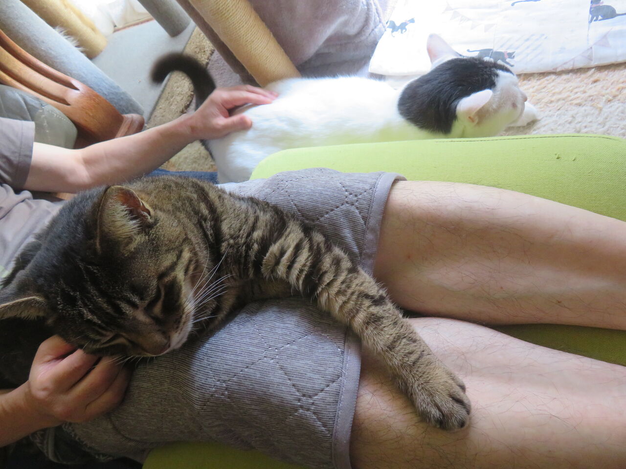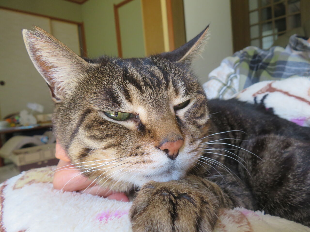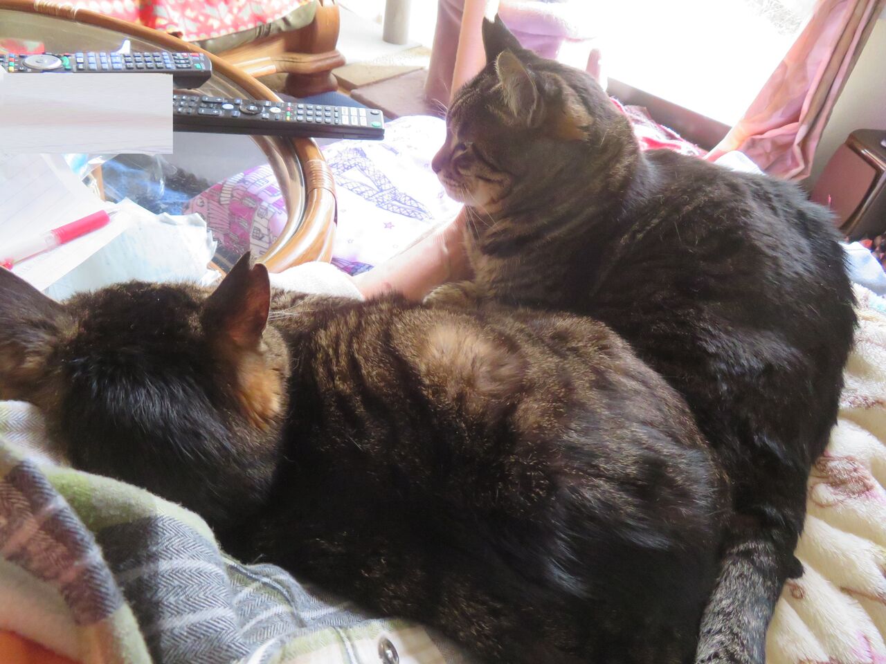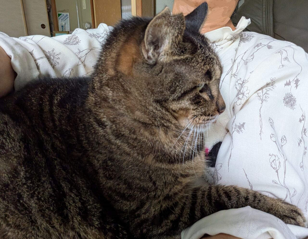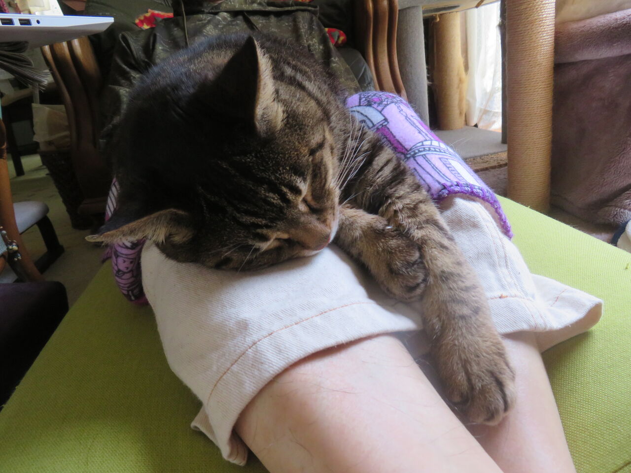 少し前にお母ちゃんの傍に来たので膝の上に乗せてみると、いつもなら少し居て下りてしまうのですが、この時は1時間位は居てくれたかな