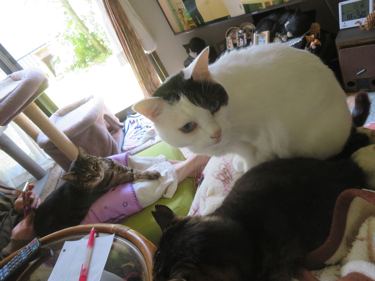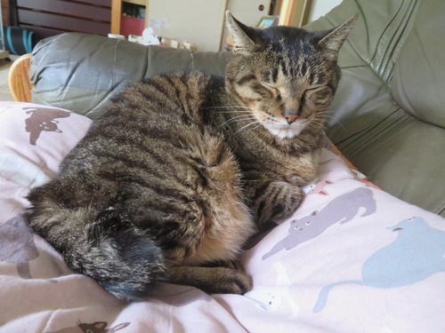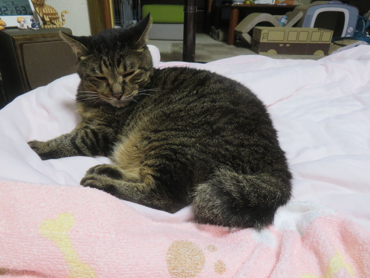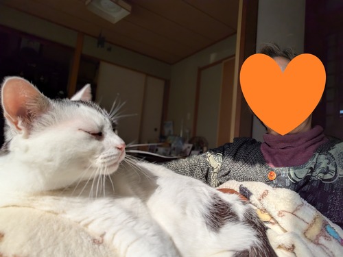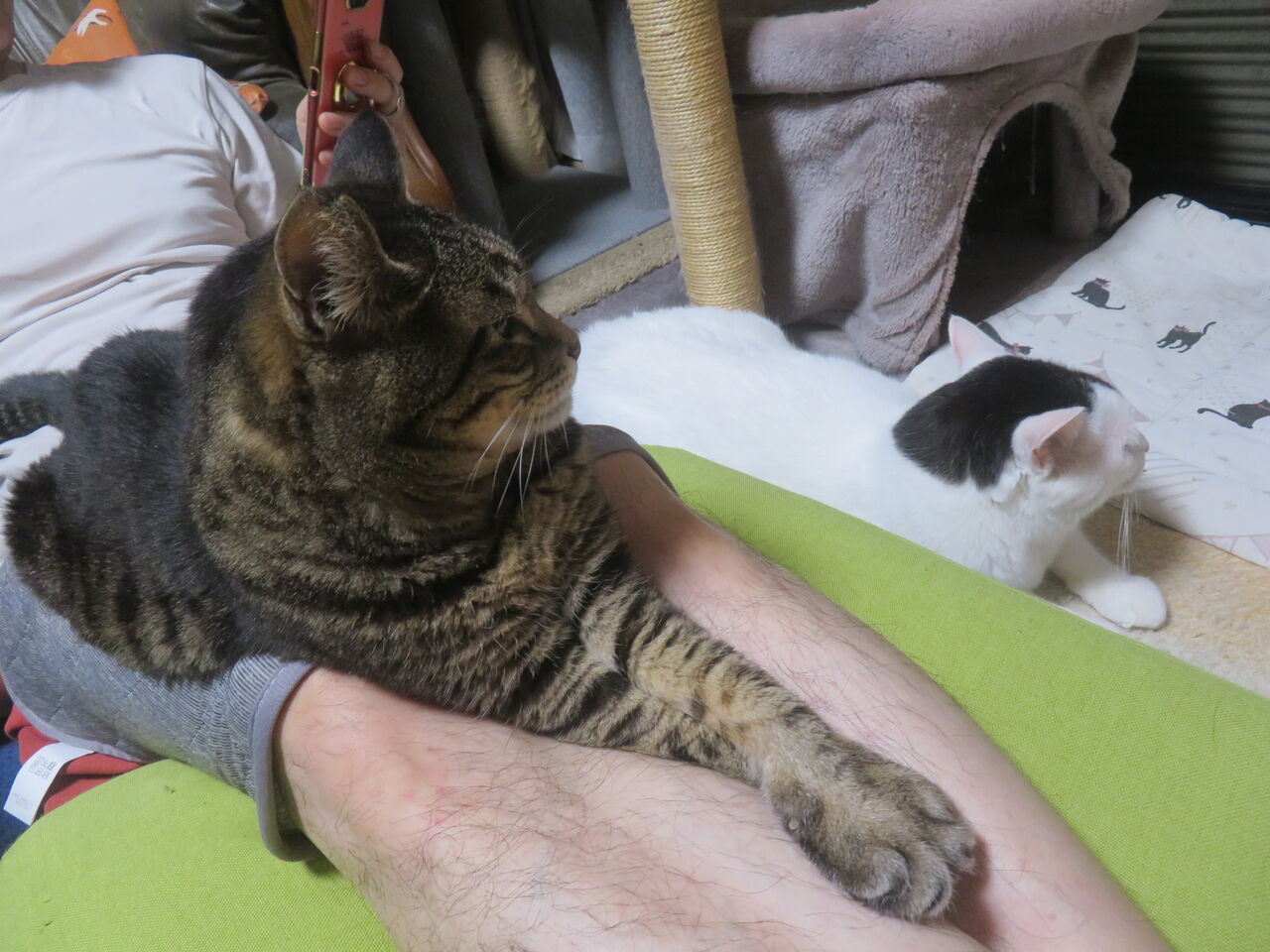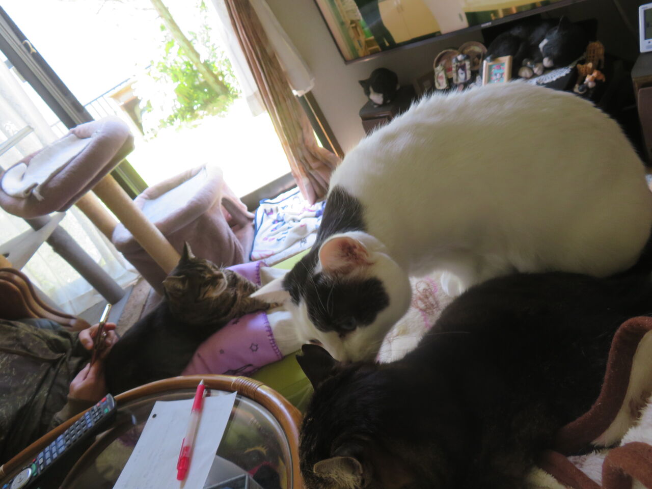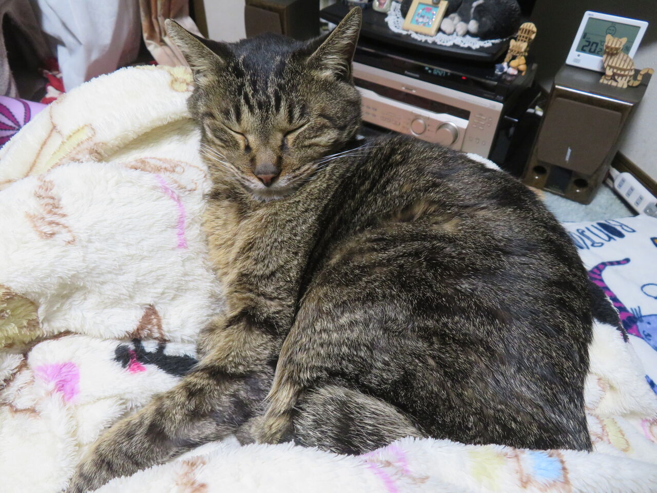 少し前にお母ちゃんの傍に来たので膝の上に乗せてみると、いつもなら少し居て下りてしまうのですが、この時は1時間位は居てくれたかな