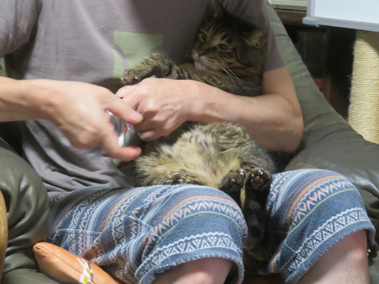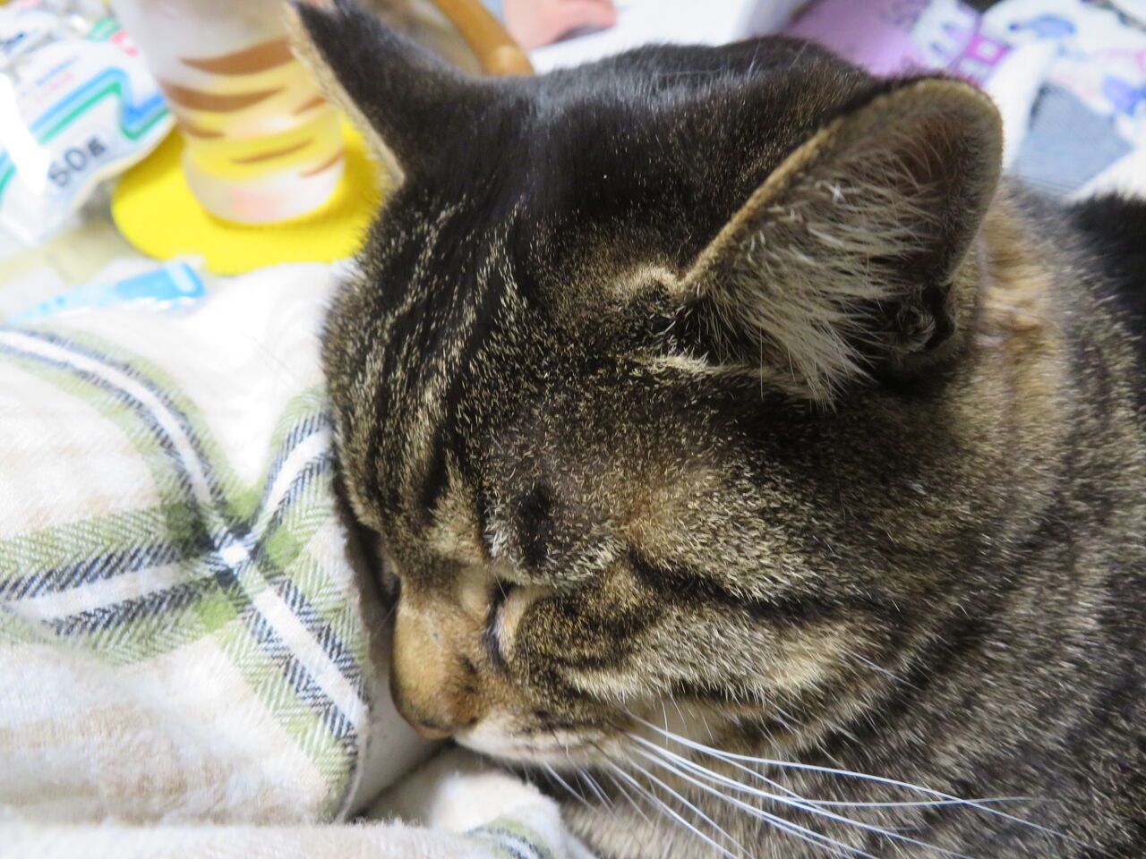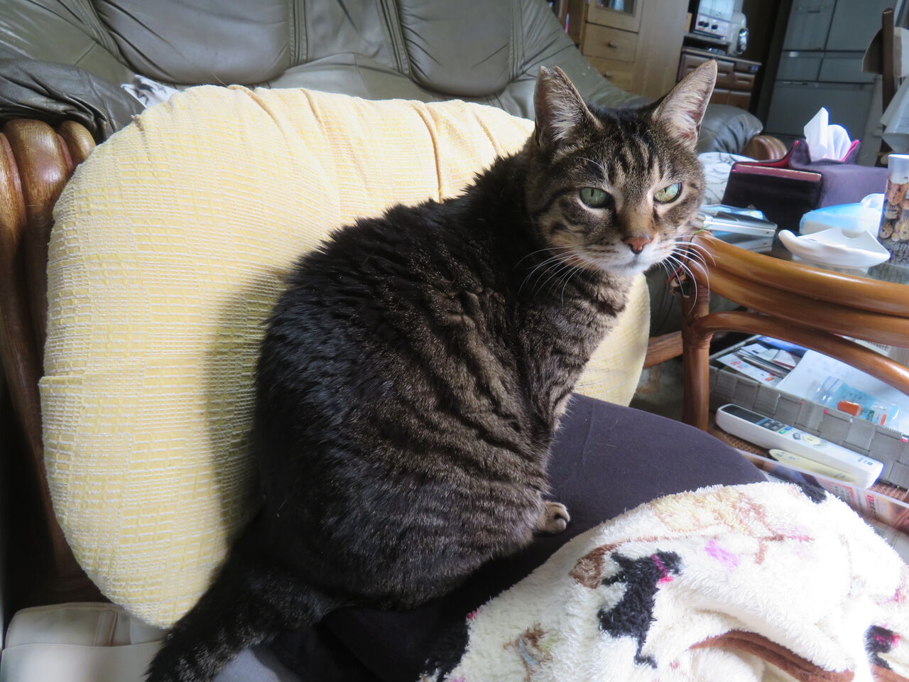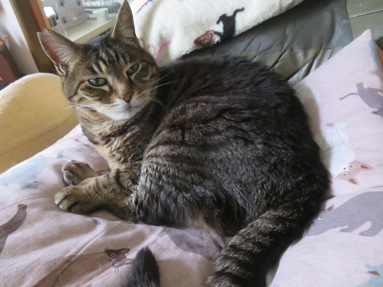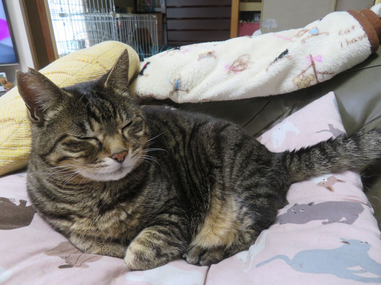 少し前にお母ちゃんの傍に来たので膝の上に乗せてみると、いつもなら少し居て下りてしまうのですが、この時は1時間位は居てくれたかな