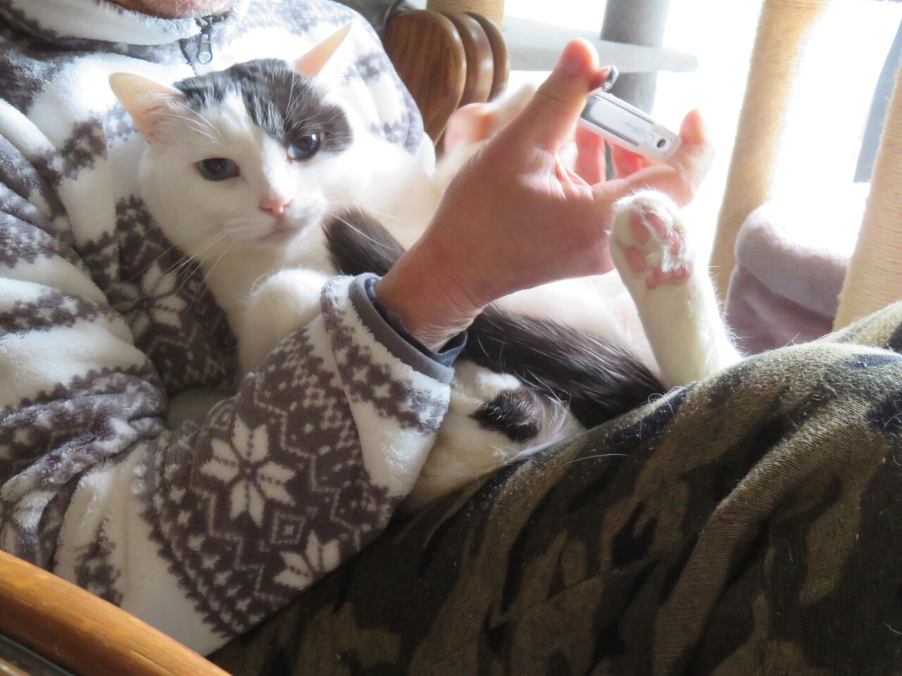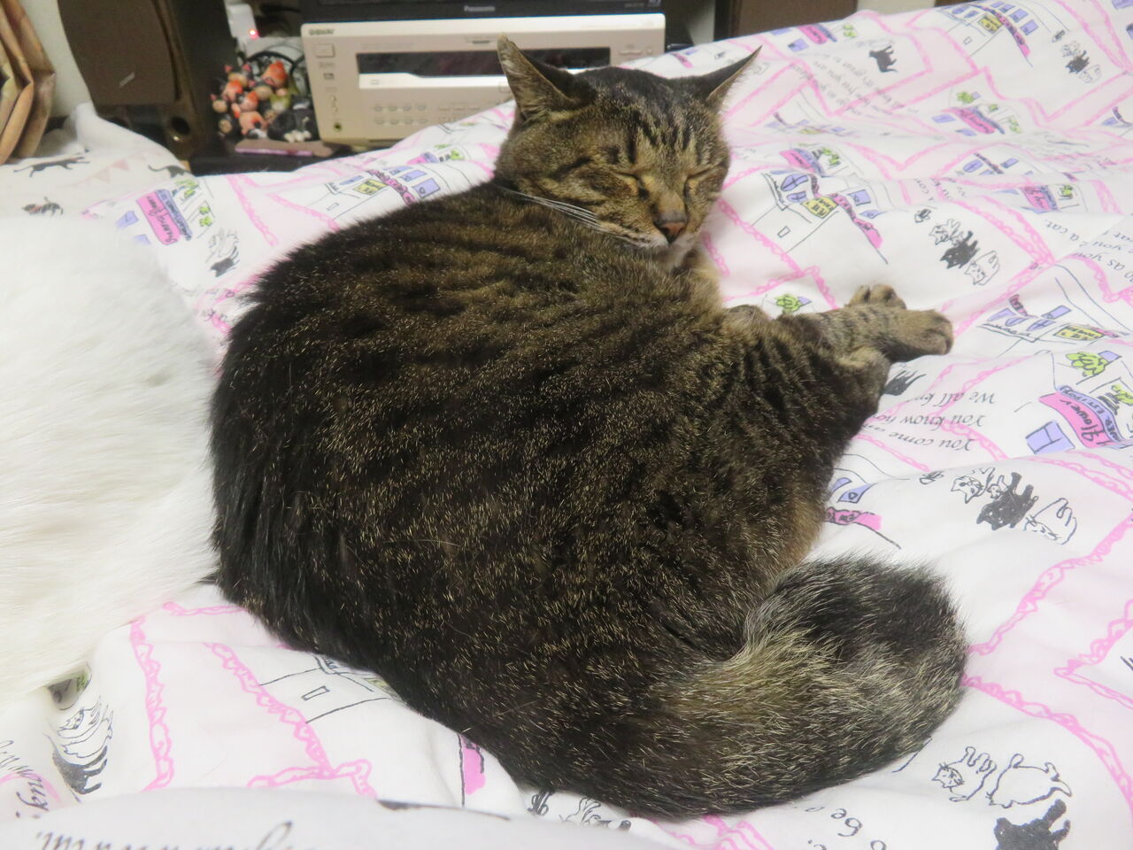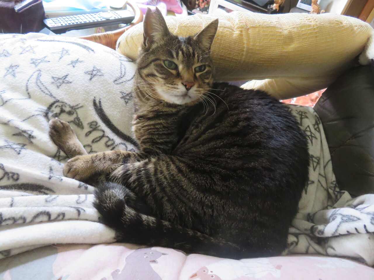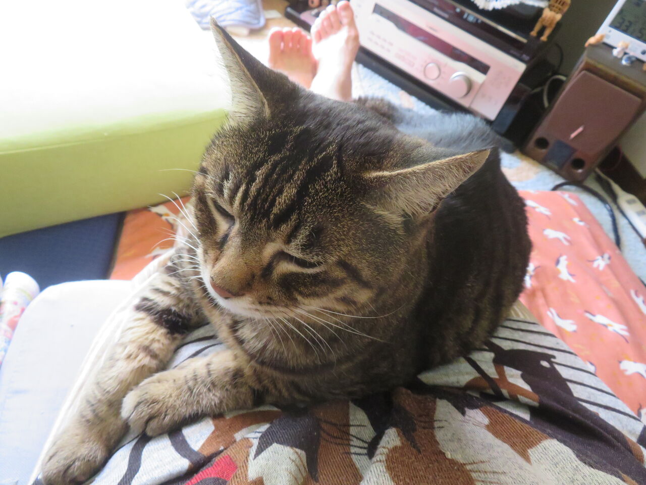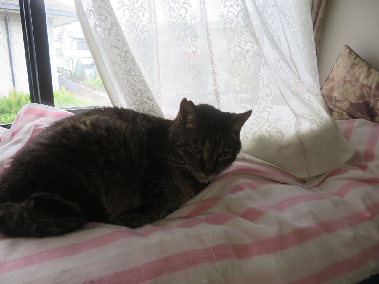 少し前にお母ちゃんの傍に来たので膝の上に乗せてみると、いつもなら少し居て下りてしまうのですが、この時は1時間位は居てくれたかな