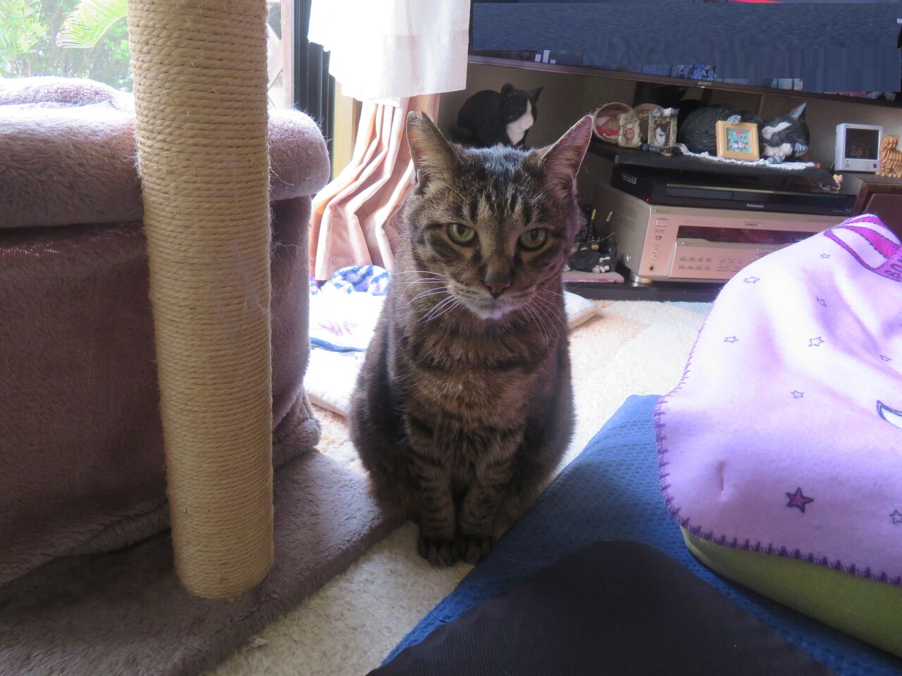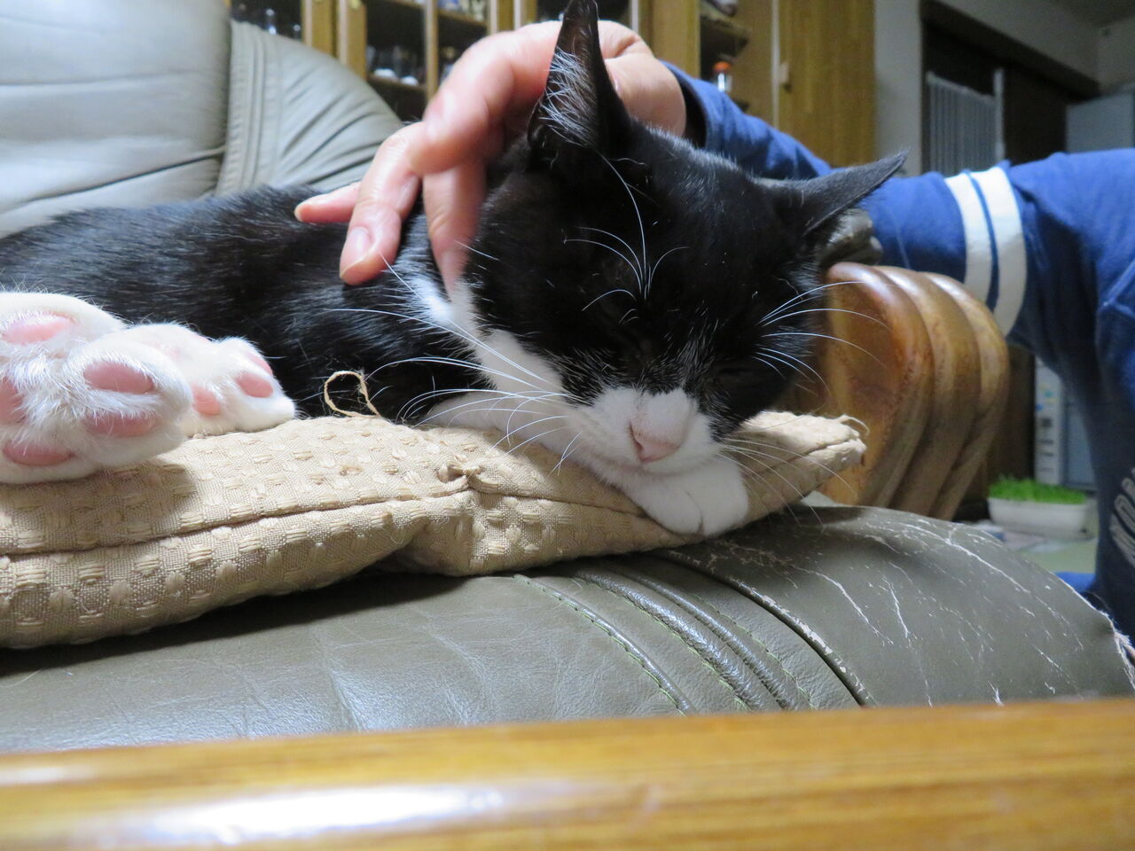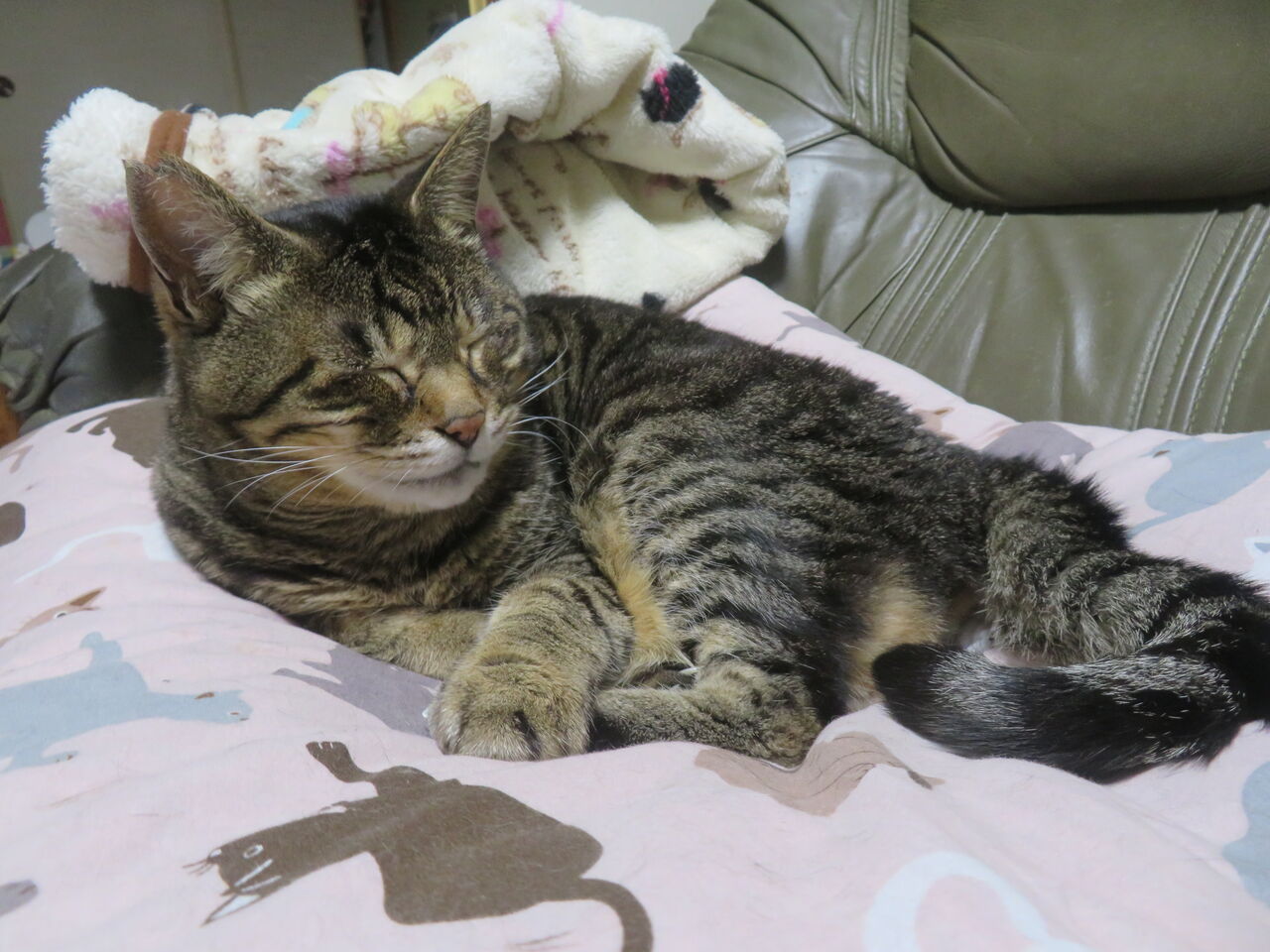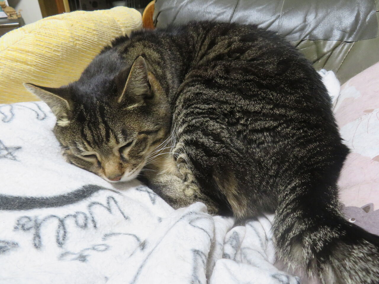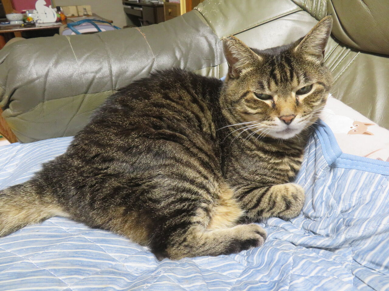 少し前にお母ちゃんの傍に来たので膝の上に乗せてみると、いつもなら少し居て下りてしまうのですが、この時は1時間位は居てくれたかな