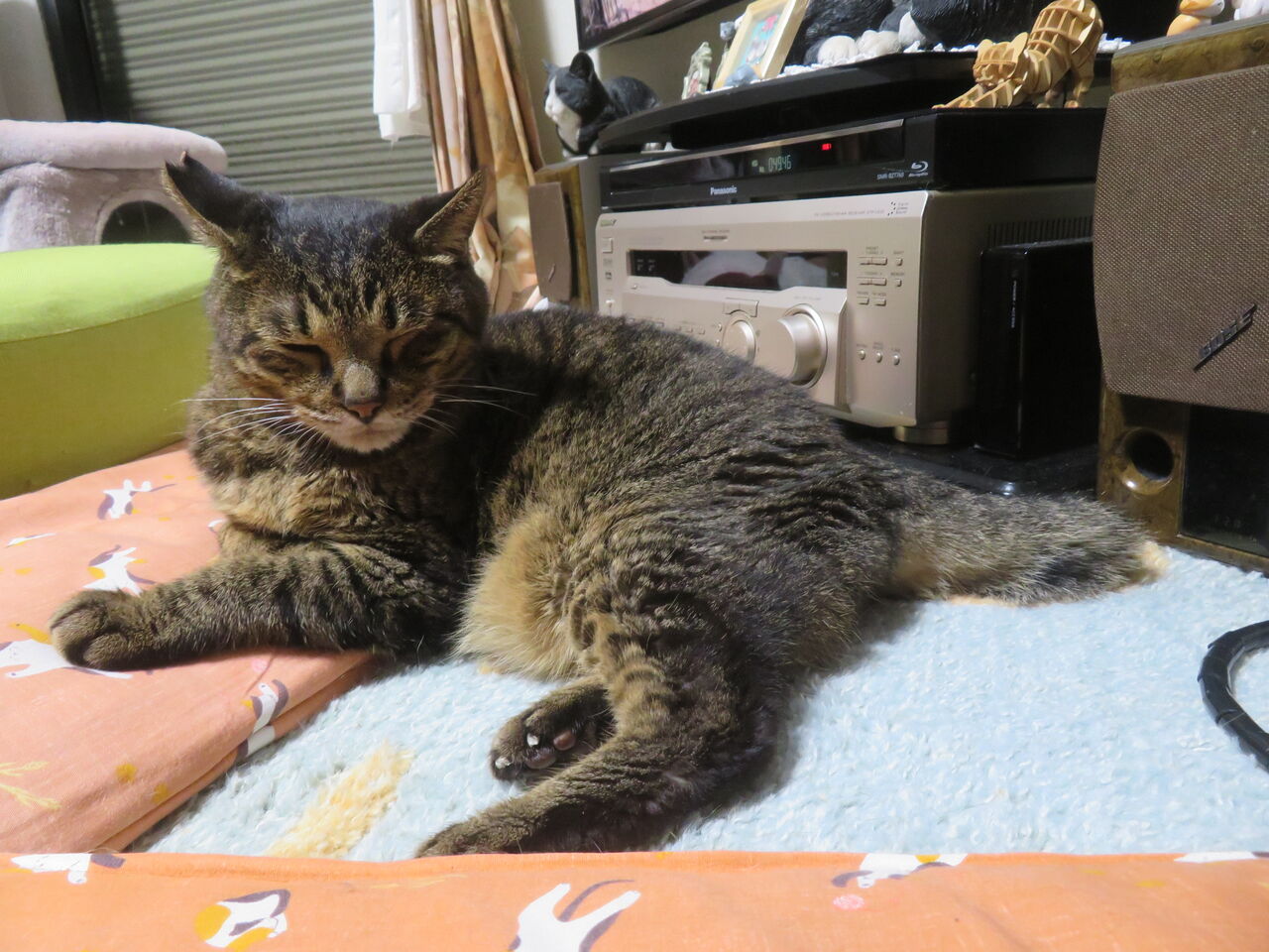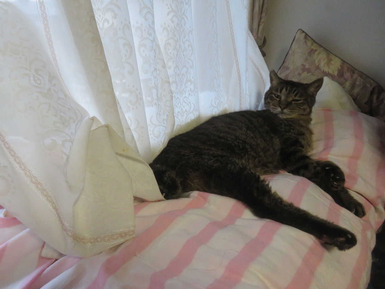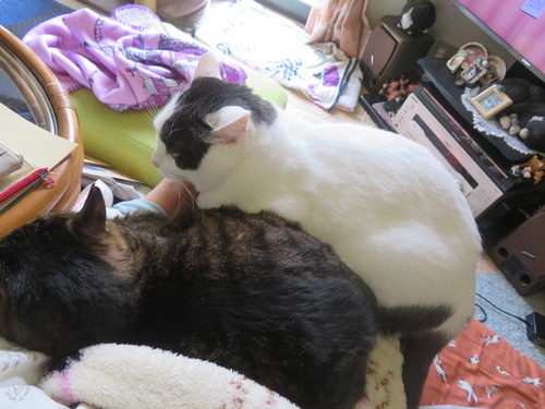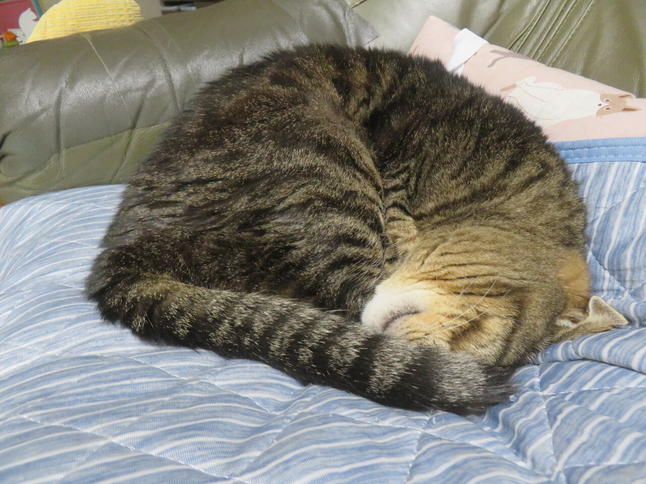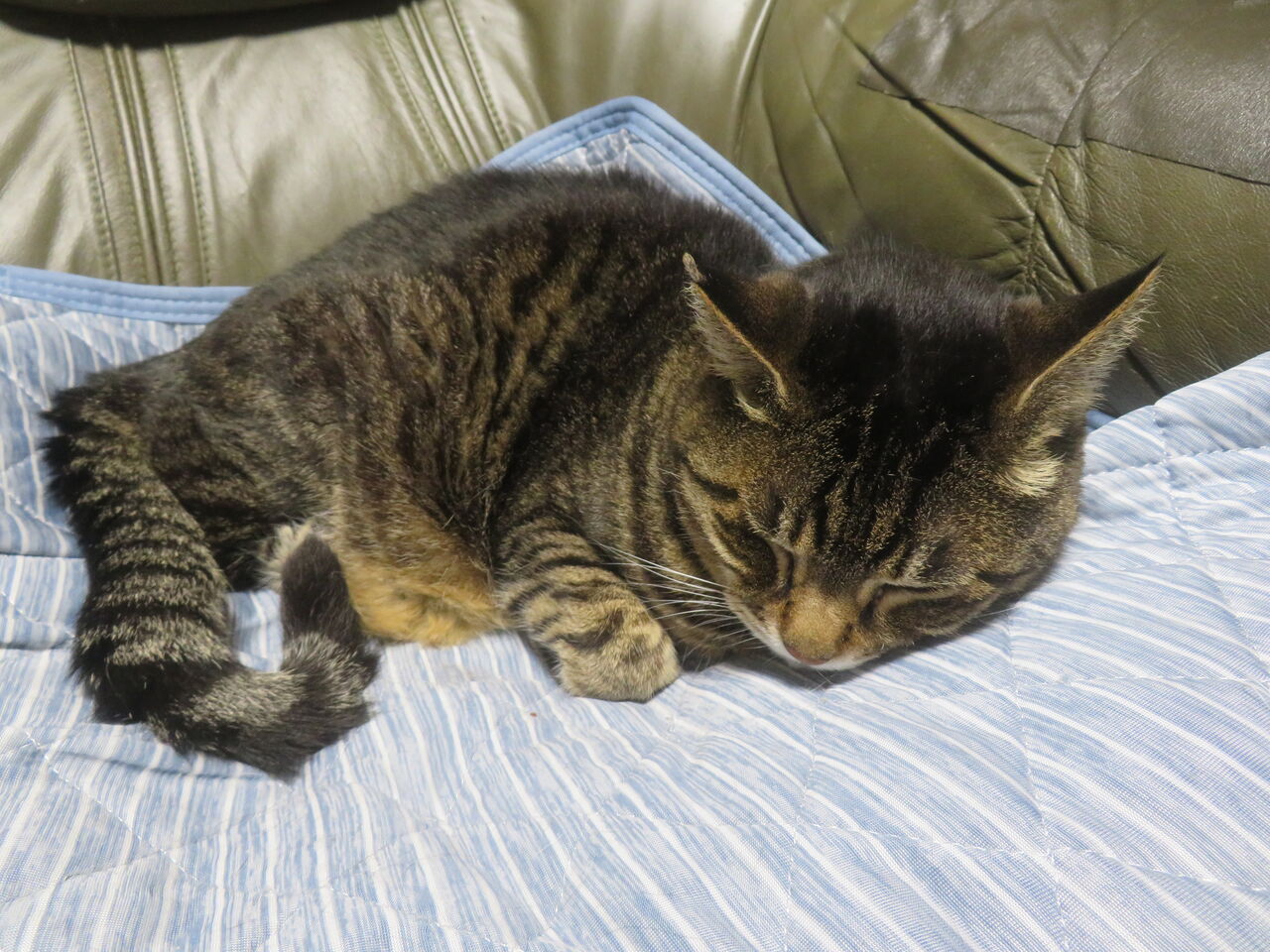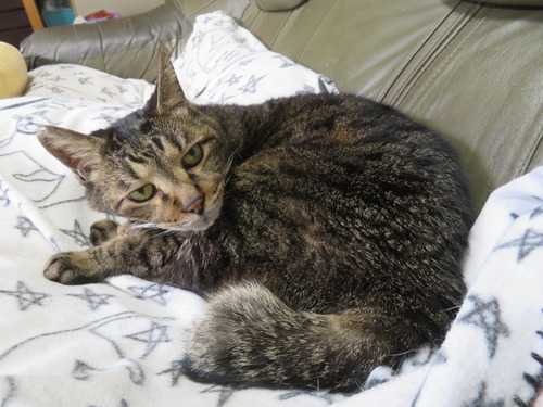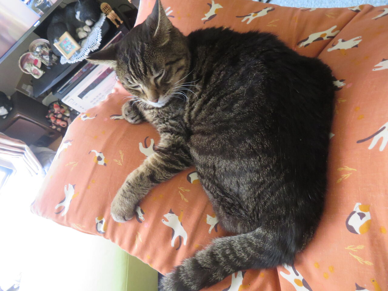 少し前にお母ちゃんの傍に来たので膝の上に乗せてみると、いつもなら少し居て下りてしまうのですが、この時は1時間位は居てくれたかな