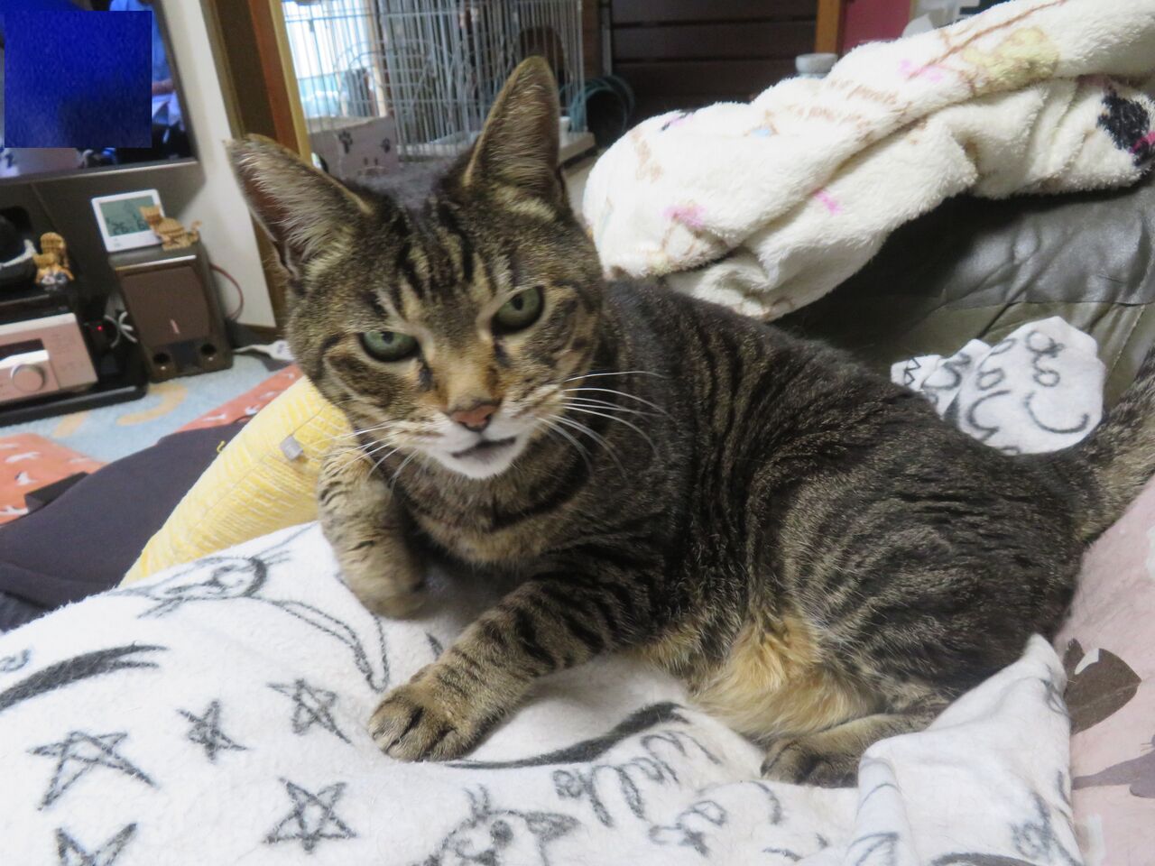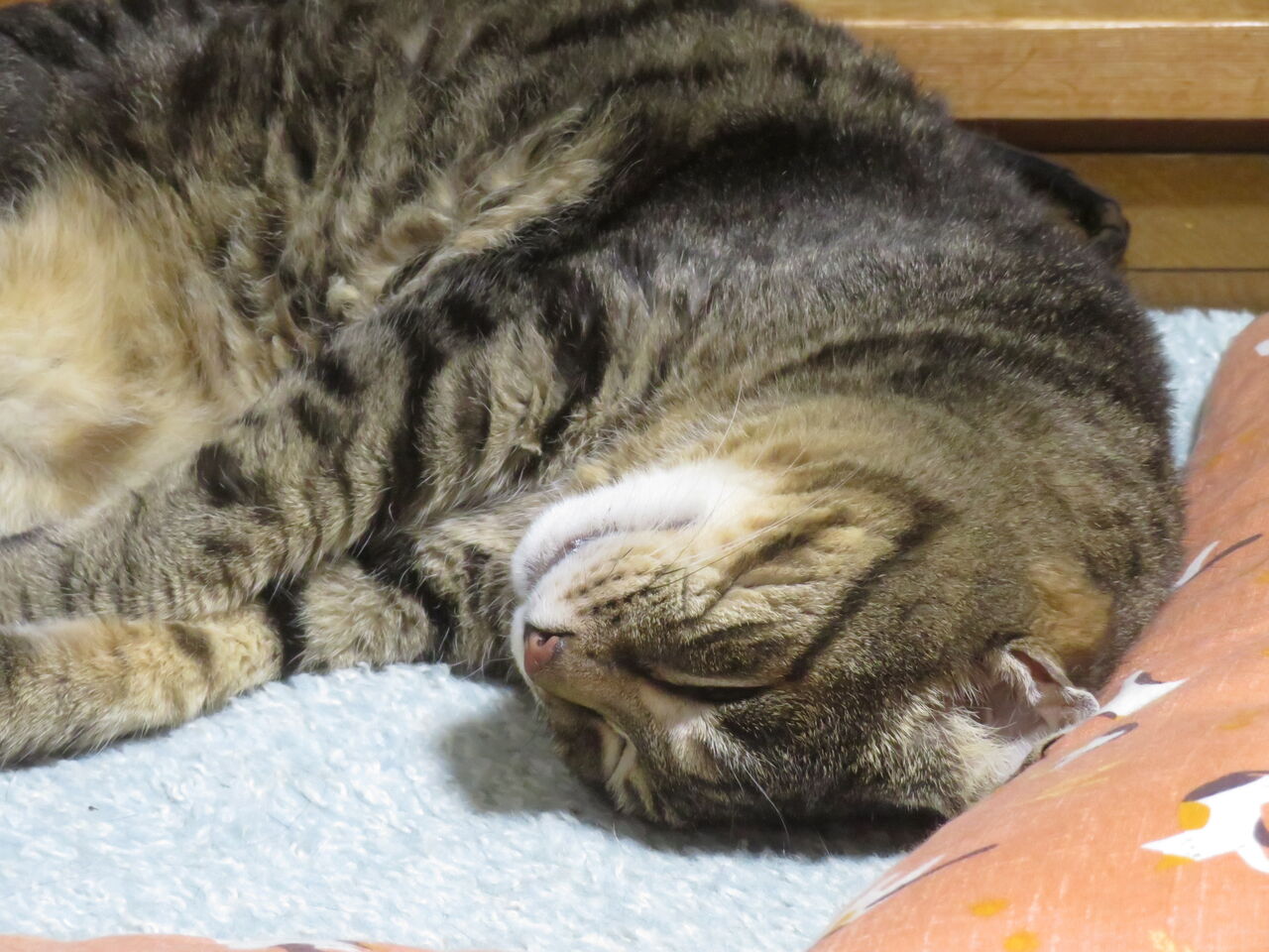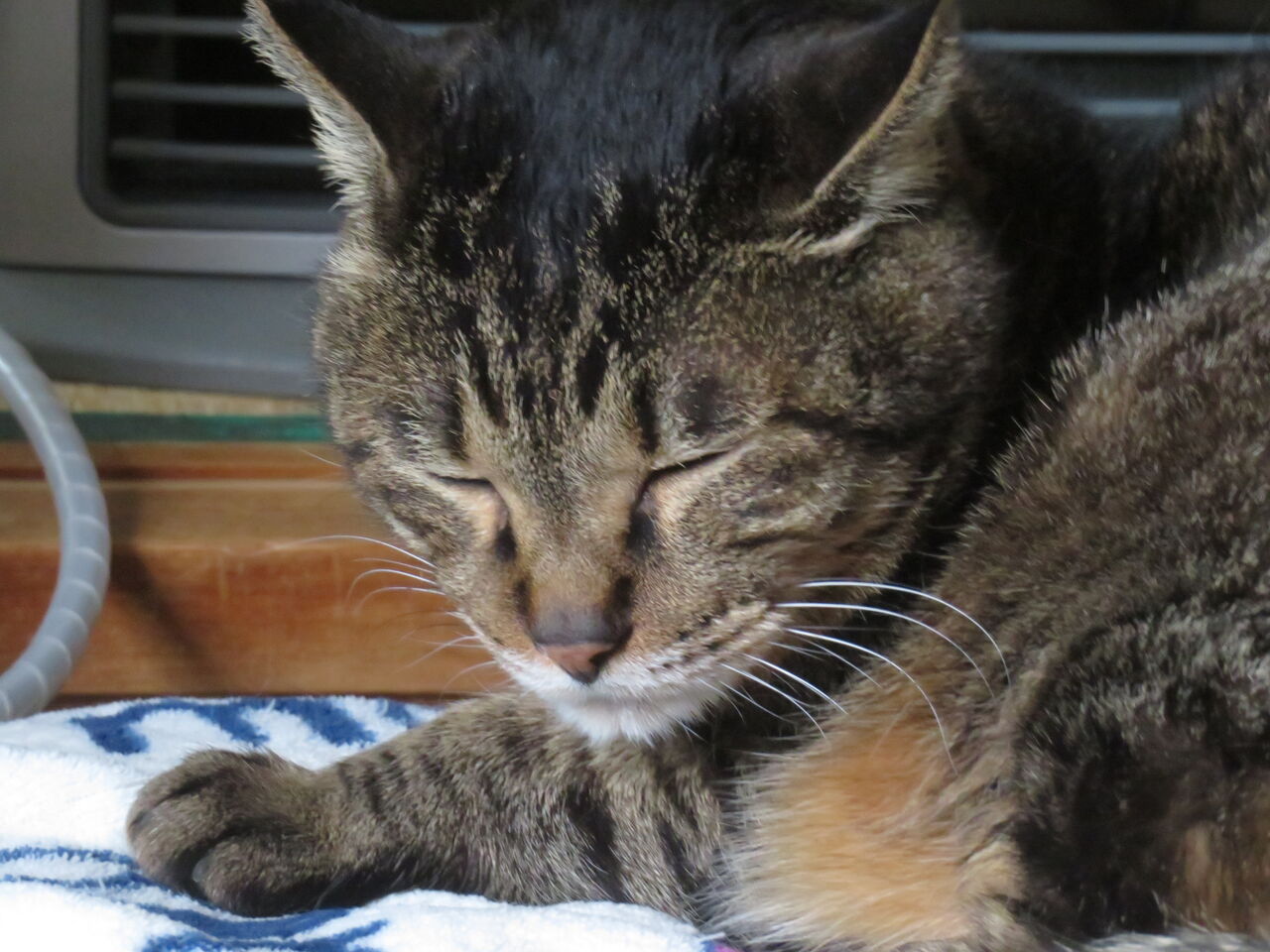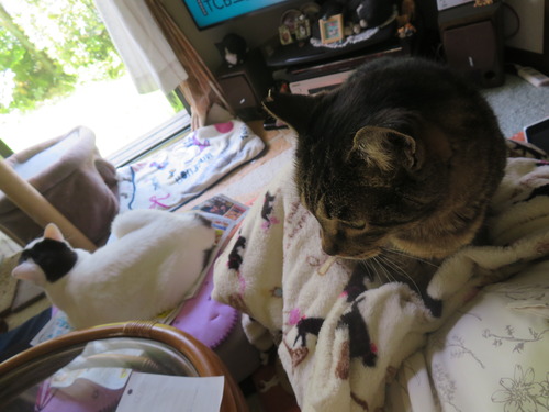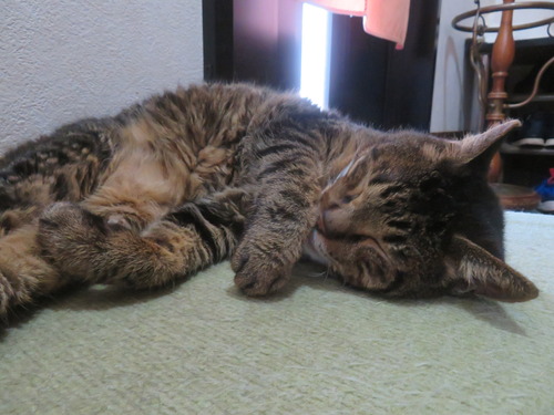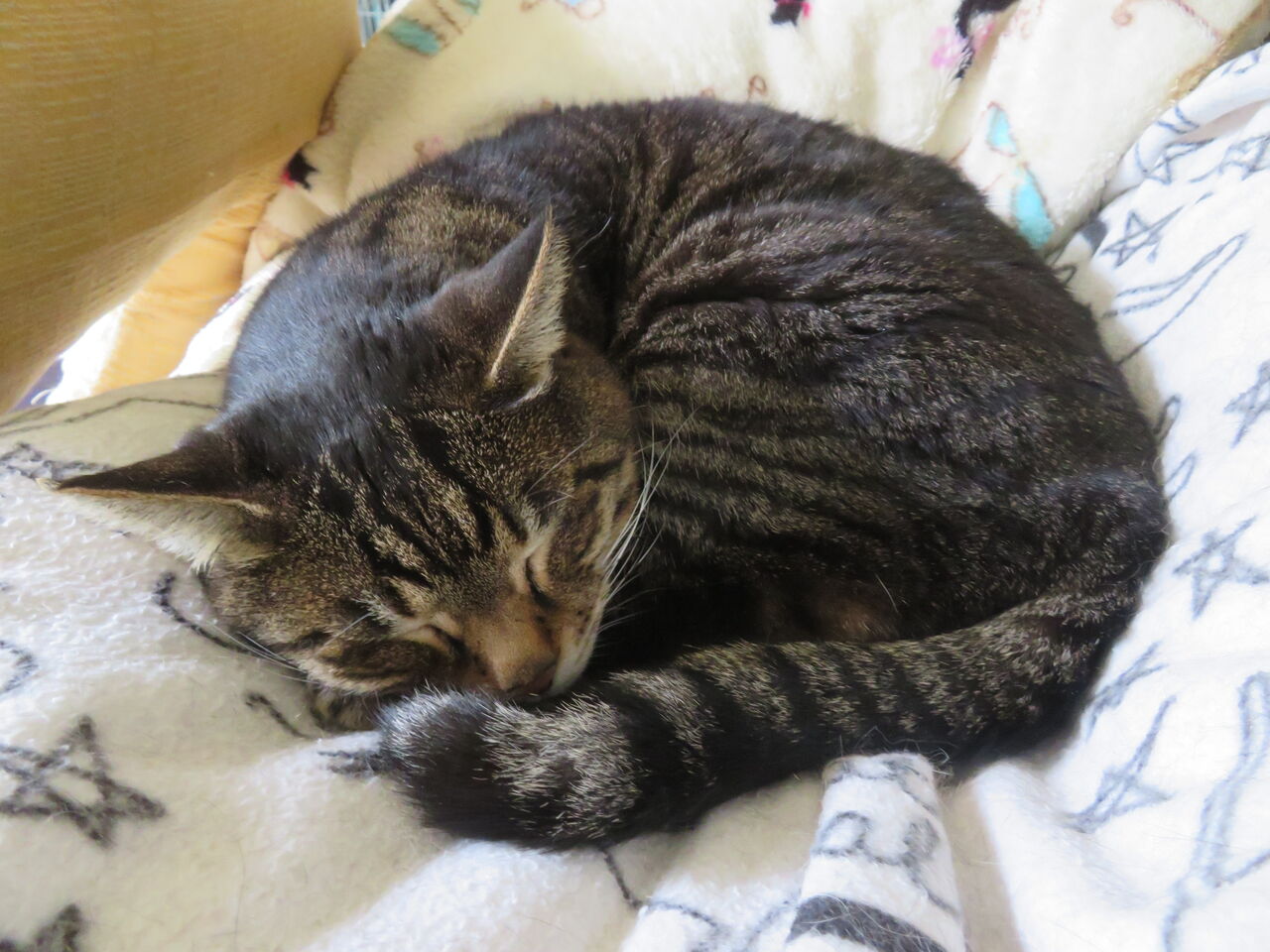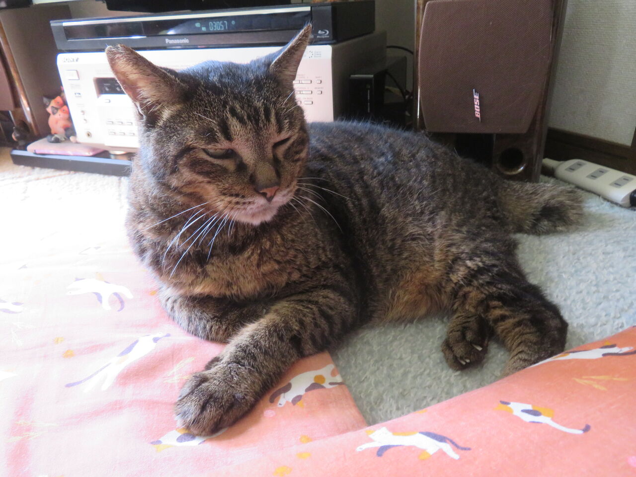 少し前にお母ちゃんの傍に来たので膝の上に乗せてみると、いつもなら少し居て下りてしまうのですが、この時は1時間位は居てくれたかな