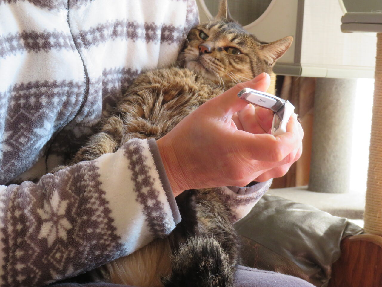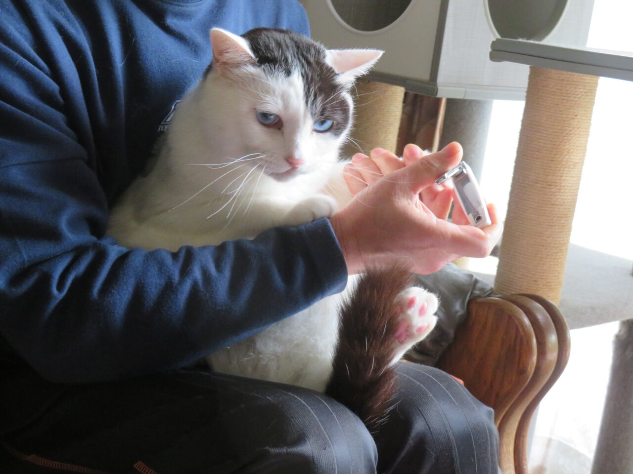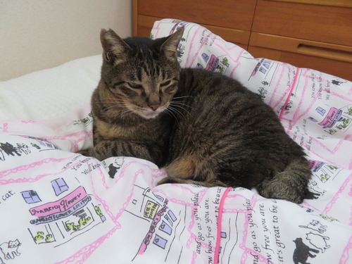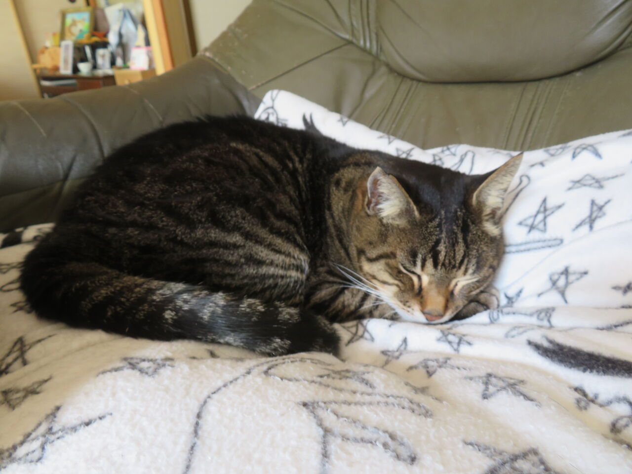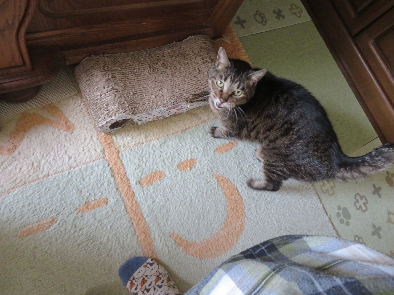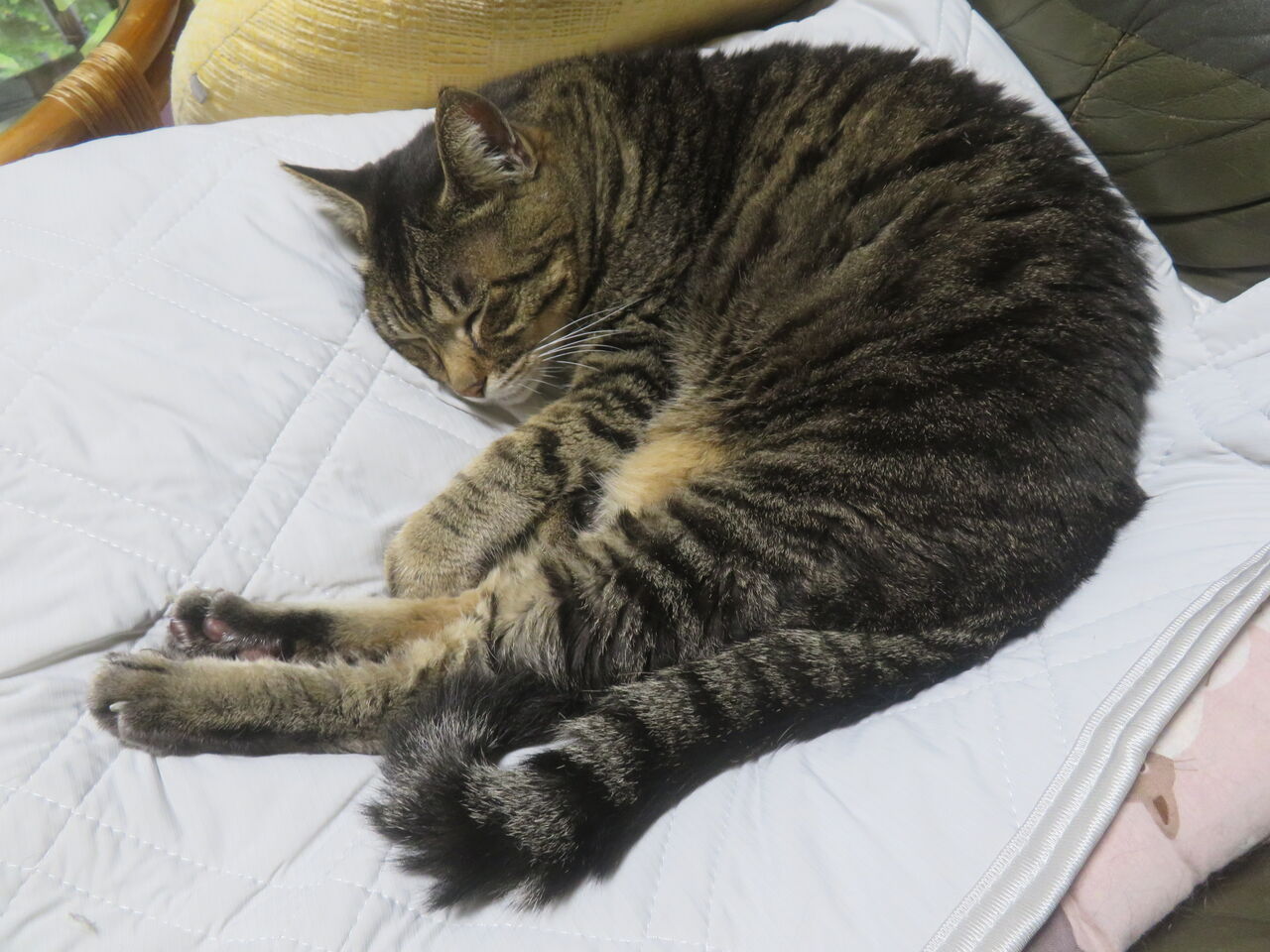 少し前にお母ちゃんの傍に来たので膝の上に乗せてみると、いつもなら少し居て下りてしまうのですが、この時は1時間位は居てくれたかな