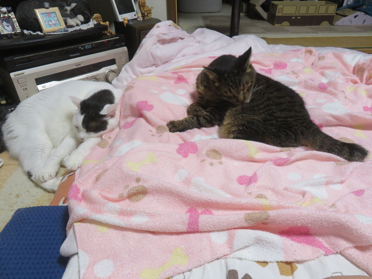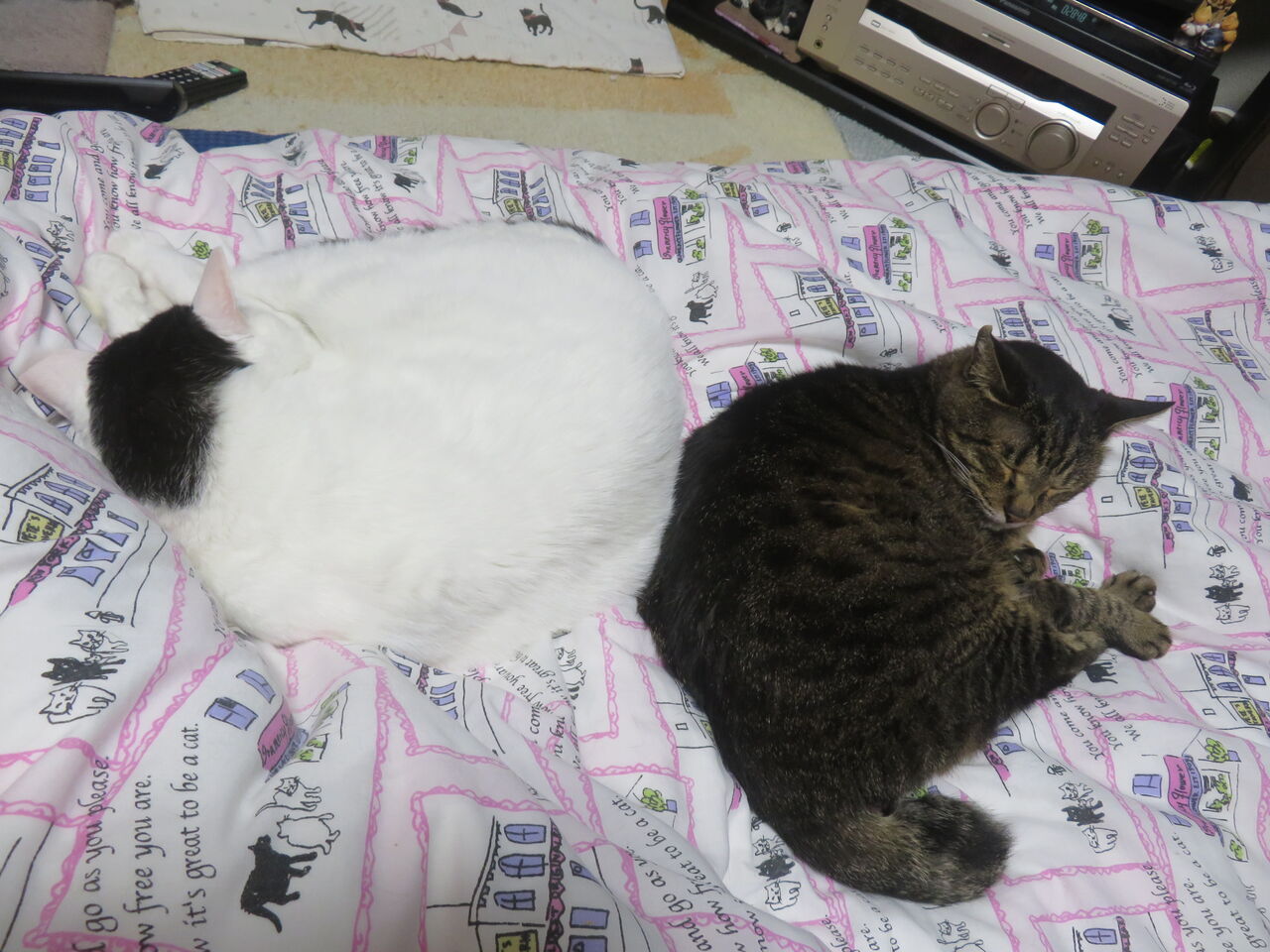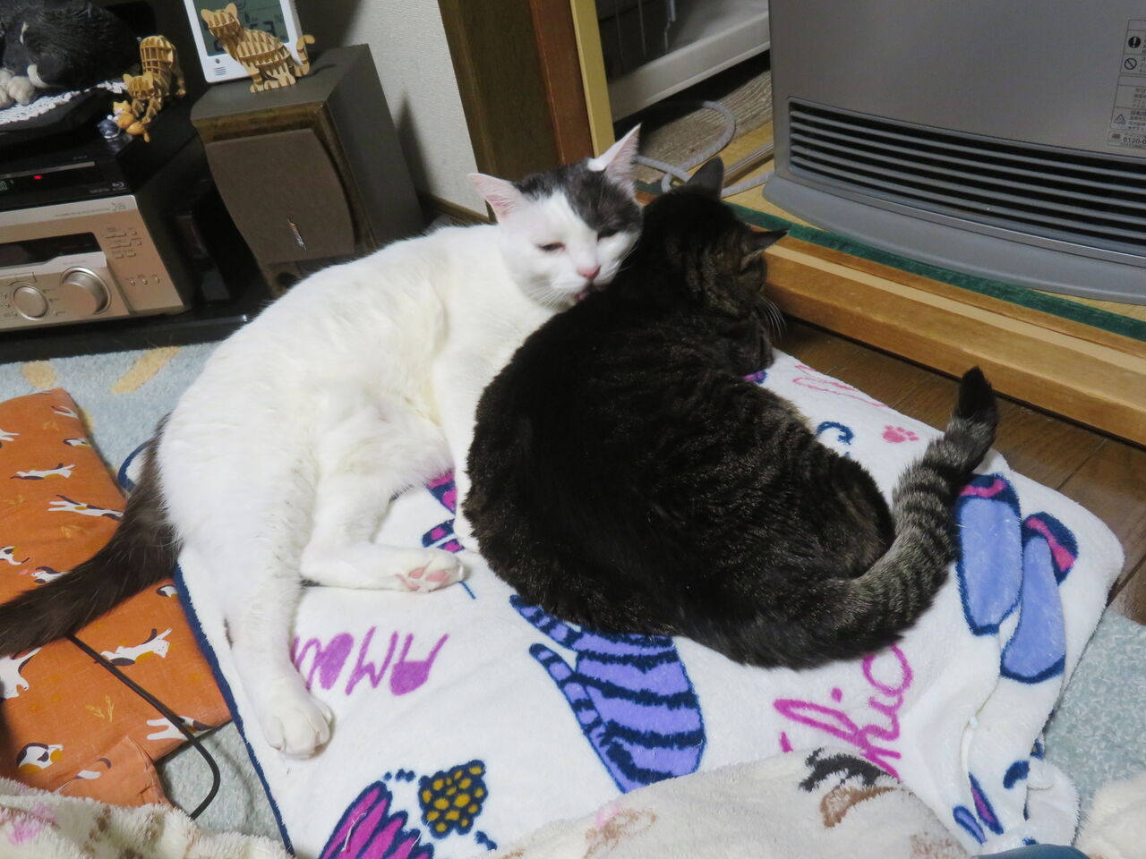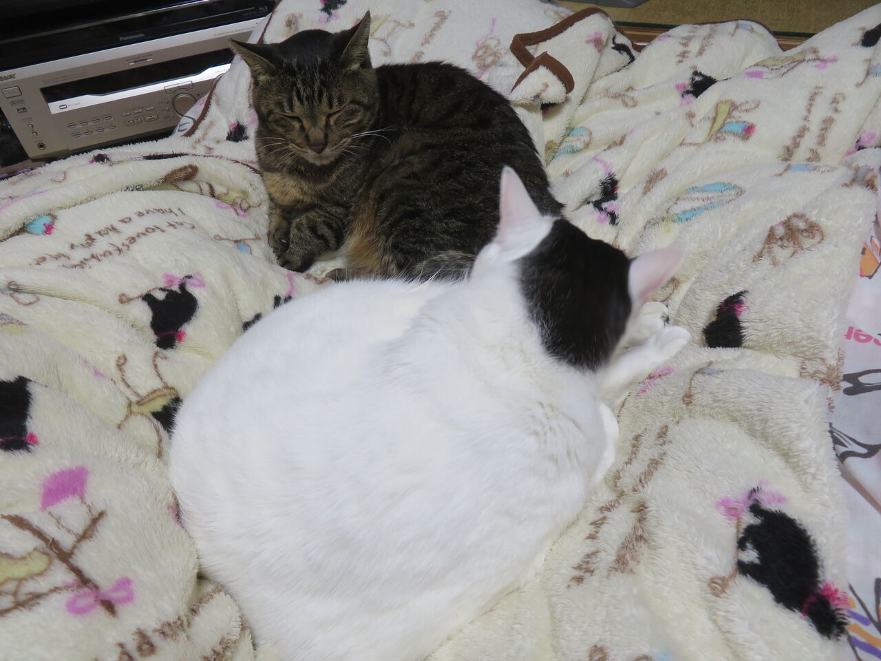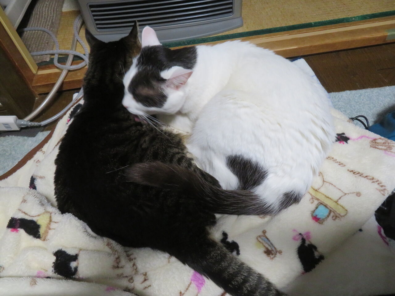 すんなりぴったんこ寝する時もあり、この時の様にプチバトルをしてからぴったんこ寝する時もありますが、基本ニャか良しさんです
