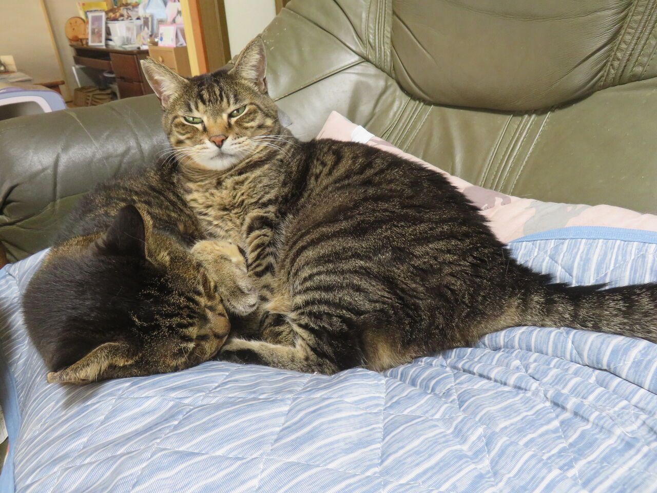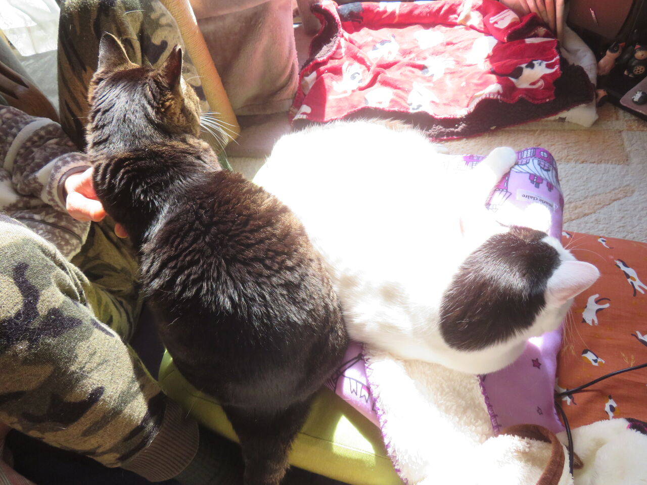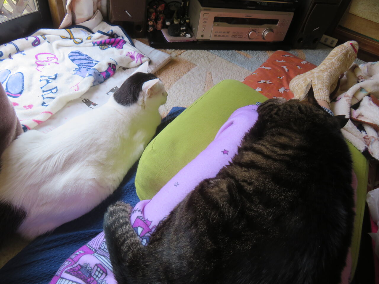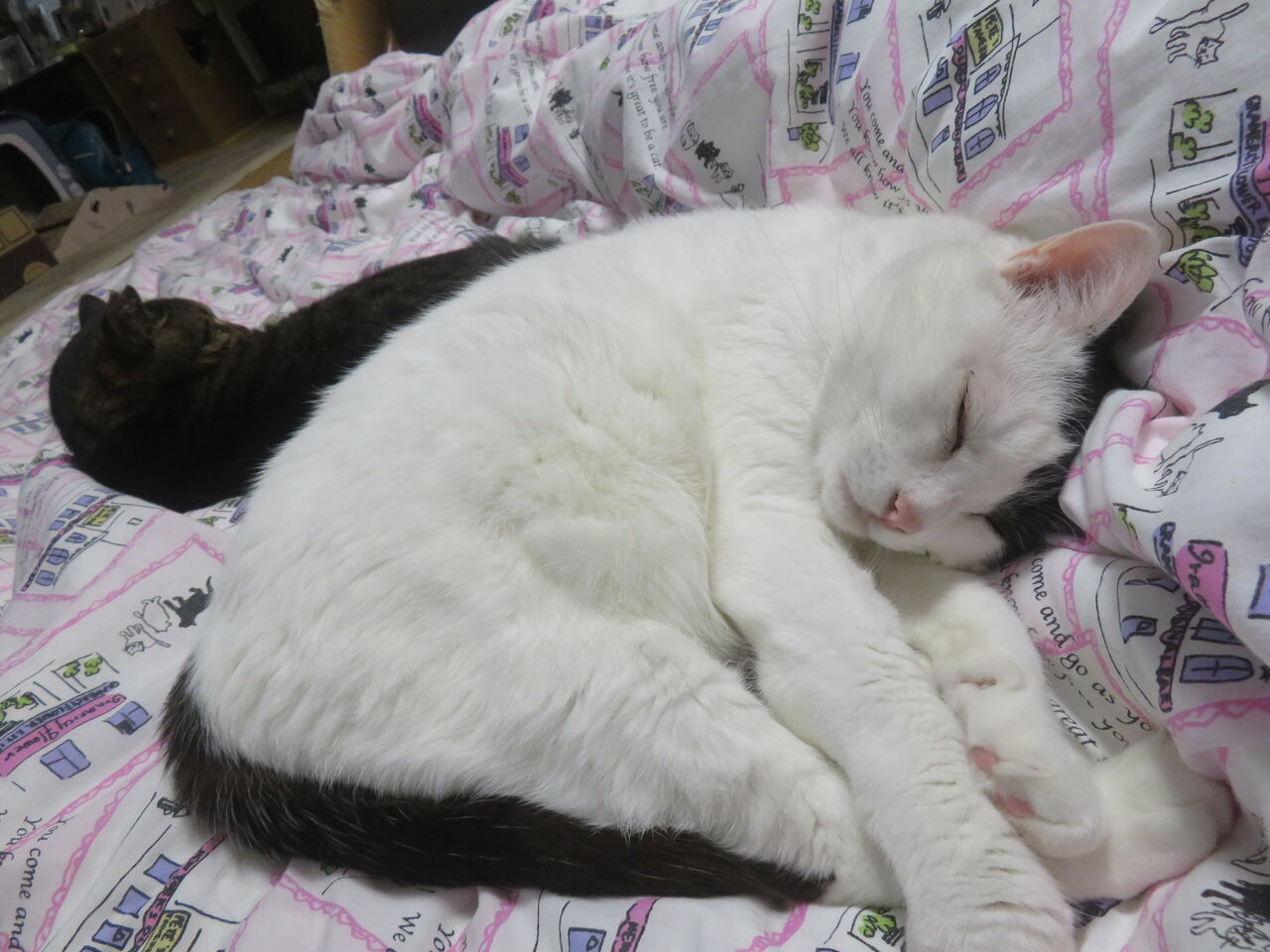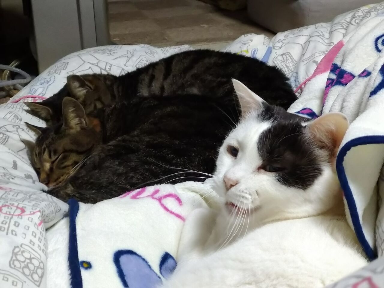 すんなりぴったんこ寝する時もあり、この時の様にプチバトルをしてからぴったんこ寝する時もありますが、基本ニャか良しさんです