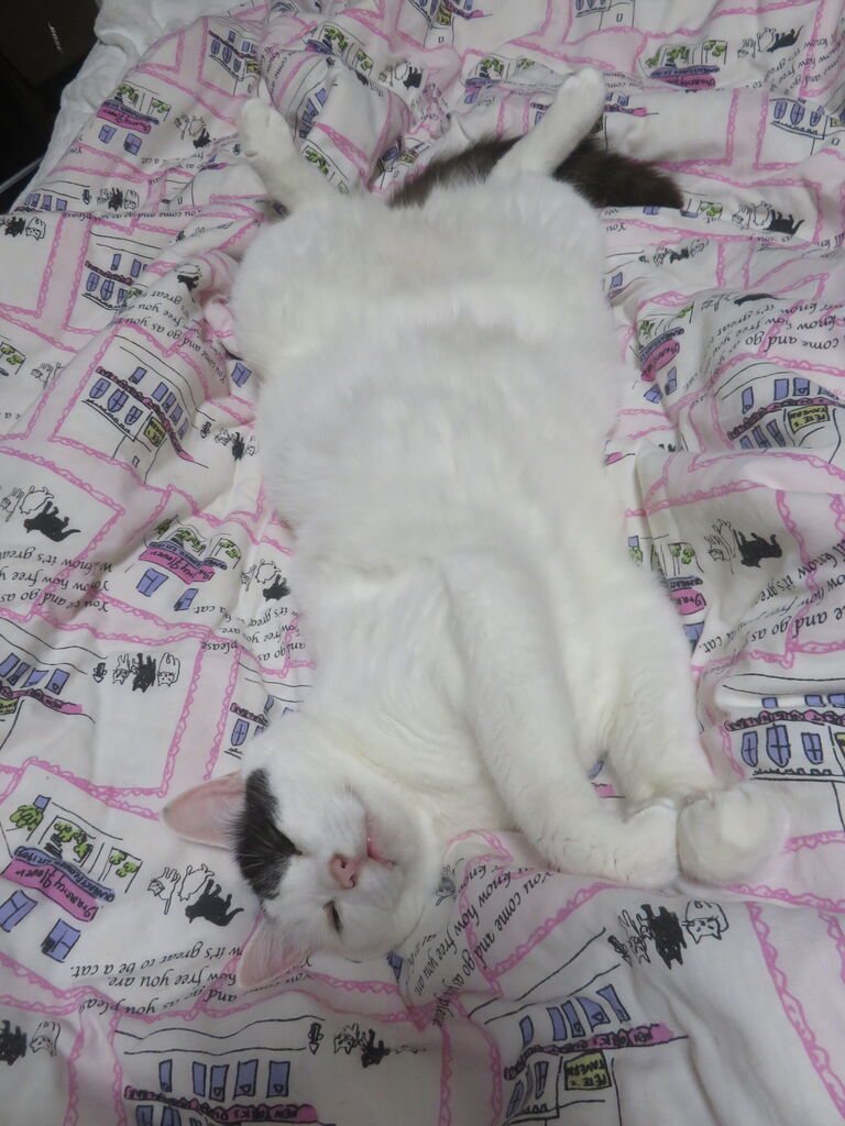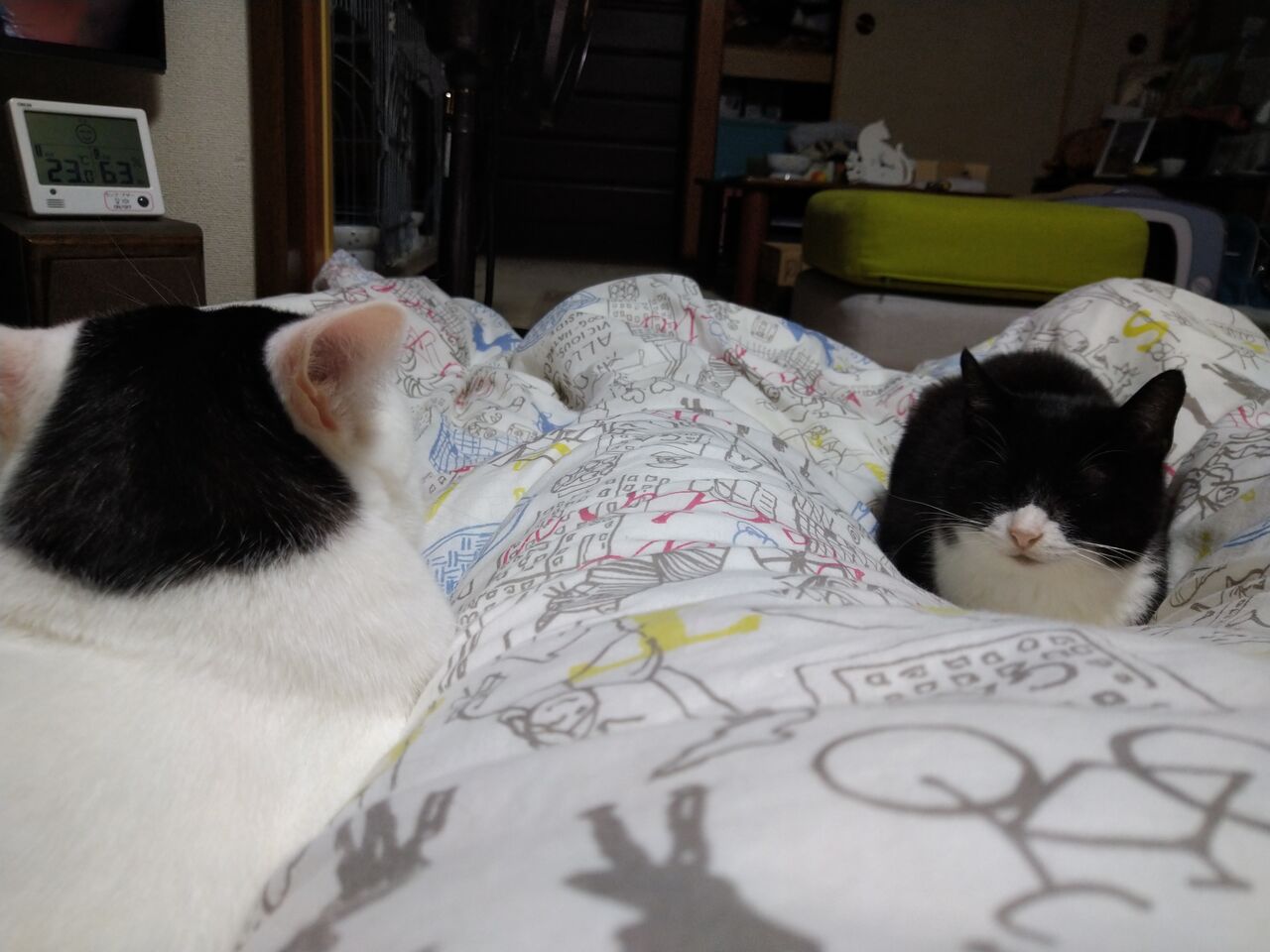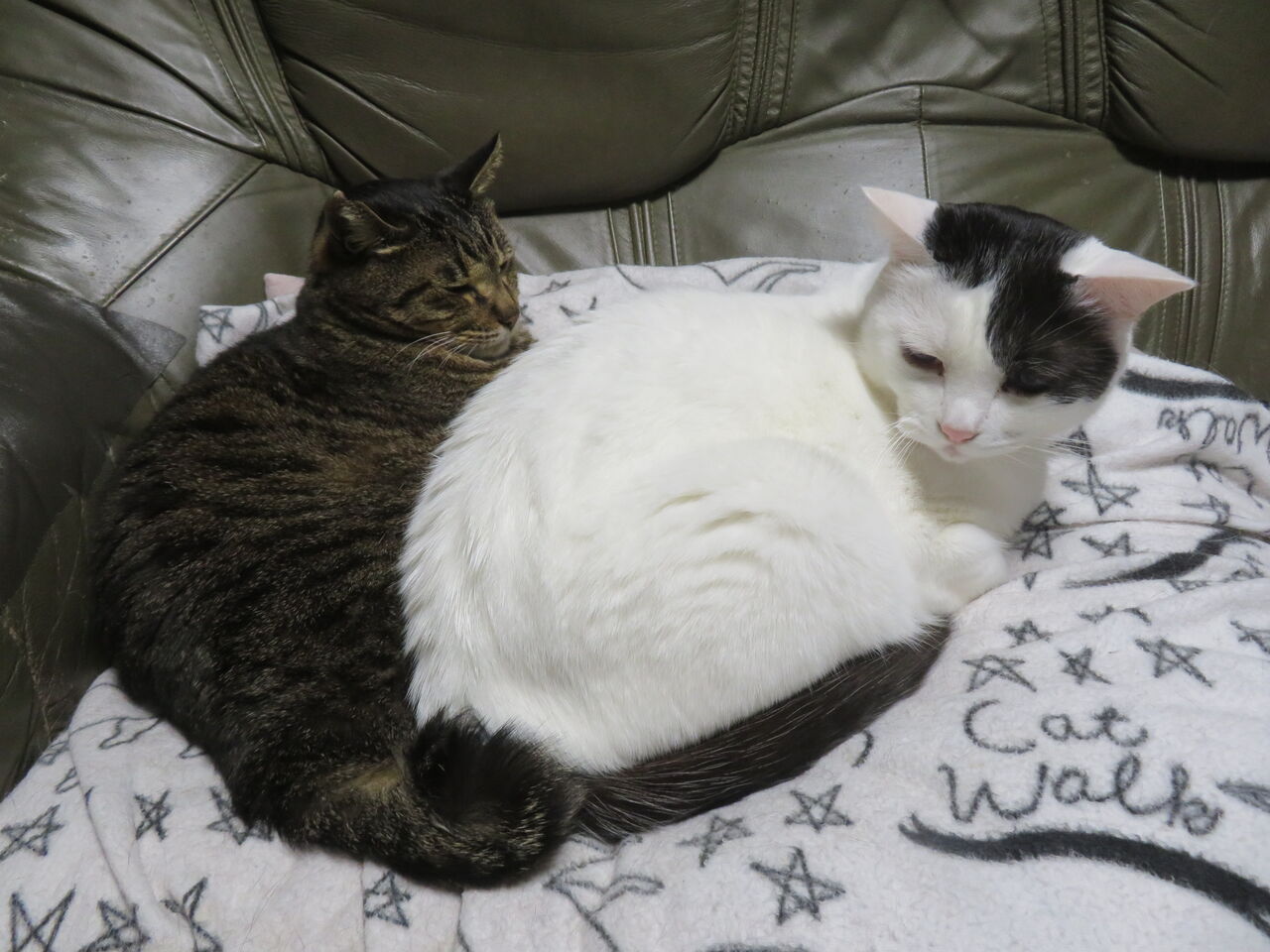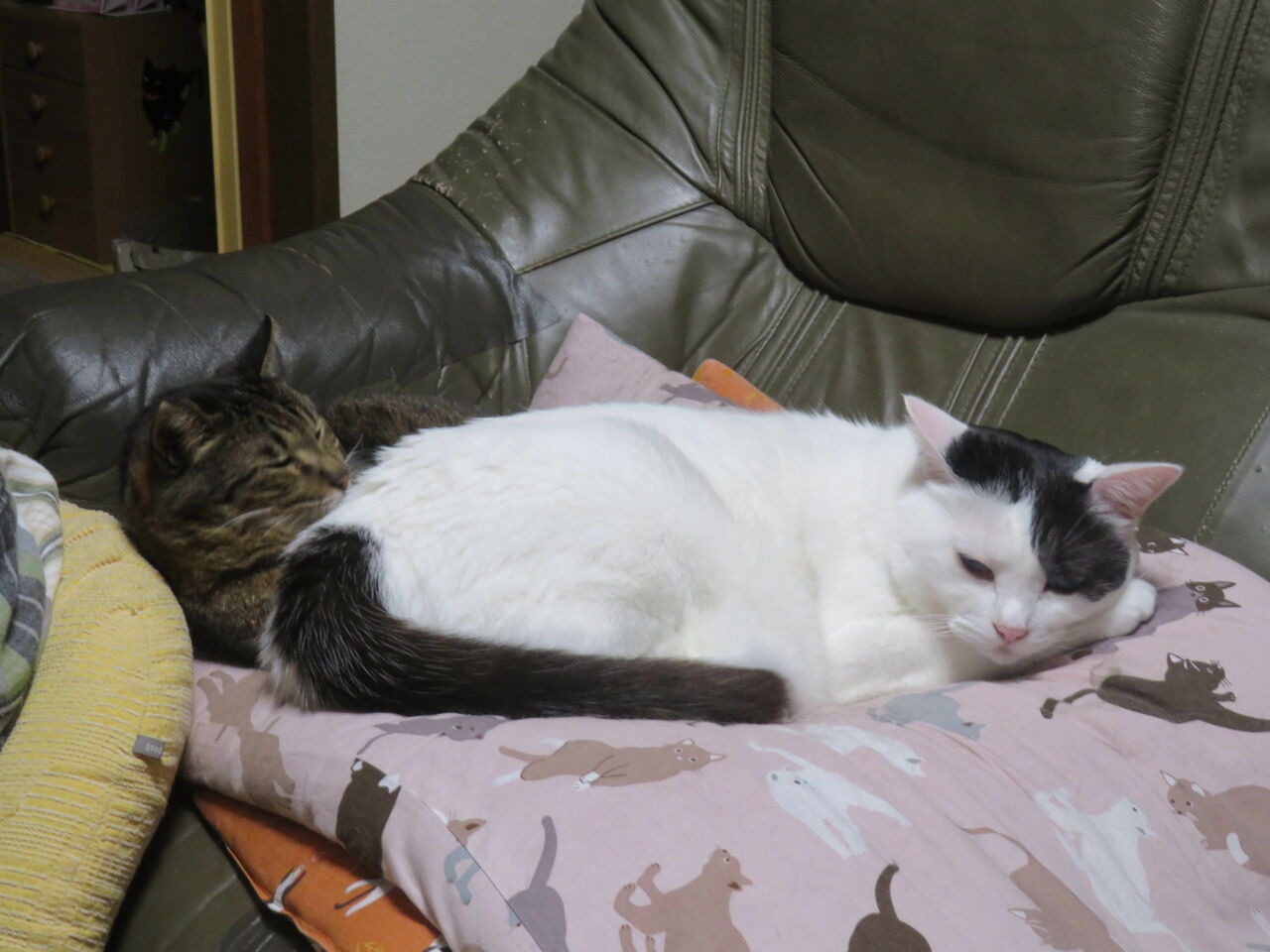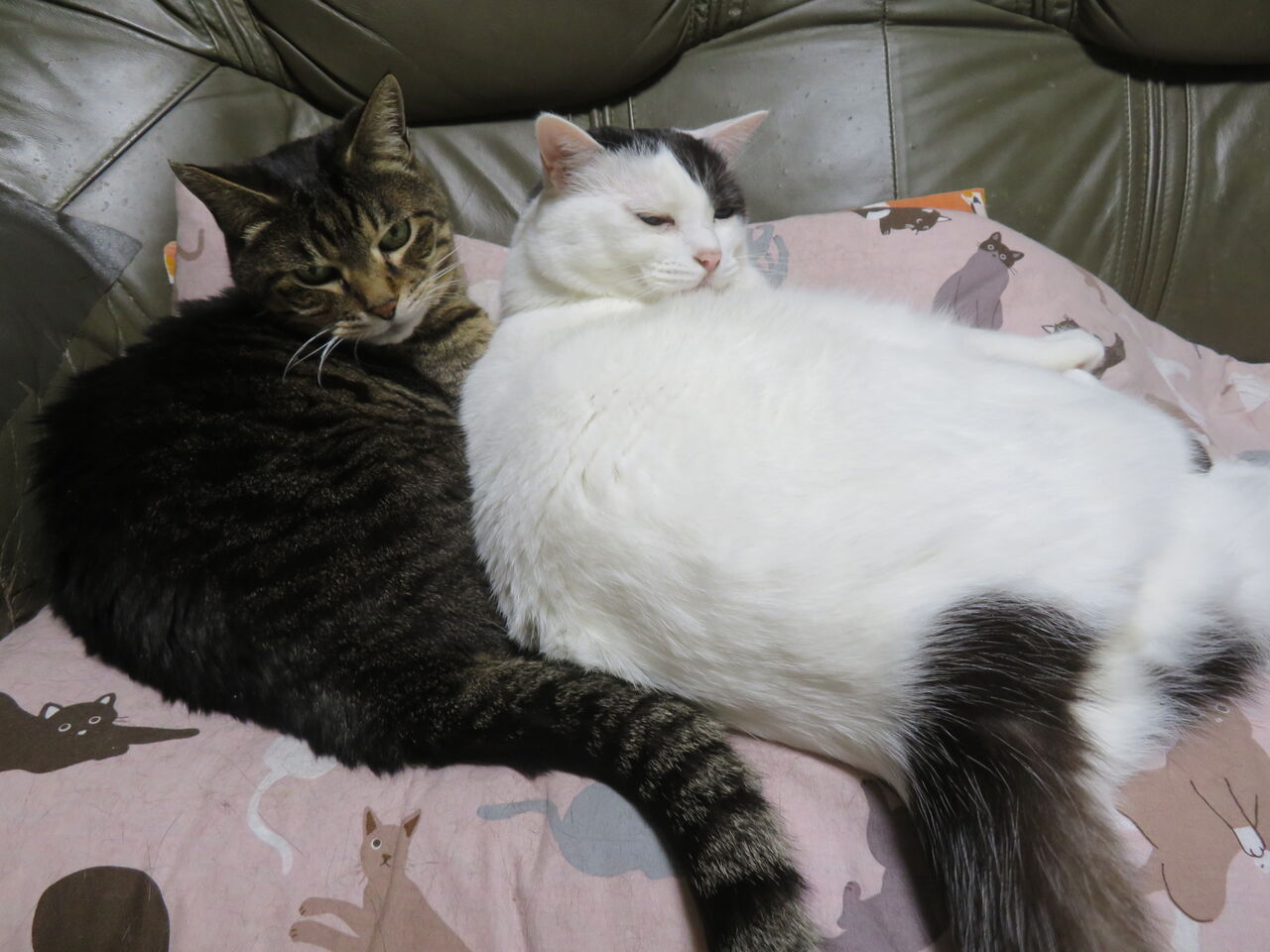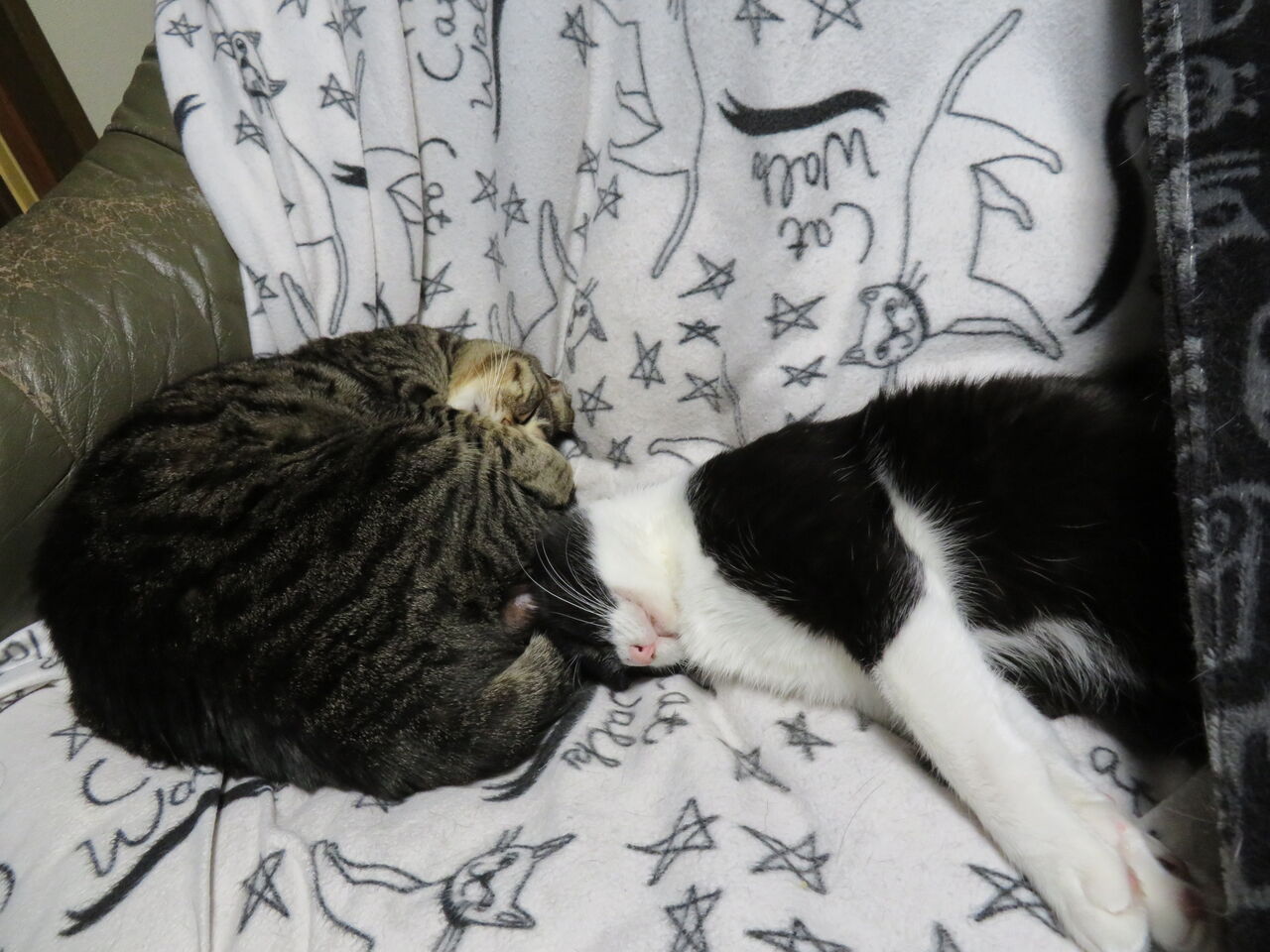 すんなりぴったんこ寝する時もあり、この時の様にプチバトルをしてからぴったんこ寝する時もありますが、基本ニャか良しさんです