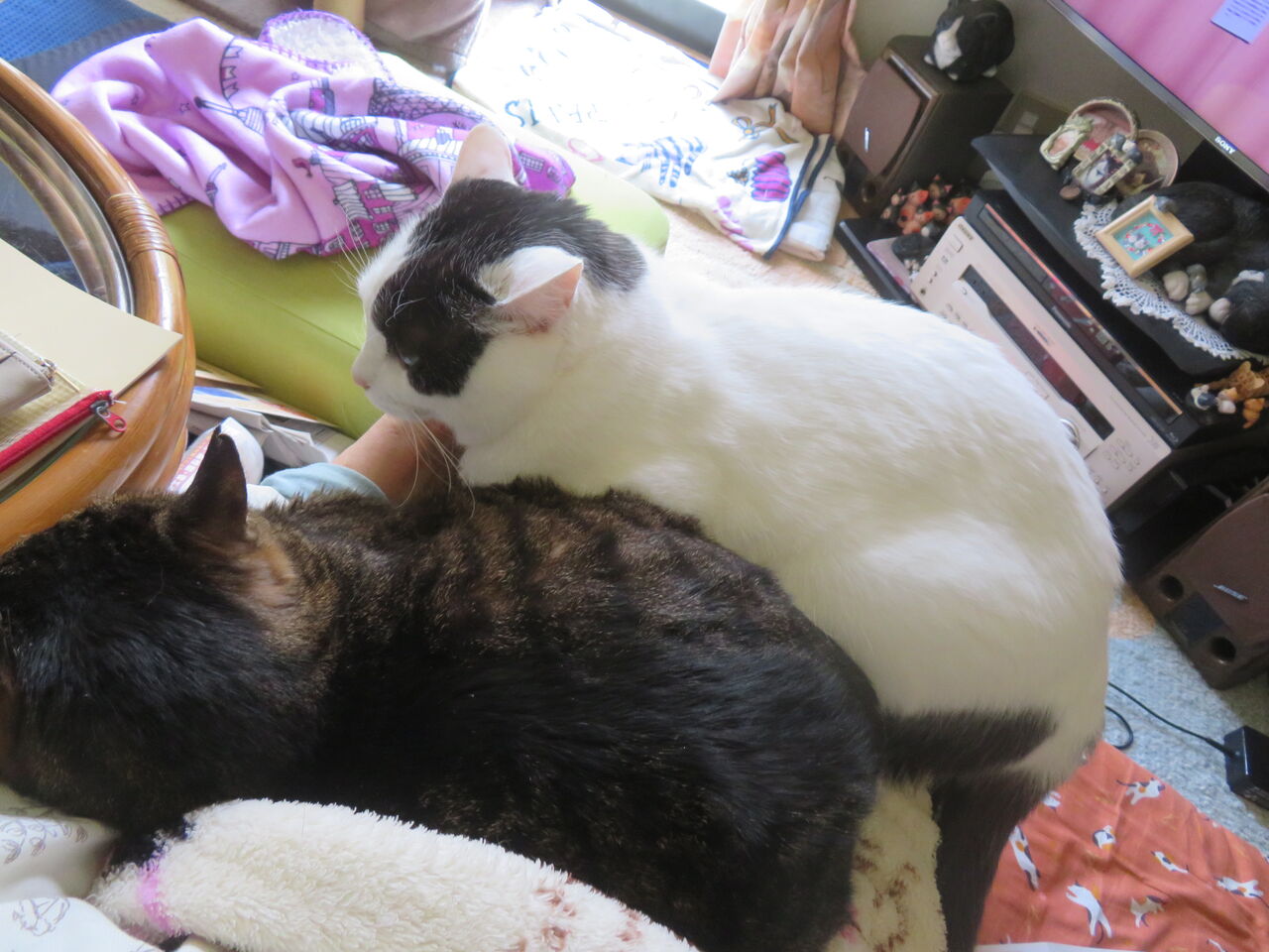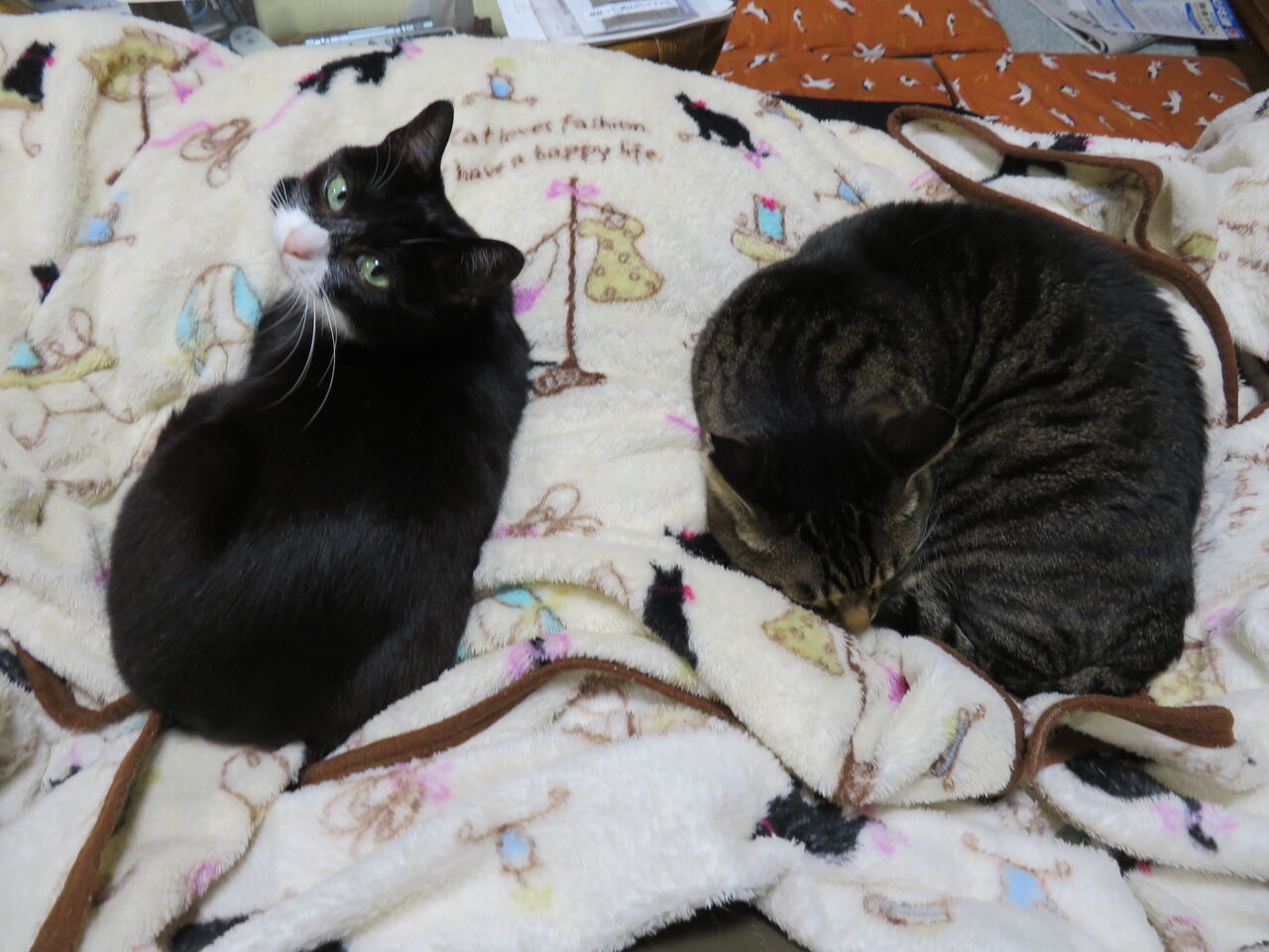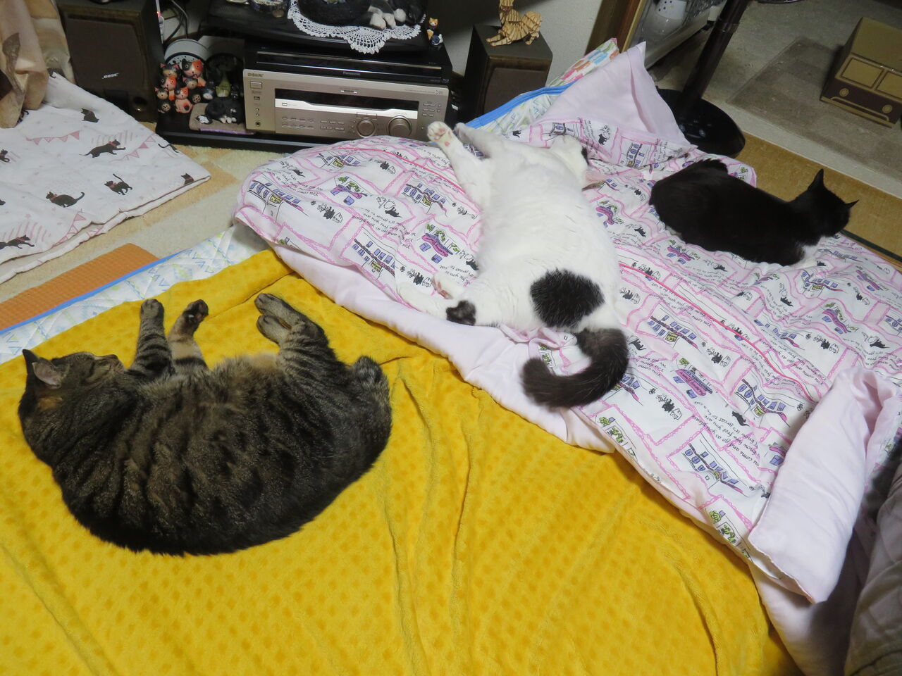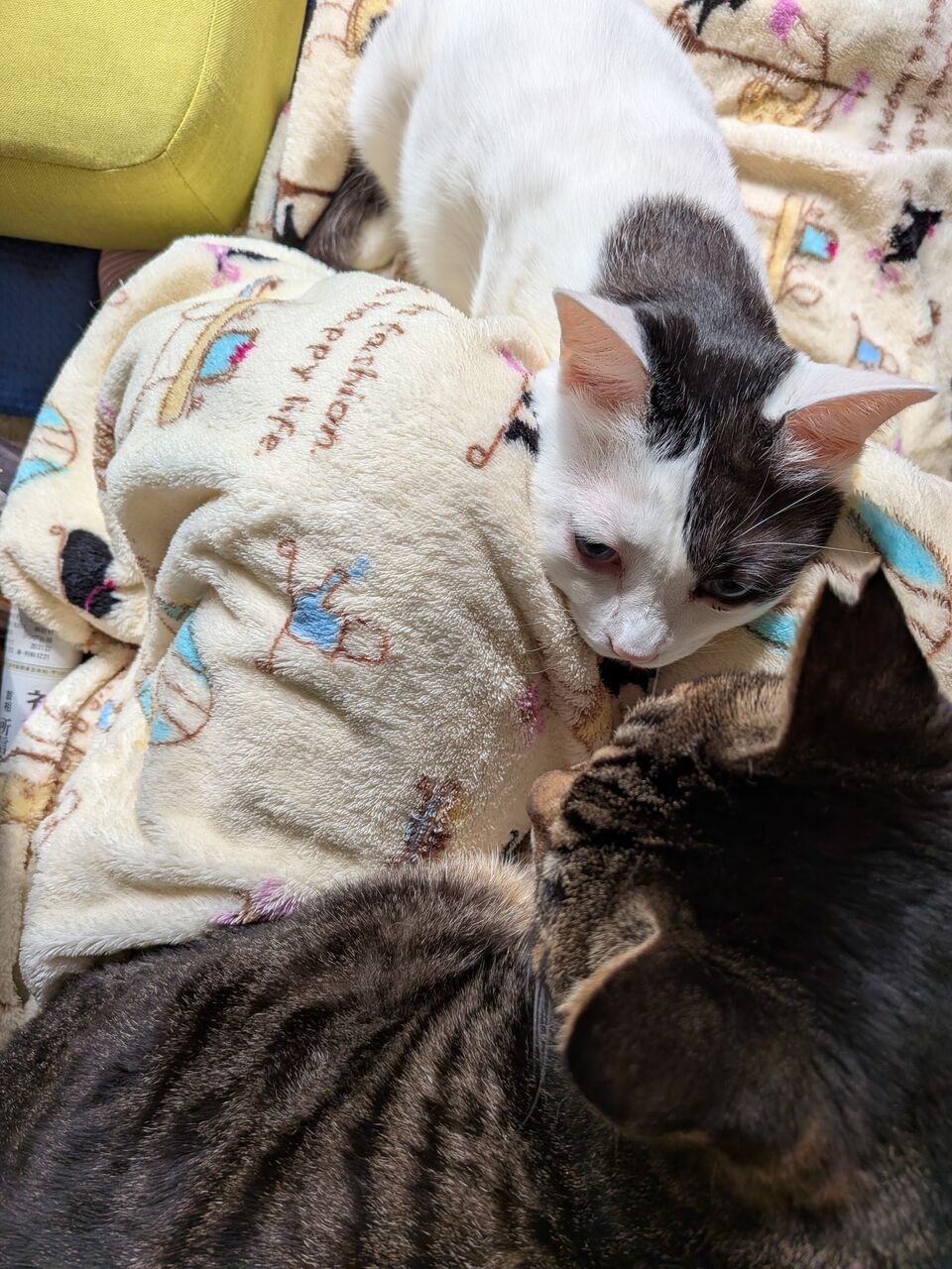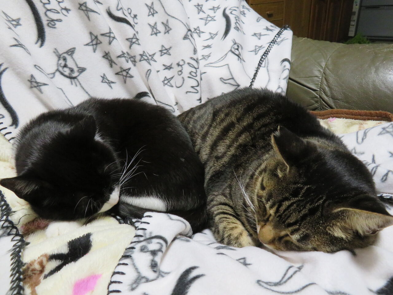 すんなりぴったんこ寝する時もあり、この時の様にプチバトルをしてからぴったんこ寝する時もありますが、基本ニャか良しさんです