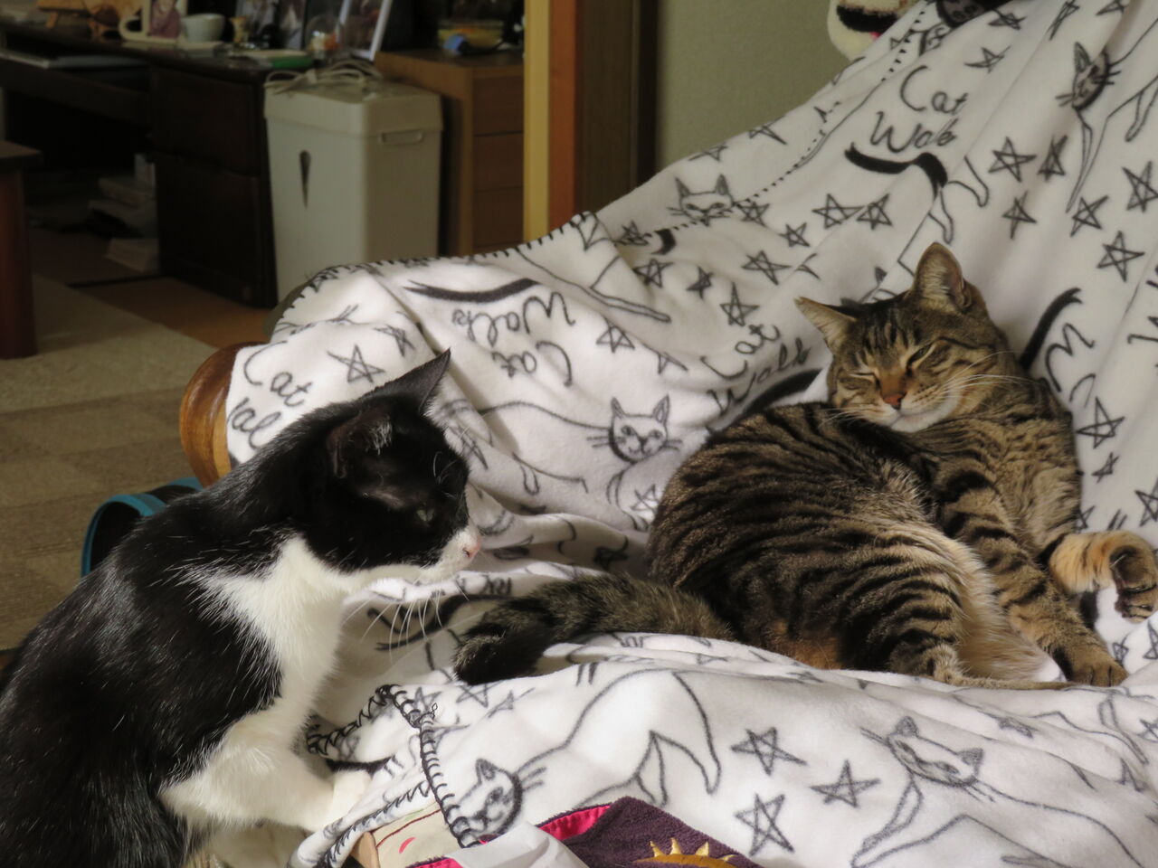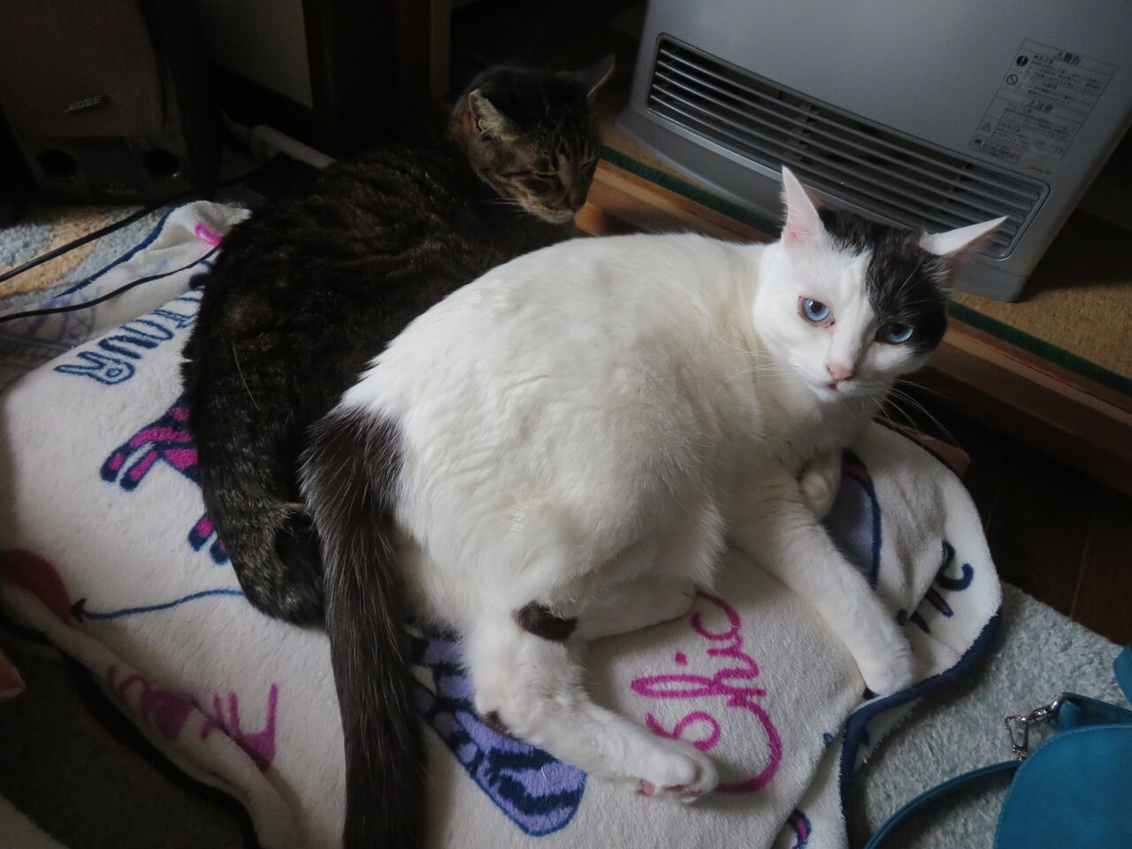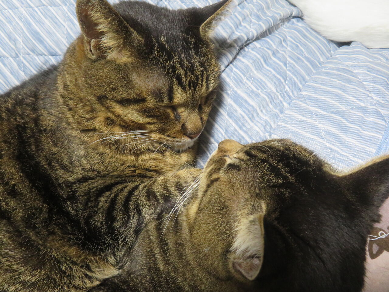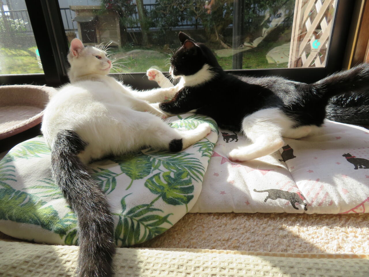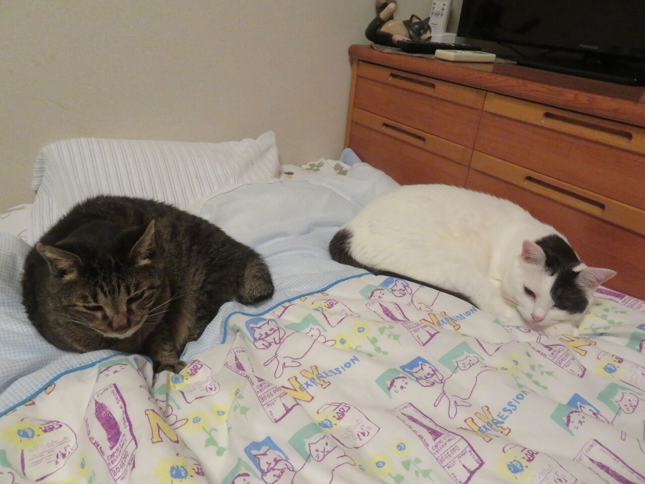 すんなりぴったんこ寝する時もあり、この時の様にプチバトルをしてからぴったんこ寝する時もありますが、基本ニャか良しさんです