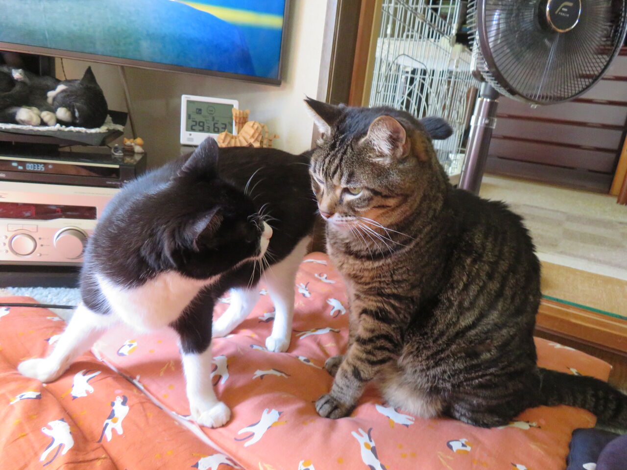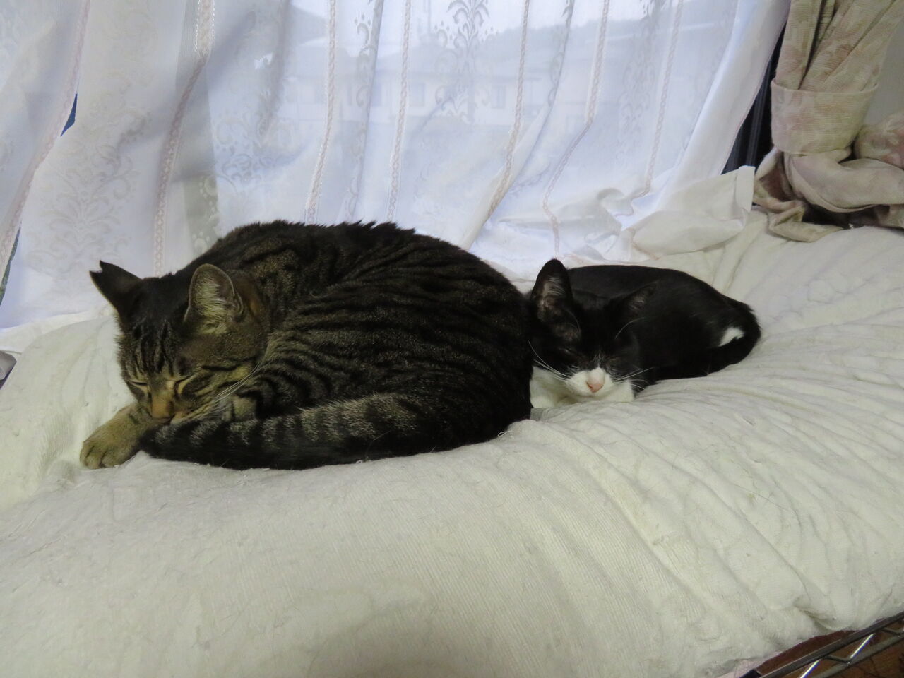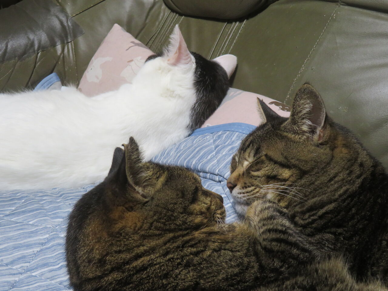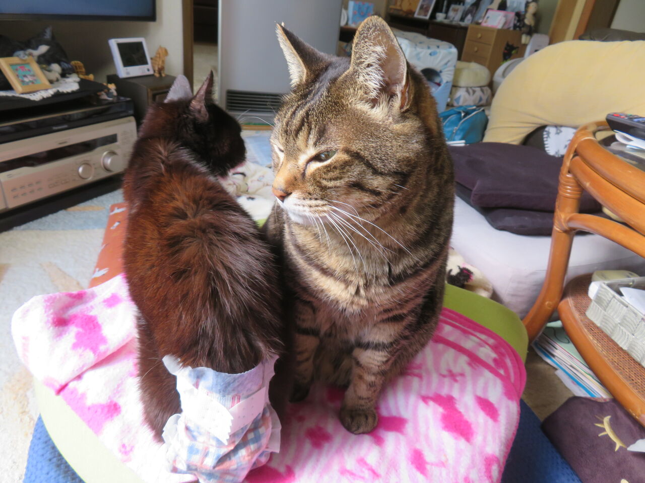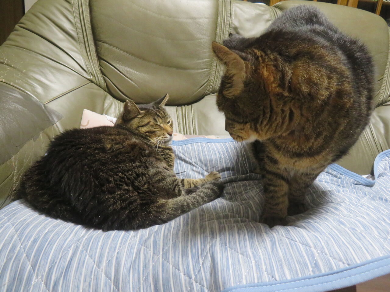 すんなりぴったんこ寝する時もあり、この時の様にプチバトルをしてからぴったんこ寝する時もありますが、基本ニャか良しさんです