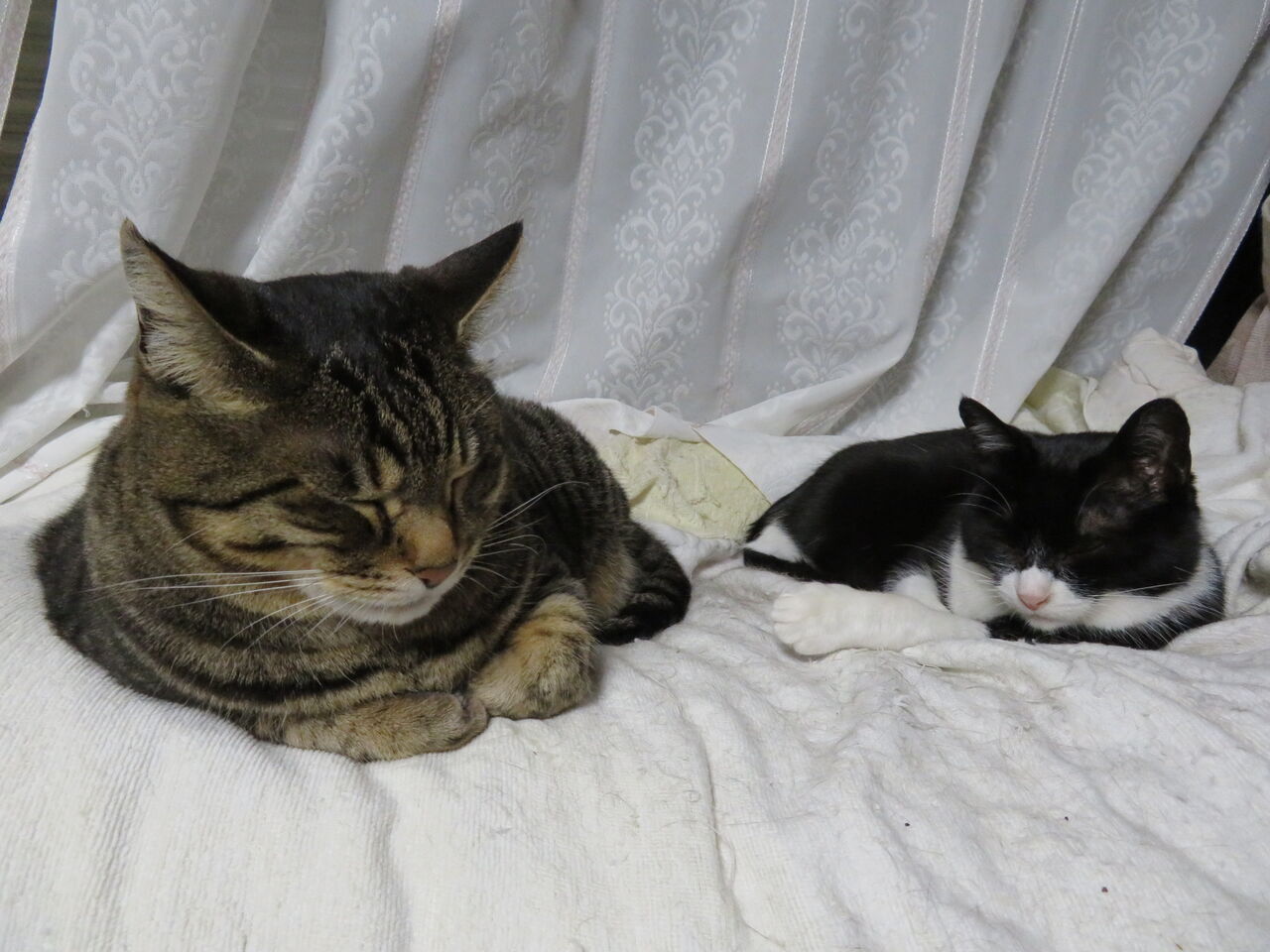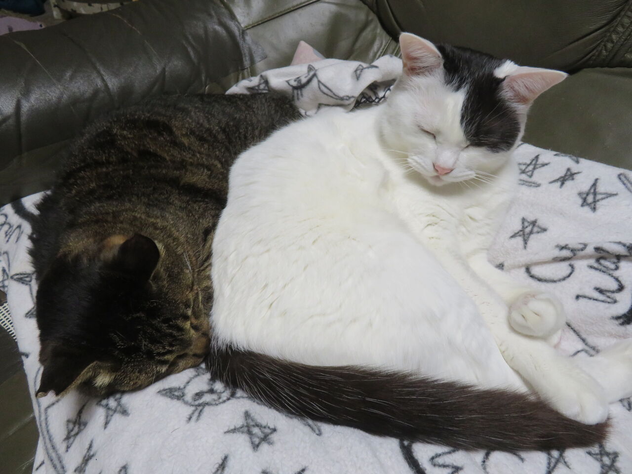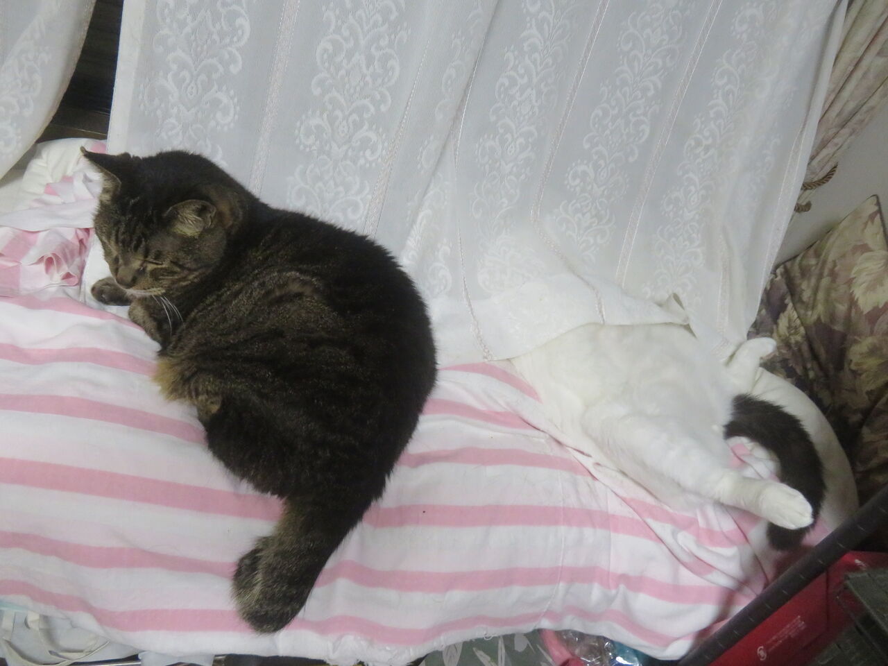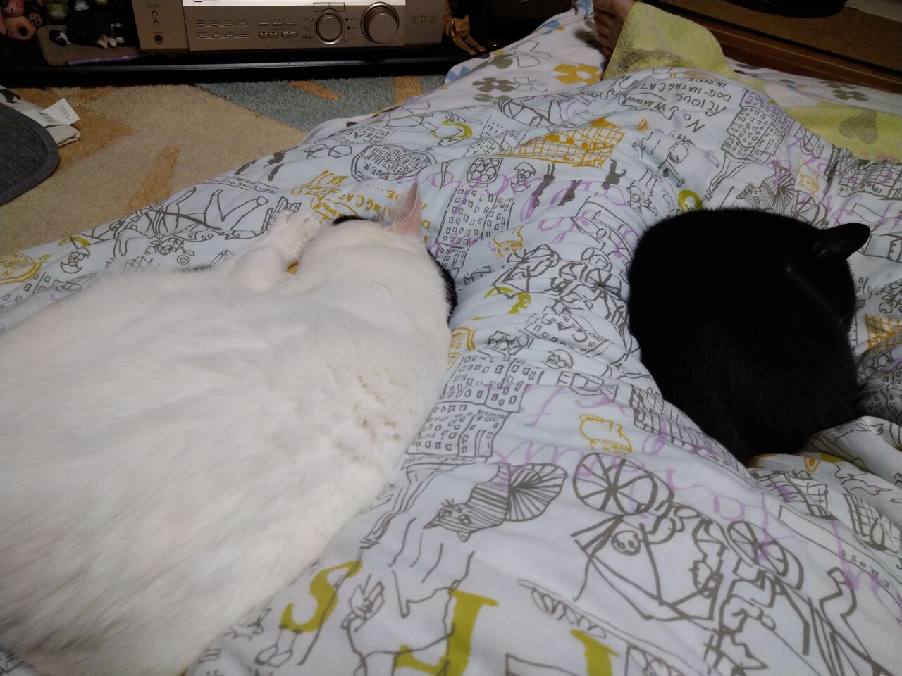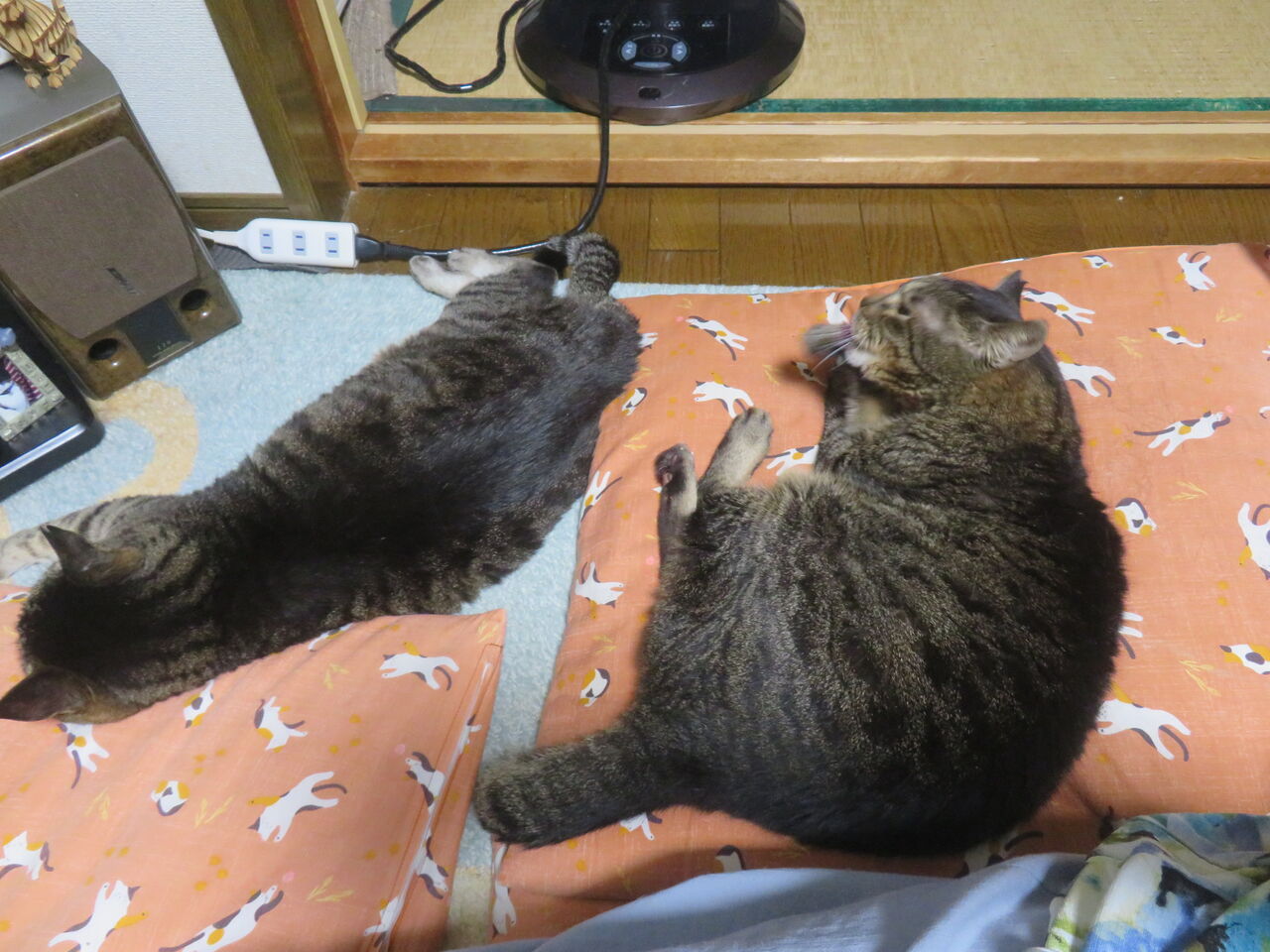 すんなりぴったんこ寝する時もあり、この時の様にプチバトルをしてからぴったんこ寝する時もありますが、基本ニャか良しさんです