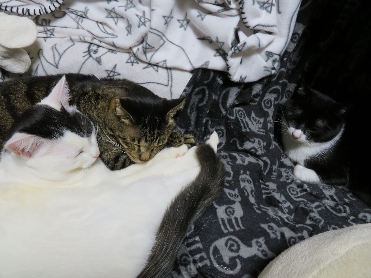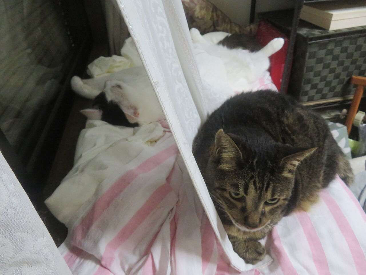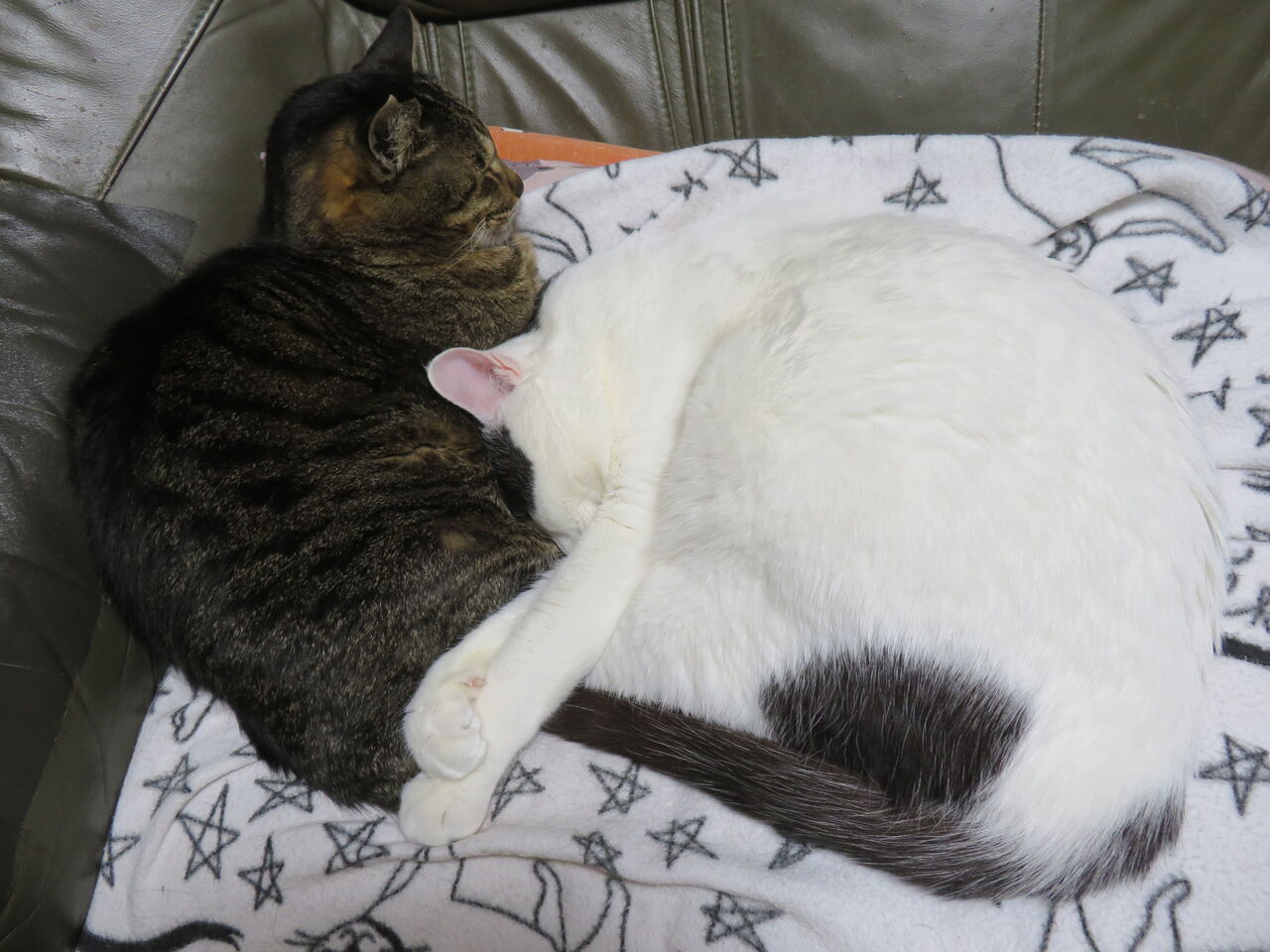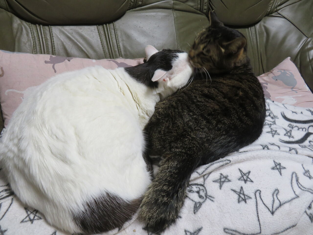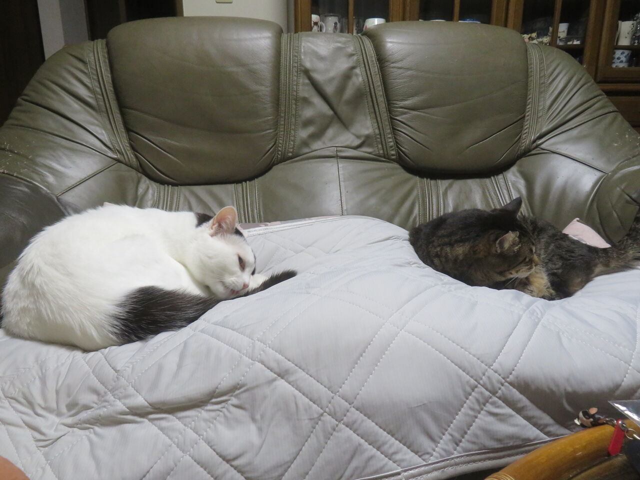 すんなりぴったんこ寝する時もあり、この時の様にプチバトルをしてからぴったんこ寝する時もありますが、基本ニャか良しさんです